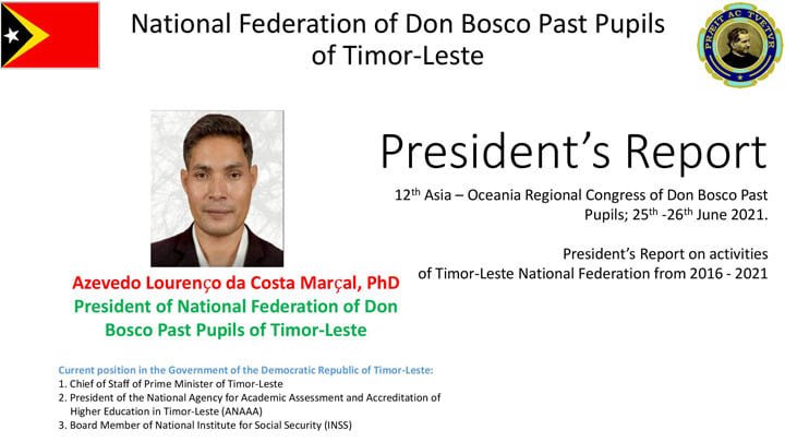 Đông Timor 05/07/2021. Đại hội CHVDB miền Á châu – Châu Đại Dương lần thứ 12 đã diễn ra online trong 2 ngày khá tốt đẹp. Đại hội đã để lại những dấu ấn khởi sắc mang tính đoàn sủng nơi các anh em Cựu học viên Don Bosco. Riêng tại Đông Timor, ông chủ tịch Azevodo Marcal và ông phó chủ tịch đã đúc kết thành bản nghị quyết mang tính chiến lược với những tiêu chí rất rõ ràng để các anh em CHVDB cùng nhau thực hiện trong tương lai.
