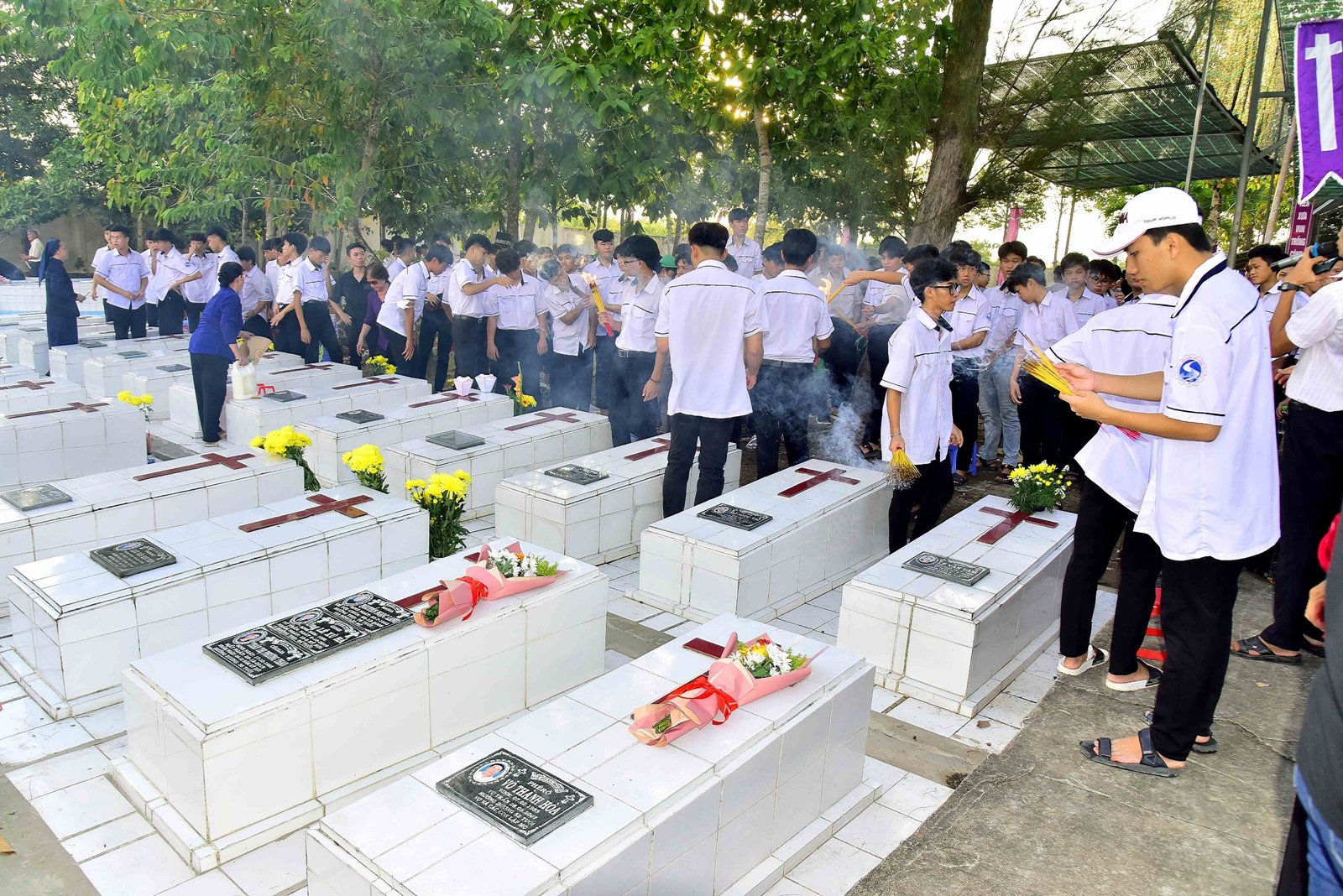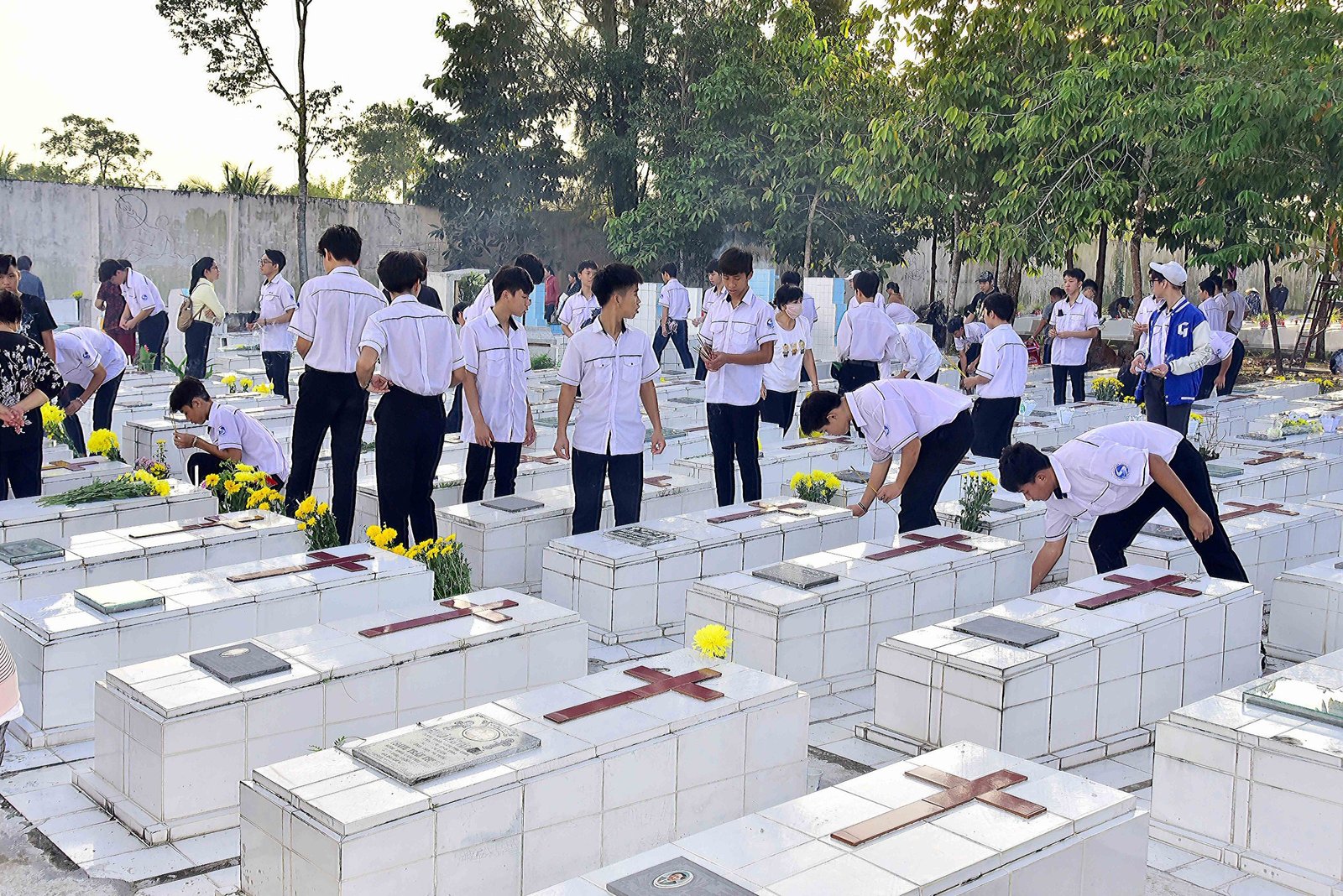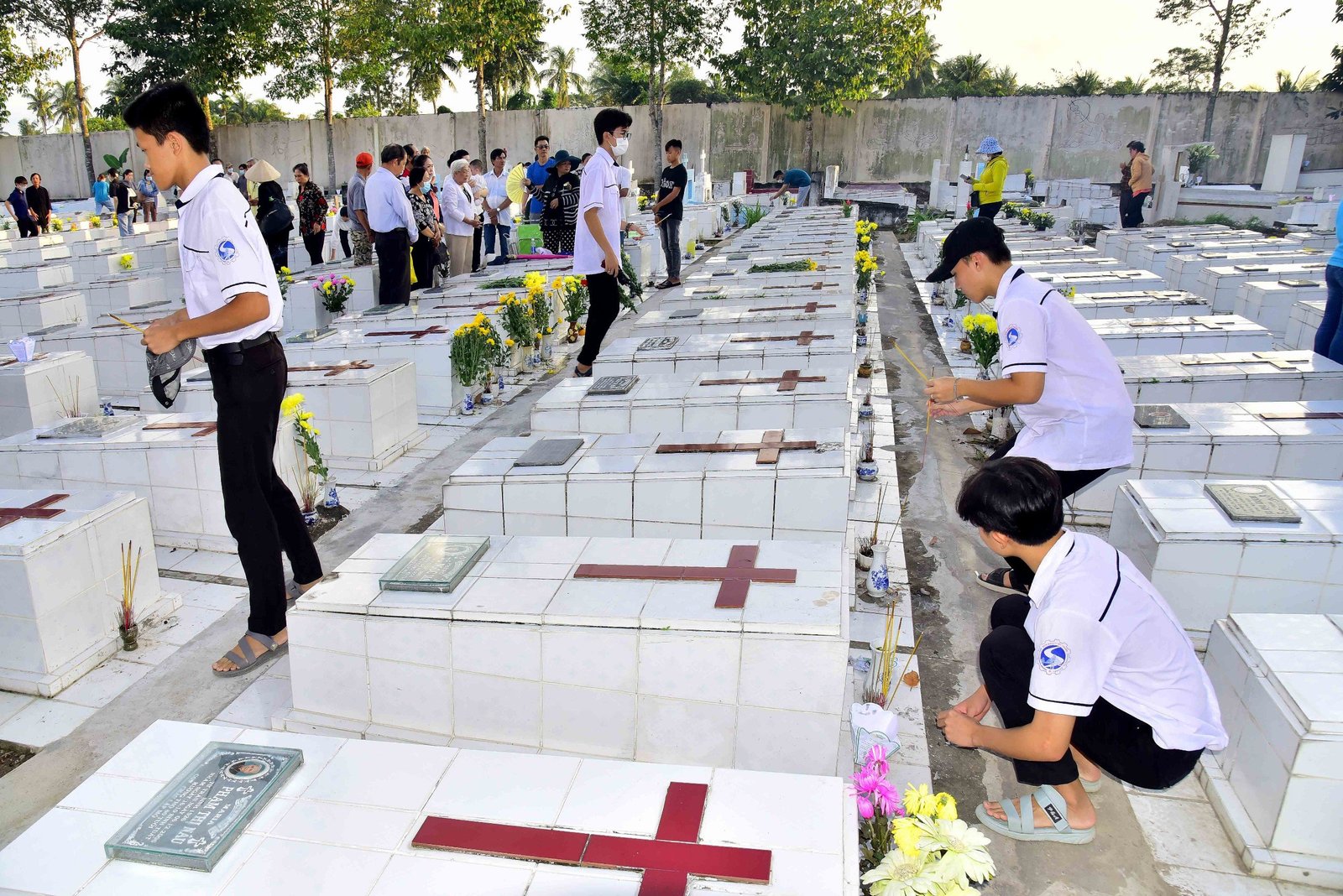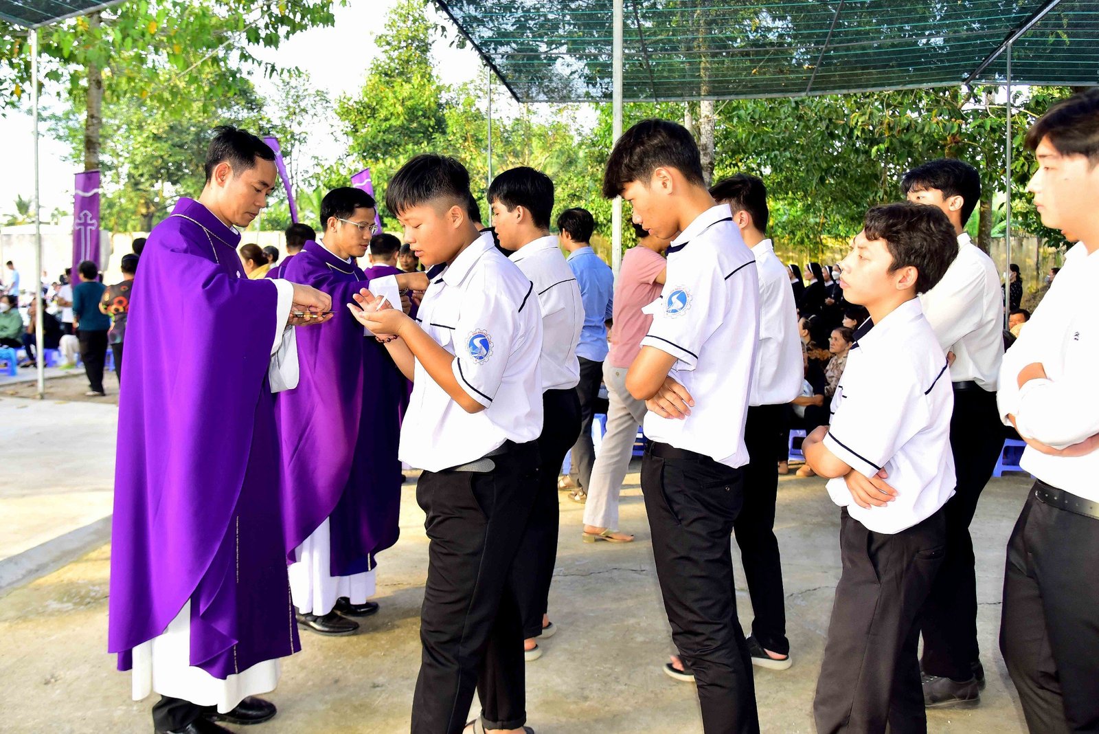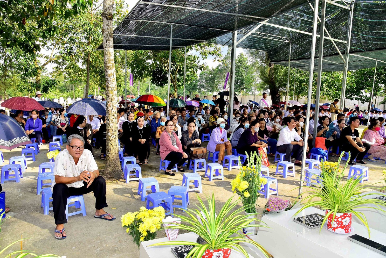 Mặc dù 16h00 Thánh lễ mới bắt đầu, nhưng ngay từ rất sớm, hơn 300 học sinh Trường TCKT Don Bosco Mỹ Thuận và bà con đã có mặt tại đất thánh, ngoài ra còn rất nhiều người là con cháu xa xứ lâu ngày mới trở về quê hương để thăm viếng ông bà đang yên nghỉ nơi đây.