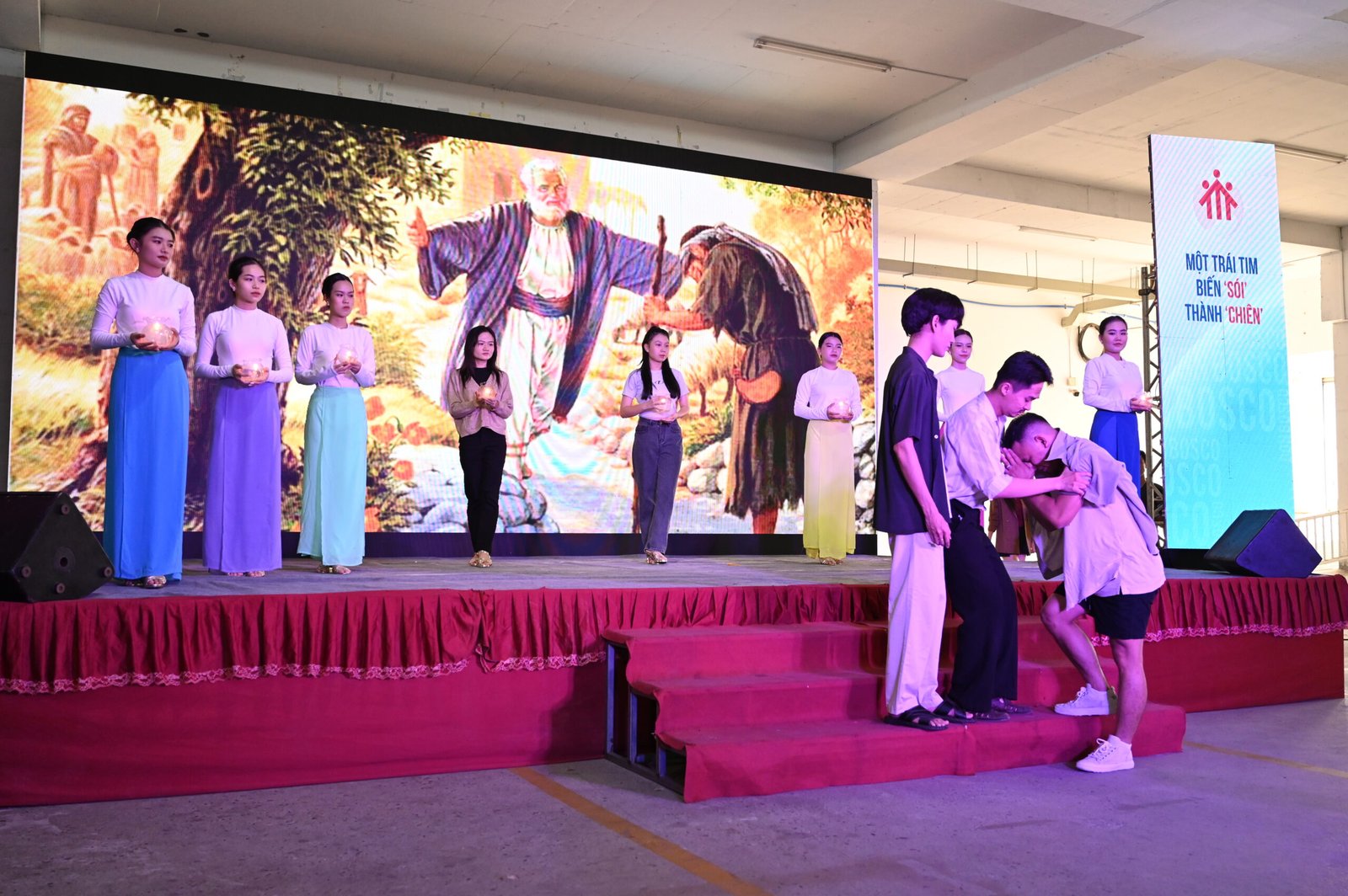 Tham gia buổi biểu diễn tĩnh nguyện, có các nhóm múa giới trẻ đến tứ các giáo xứ Don Bosco, các bạn sinh viên Don Bosco, nhóm Tu Sinh, các nhóm trẻ Don Bosco và các anh chị em Ca sỹ công giáo. Ý tưởng của buổi diễn nguyện được cha Giuse Nguyễn Xuân Quang, Sdb chia sẻ trước khi bắt đầu buổi biểu diễn. Các tiết mục được lần lượt biểu diễn với những phần minh họa của các bạn trẻ. Cuối chương trình, Cha Giám tỉnh Barnaba đã có đôi lời huấn từ tối trước khi mọi người ra về.