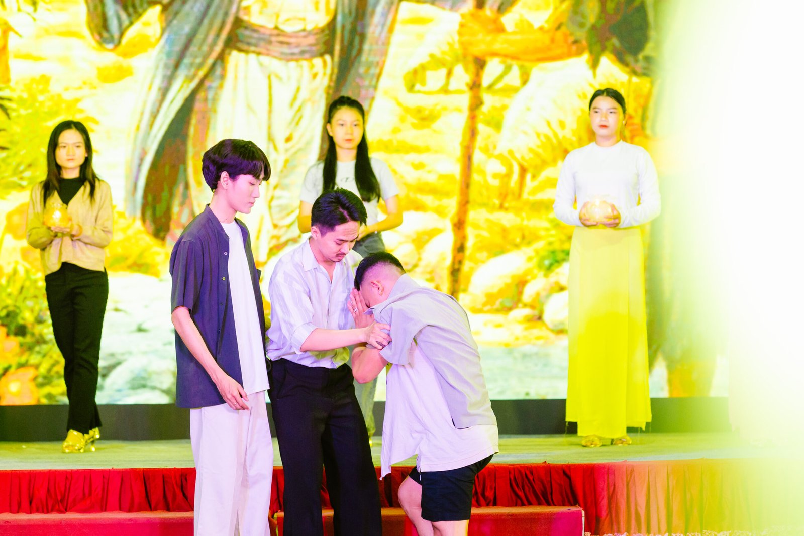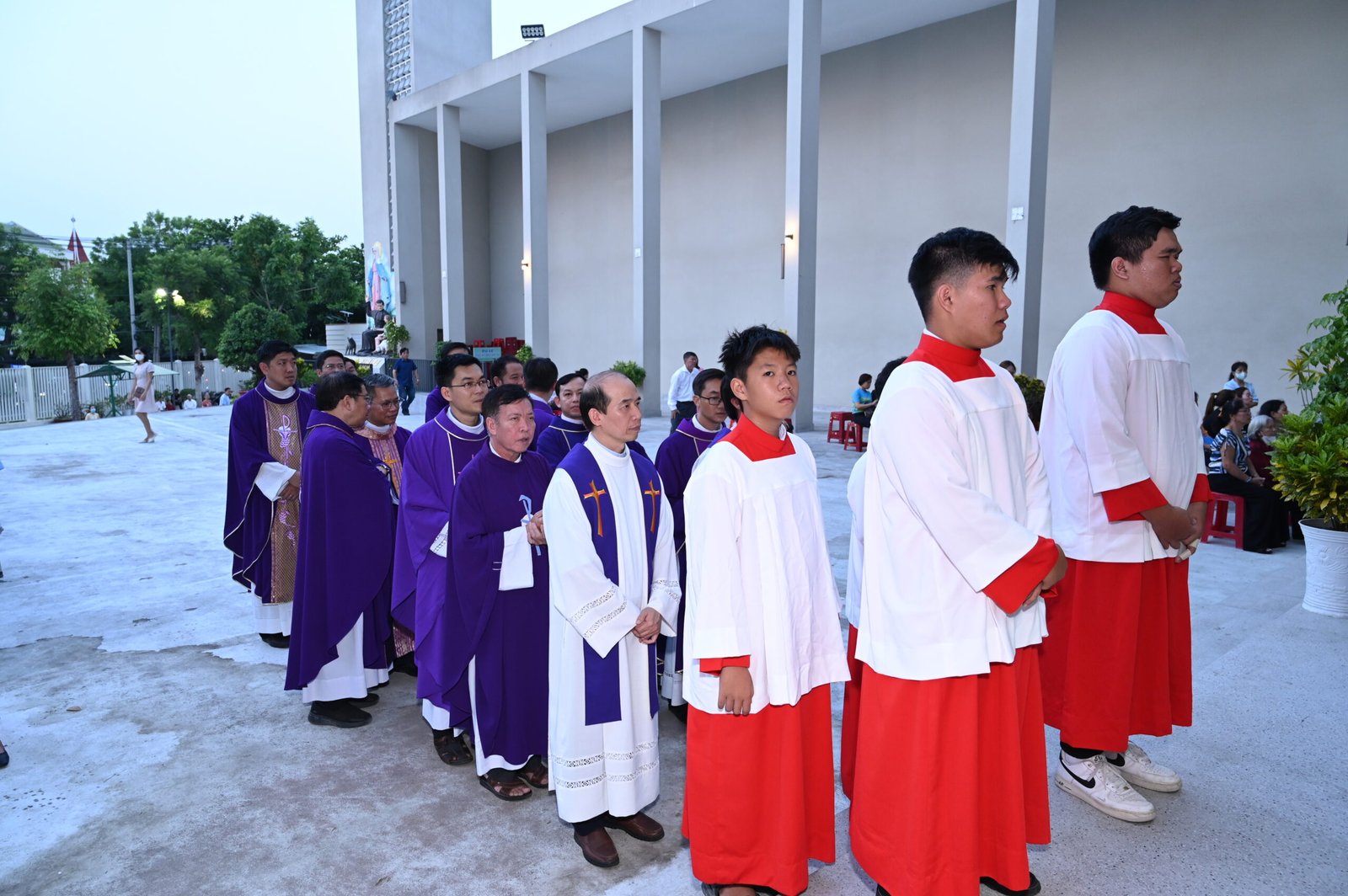 Sau thánh lễ, các bạn có chút thời gian nghỉ ngơi và dùng bữa tối. Trong thời gian ngắn ngủi này, các bạn được giao lưu với các ca sỹ công giáo khách mời, được chơi đố vui về kính thánh, về hoa thiêng 2024. Đúng 20g00 chương trình diễn nguyện được bắt đầu.