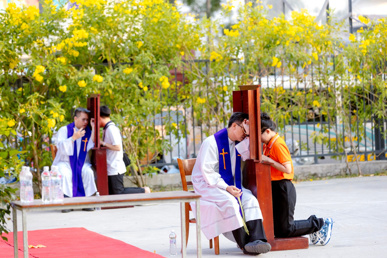 Sau phần chia sẻ, các bạn có những giây phút hồi tâm để chuẩn bị nhận lãnh bí tích hòa giải. Sau khi hồi tâm, các bạn được hướng dẫn đến các tòa giải tội để lãnh nhận Bí tích Giao Hòa. Tiếp sau đó là thánh lễ diễn ra vào lúc 18g15.
