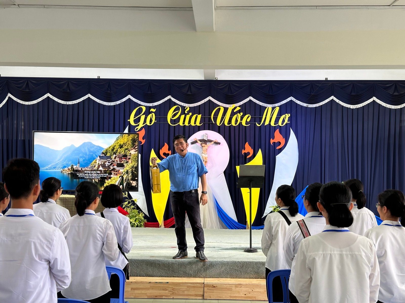 Nội dung buổi giao lưu xoay quanh chủ đề “Gõ cửa ước mơ”. Với nội dung này, các tập sinh tiếp tục viết tiếp những ước mơ cùng Đức Ki-tô trong niềm vui dâng hiến Salêdiêng: “Một giấc mơ biến đổi sói thành chiên.” Qua bài chia sẻ ngắn của cha Giuse Vũ Trọng Tài, các tập sinh được mời gọi trở nên đồng hình đồng dạng với Chúa Giê-su qua việc loại bỏ những con rắn độc đang âm thầm tấn công cuộc đời người tu sĩ; đồng thời, tránh thói tầm thường hóa đời sống thiêng liêng.