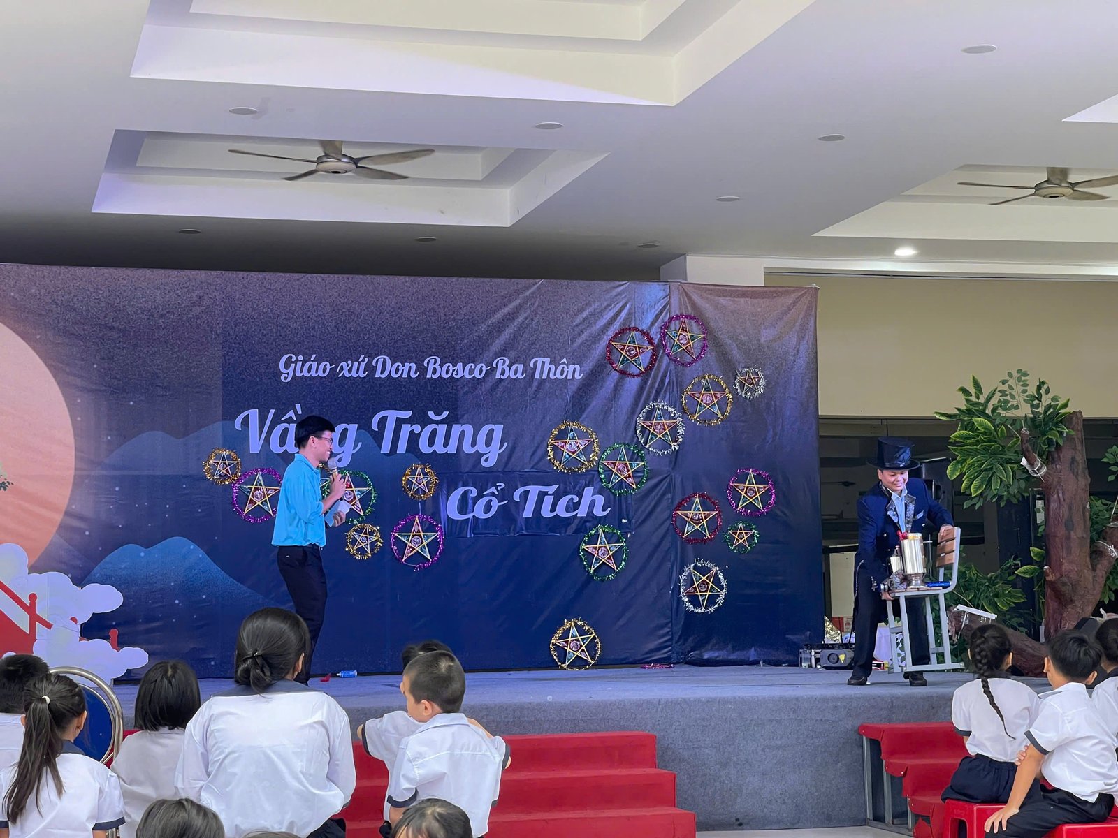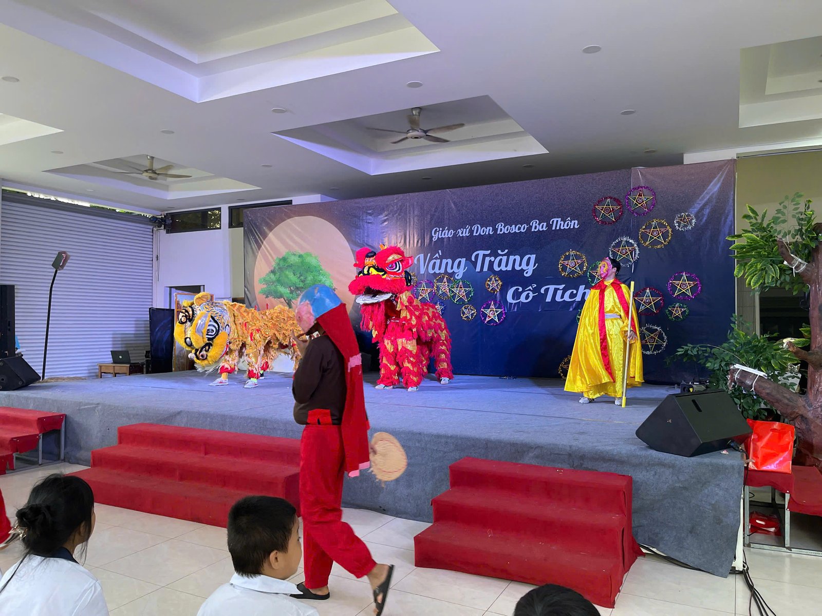 Sau lời chúc mừng ngày Tết Trung Thu của Cha Giám đốc, các thầy Tập sinh đã làm cho bầu không khí thêm sôi động với tiết mục biểu diễn lân. Liền sau đó là tiết mục hát và múa của các em học sinh lớp 4 và lớp 5 đang theo học tại nơi đây. Cuối cùng, niềm vui được nhân đôi khi xuất hiện một ảo thuật gia (Thầy Tâm thuộc dòng Anh em Bác ái). Qua các màn ảo thuật, nhà ảo thuật này đã khiến các em đi từ ngạc nhiên này đến ngạc nhiên khác.