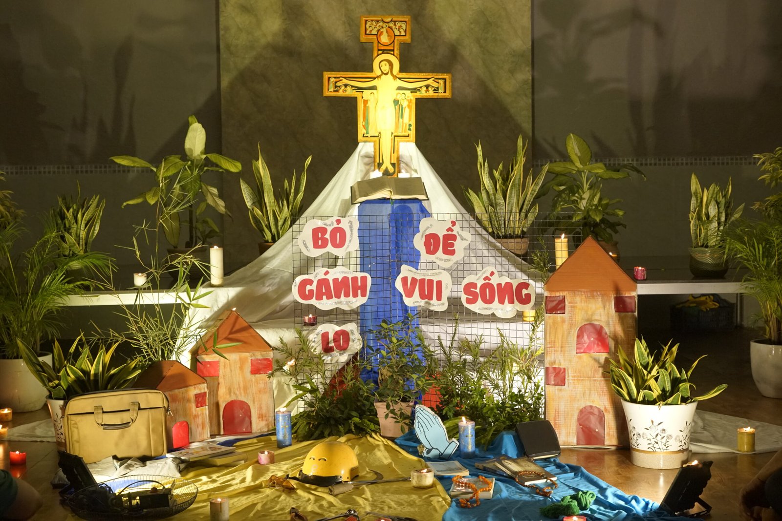 Cầu Bông – Vào tối ngày 16 tháng 01 năm 2025, lúc 19h00, Cộng thể Đaminh Saviô Cầu Bông đã tổ chức buổi cầu nguyện Taize cuối năm với chủ đề “Bỏ gánh lo mà vui sống” tại hội trường Giáo xứ Tân Thịnh. Buổi cầu nguyện thu hút sự tham gia của quý cha, quý thầy, anh em hai lớp Tiền Tập, Dự bị và các giáo dân trong Giáo xứ.