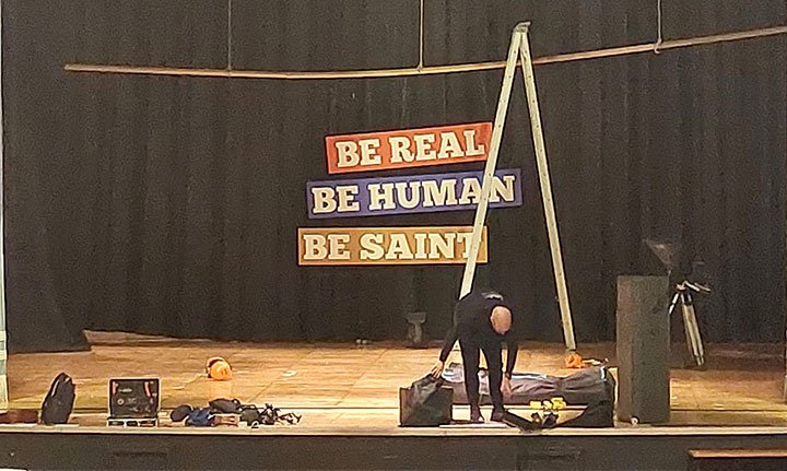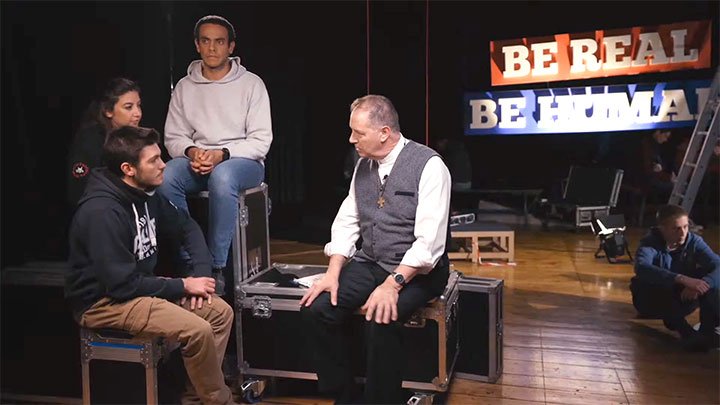 Câu chuyện video về Hoa Thiêng được chiếu trên sân khấu tại nhà hát Valdocco, như một hội thảo lớn với phông nền là những hàng chữ: ‘Be Real – Be Human – Be Holy ‘. Như một cuộc đối thoại với những người trẻ tuổi, toàn bộ “Men trong gia đình nhân loại” mở ra. Hai lời chứng hấp dẫn từ hai người trẻ nguyện xá – Erico đến từ Ciudad Juarez (Mexico) và Giovanna Bruno (thị trưởng Andria, miền Nam nước Ý). Với bối cảnh đầy thách thức của hai thành phố, họ chia sẻ kinh nghiệm thay đổi cuộc sống của mình tại nguyện xá Salêdiêng, nơi họ gặp gỡ các nhân chứng Tin Mừng hữu hình và Giáo hội đáng tin cậy.
