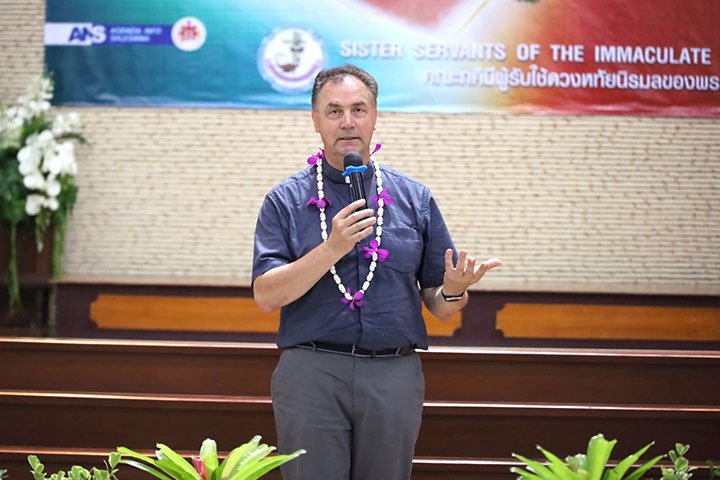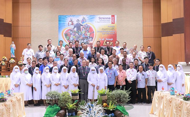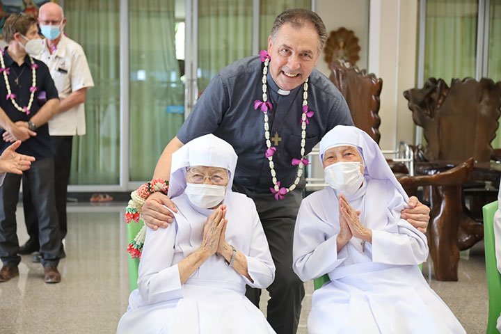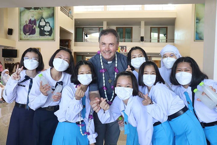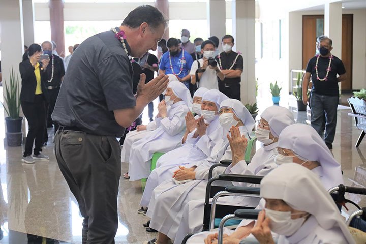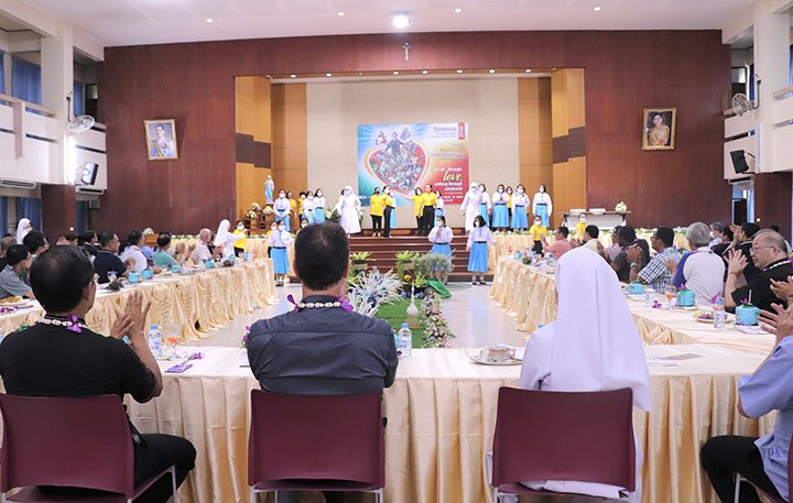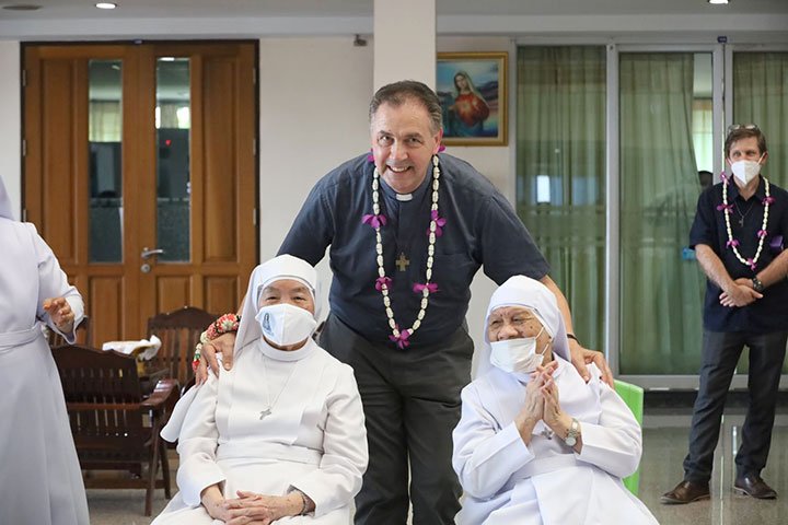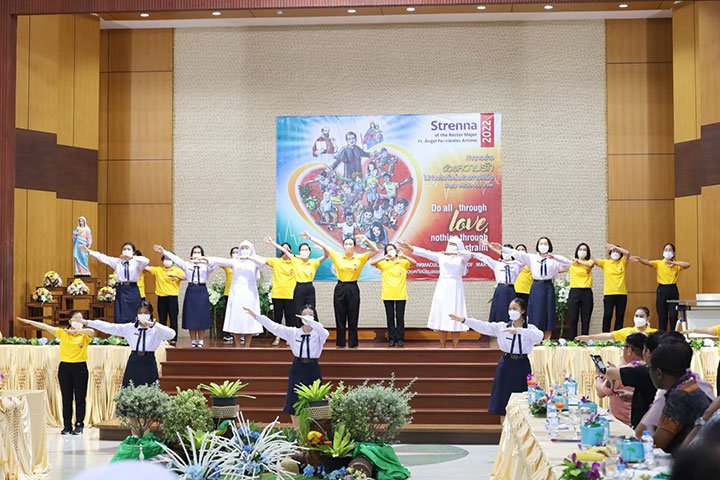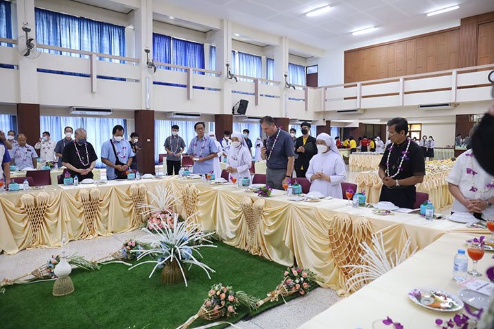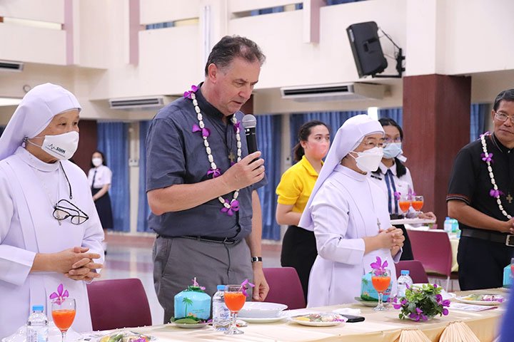 Ratchaburi, Thái Lan, ngày 9 tháng 5 năm 2022 – Vào lúc 12 giờ 30 ngày 6 tháng 5 năm 2022, Cha Bề Trên Cả cùng với các Giám tỉnh Vùng EAO và ban cố vấn của các ngài, đã đến thăm Trường Narivittaya và Bann Bann Ponpatchara hathainiramon của các Nữ tu SIHM. Sơ Maliwan Poramatviroj, Mẹ Tổng quyền, và các Sơ đã chào đón nồng nhiệt những vị khách quý. Trong bữa ăn, các học sinh đã biểu diễn một số điệu múa với những nét văn hóa đặc sắc trong bầu khí gia đình, trước sự thích thú của quan khách.