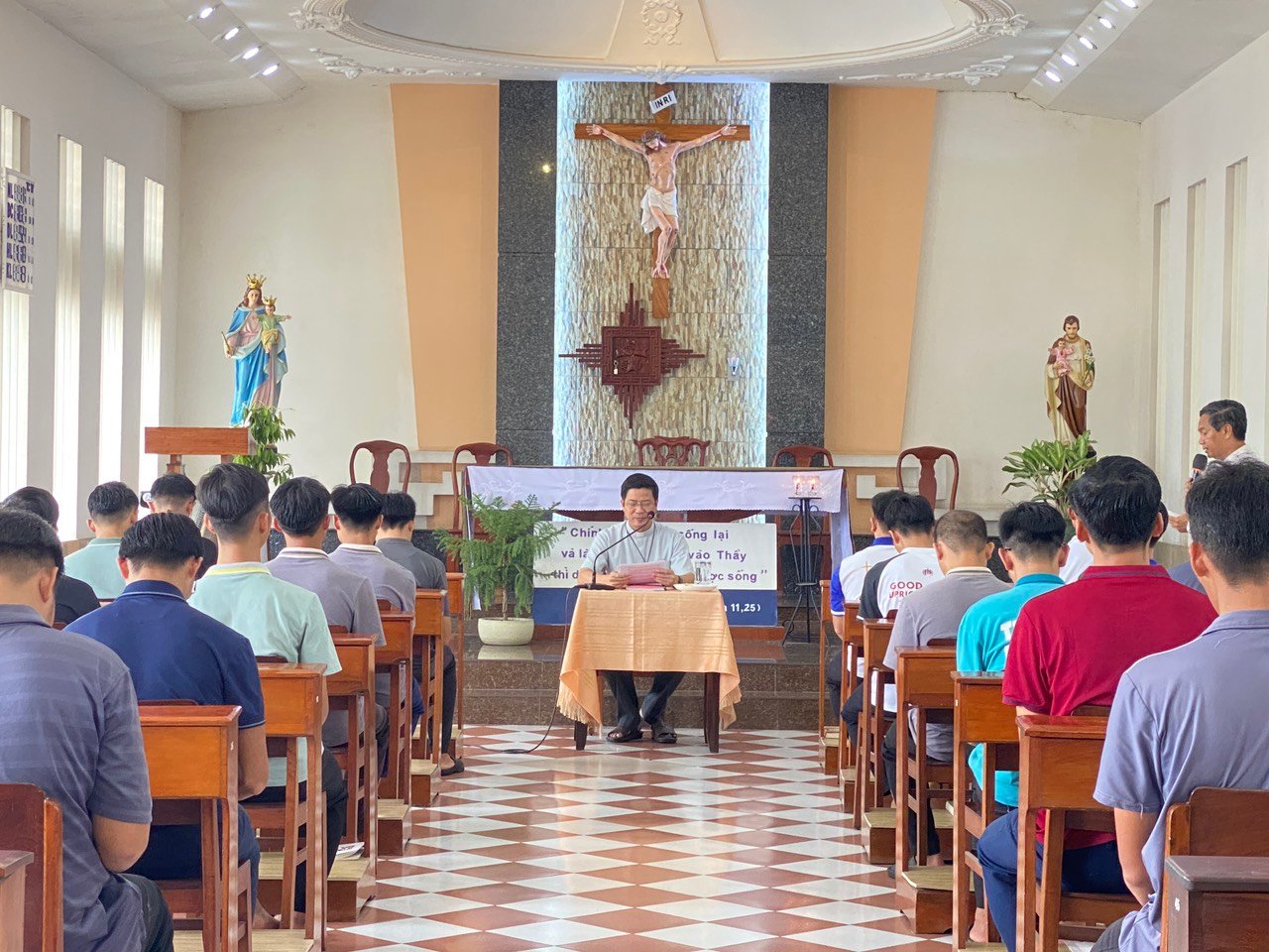 Trong suốt thời gian kinh lý, Cha Giám Tỉnh gặp gỡ từng hội viên, từng anh em Tiền Tập để chia sẻ về hành trình ơn gọi cũng như những cảm nghiệm trong đời tu Salêdiêng. Ngài lắng nghe và đưa ra những huấn dụ cần thiết để củng cố đời sống ơn gọi của mỗi anh em. Quý cha Cố Vấn Tỉnh đã có những bài chia sẻ về tinh thần Salêdiêng, sứ mệnh phục vụ người trẻ cho anh em hai lớp Dự Bị và Tiền Tập nhằm giúp anh em xác tín hơn trong đời sống ơn gọi.