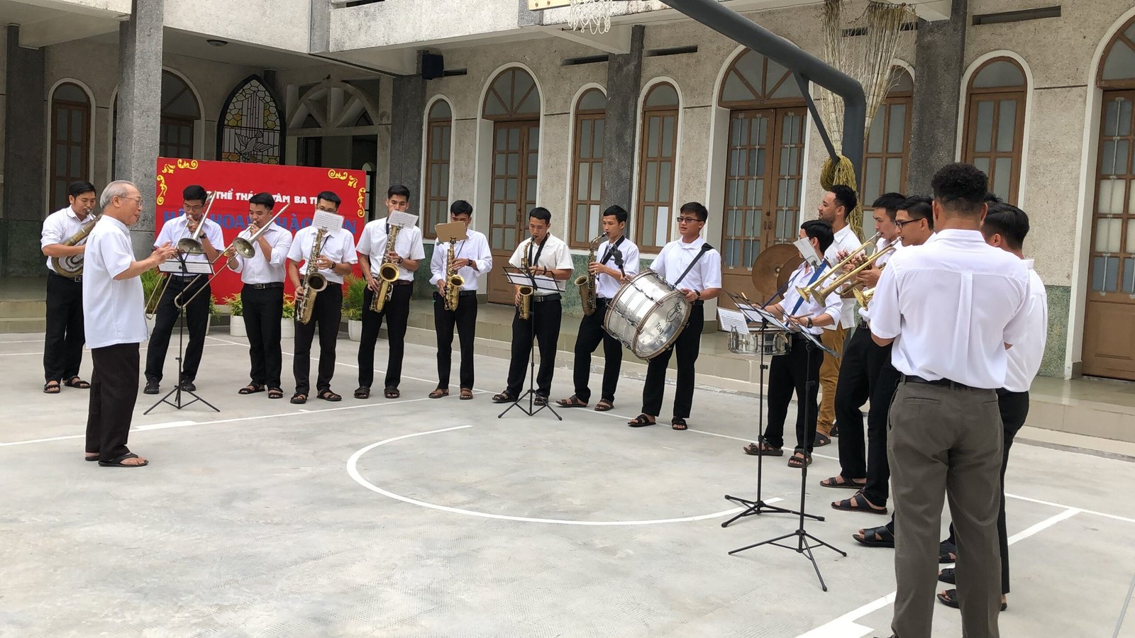Hiện diện trong buổi chào đón có cha Giám đốc Phêrô Phạm Văn Bộ, cha Tập sư Vinh Sơn Hoàng Phi Hải, quý cha trong cộng thể và toàn thể 17 anh em Tập sinh. Cha Giám đốc cộng thể Thánh Tâm Ba Thôn đại diện cộng thể nói lời chào mừng Cha Giám tỉnh cùng quý cha trong ban cố vấn đã đến và hiện diện cùng với cộng thể trong thời gian kinh lý này và cầu chúc cho buổi gặp gỡ huynh đệ đem lại nhiều kết quả tốt đẹp như Tu Hội và Giáo hội mong ước.