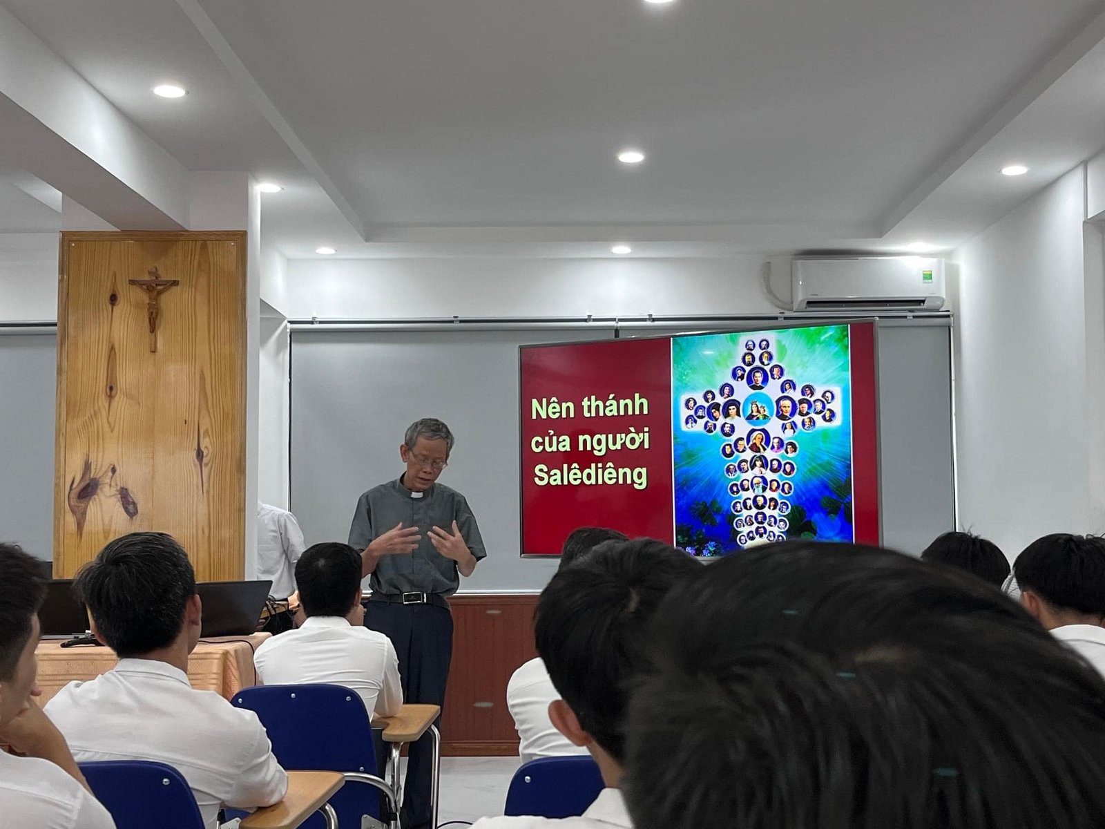 Chia sẻ trong Thánh lễ, Cha Angel mời gọi anh em Tu sinh sống chiều kích học hỏi những gương sáng nên Thánh của người Salêdiêng trong đời sống thường ngày. Hãy nên Thánh từ những việc nhỏ nhất, luôn sống chứng tá là một Ki-tô hữu tốt lành, một công dân gương mẫu và một Salêdiêng luôn dấn thân phục vụ. Như lời Don Bosco nói : “Nên Thánh là chu toàn bổn phận trong vui vẻ”