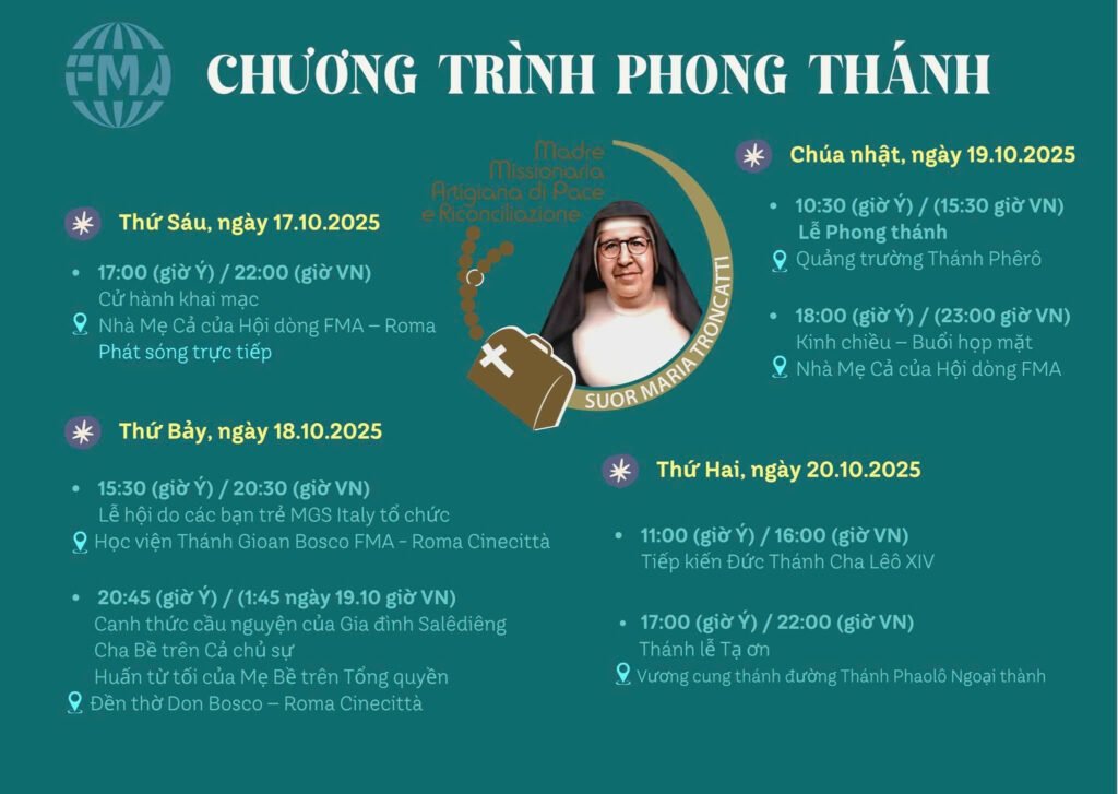 Ngày 19 tháng 10 năm 2025 tới đây là một ngày quan trọng cho tất cả các nữ tu Con Đức Mẹ Phù Hộ trên toàn thế giới và toàn thể gia đình Saledieng: ngày phong thánh cho Sơ Maria Troncatti, FMA.
