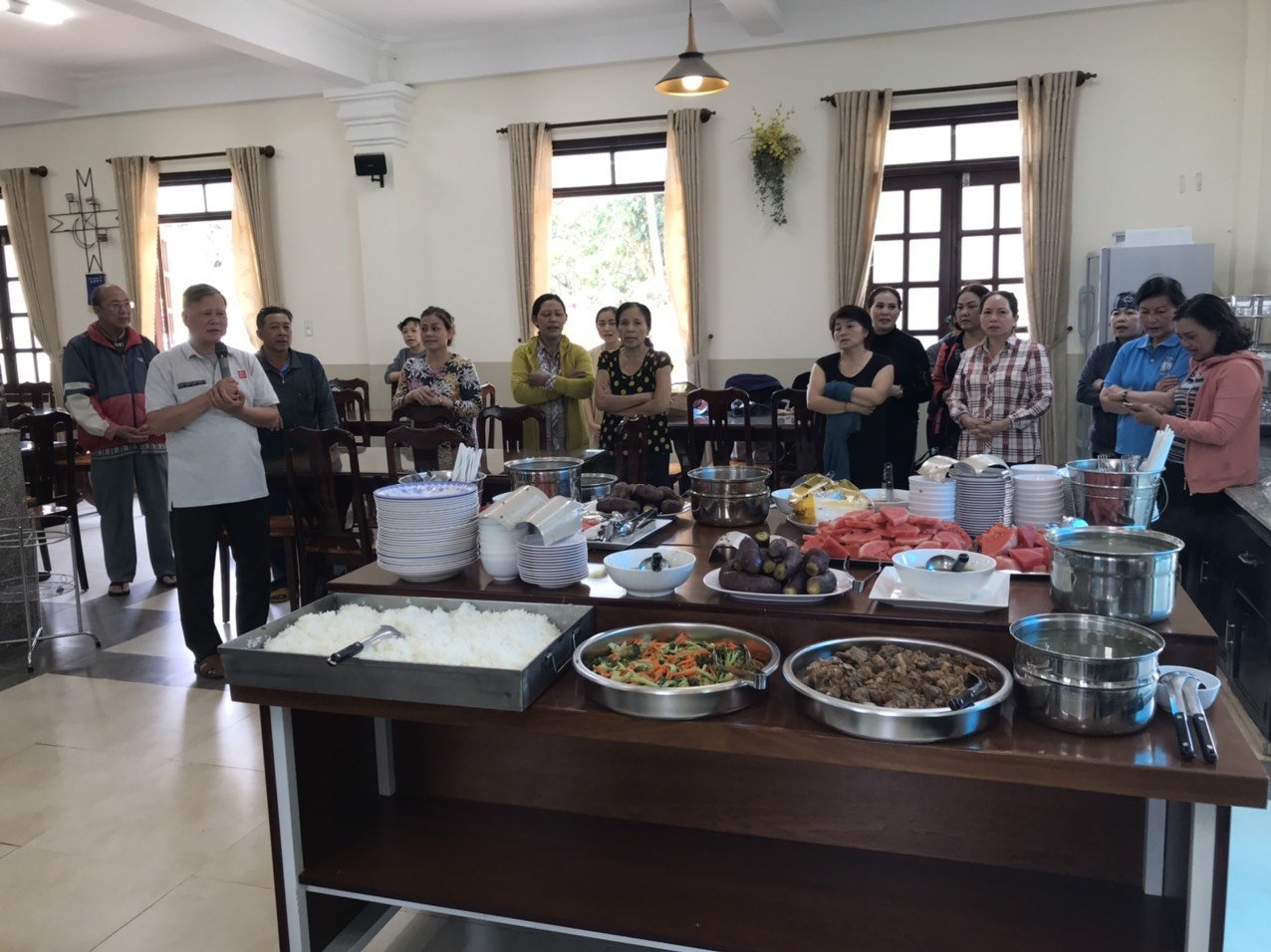Vào buổi trưa, anh chị em có buổi cơm với quý Cha, quý thầy tại Trung tâm Tĩnh Tâm.