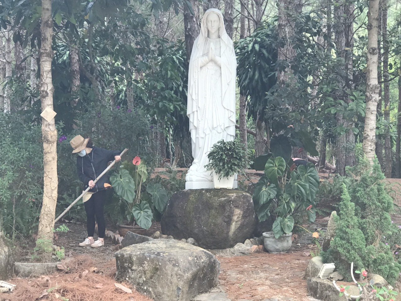 Sáng thứ hai ngày 11/4/2-22 anh chị em Cộng tác viên hai Trung Tâm Mẹ Phù Hộ (Đà Lạt) và Alessandrina (Đức Trọng) đến giúp Trung tâm Tĩnh tâm K’Long dọn dẹp vệ sinh khuôn viên, lối đi để chuẩn bị cho ngày làm phép Nhà Truyền Thống sau Đại lễ Phục Sinh.