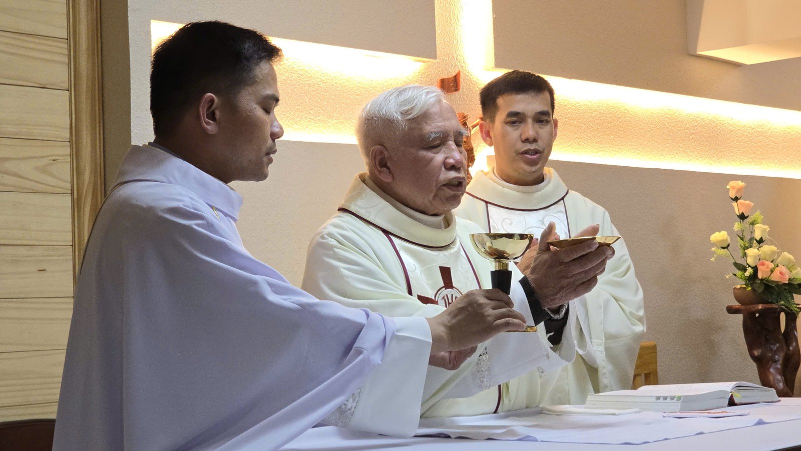 Lúc 17 giờ 30, Cha Gioan Trần Văn Cương- Ủy viên Trung tâm chủ sự thánh lễ tạ ơn; đồng tế với Ngài có Cha Phanxicô Xaviê Trần Quốc Tuấn- Quản lý Học viện Don Bosco Đà Lạt- kiêm Đặc trách Nhóm sinh viên Don Bosco, Cha Giuse Trần Viết Phương- Đặc trách Tu sinh Don Bosco Đà Lạt. Cùng tham dự thánh lễ tạ ơn có Sư huynh Đaminh Hà Anh.