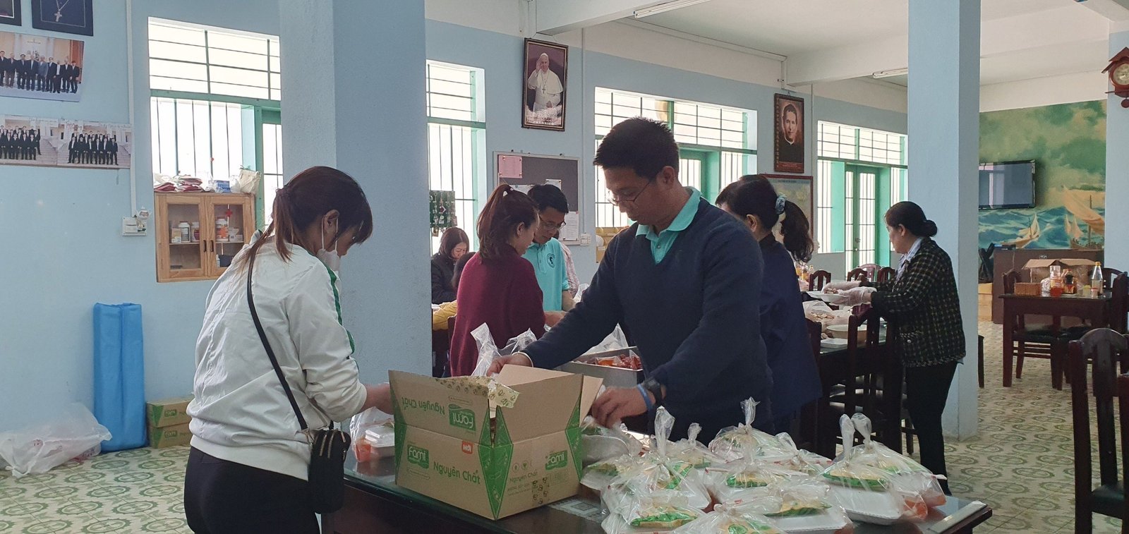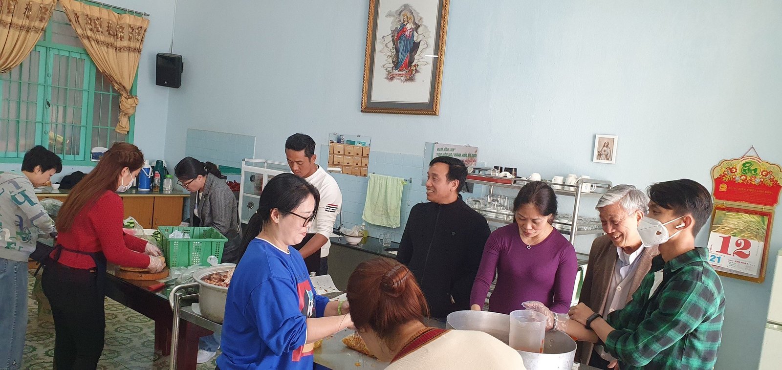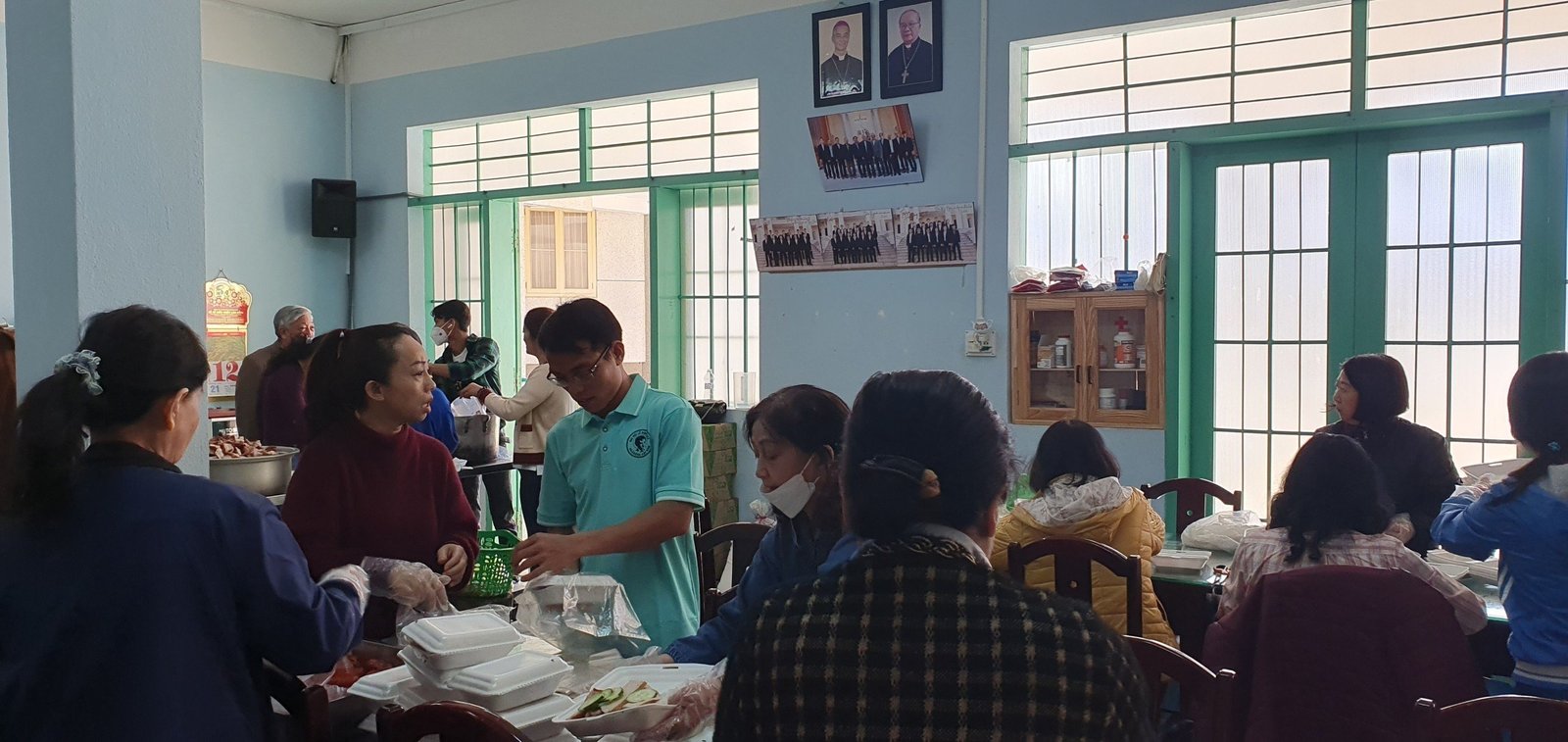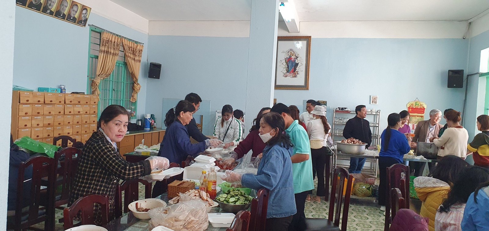 Dịp này anh chị em CTV Trung tâm MẸ PHÙ HỘ (Đà Lạt) đã chung tay đóng góp lo bữa ăn trưa cho các Lễ sinh, từ sáng sớm các anh chị đến nhà bếp Học viện Don Bosco Đà Lạt để chuẩn bị các món ăn cho 500 người gồm Lễ sinh và ban tổ chức cùng các tình nguyện viên.