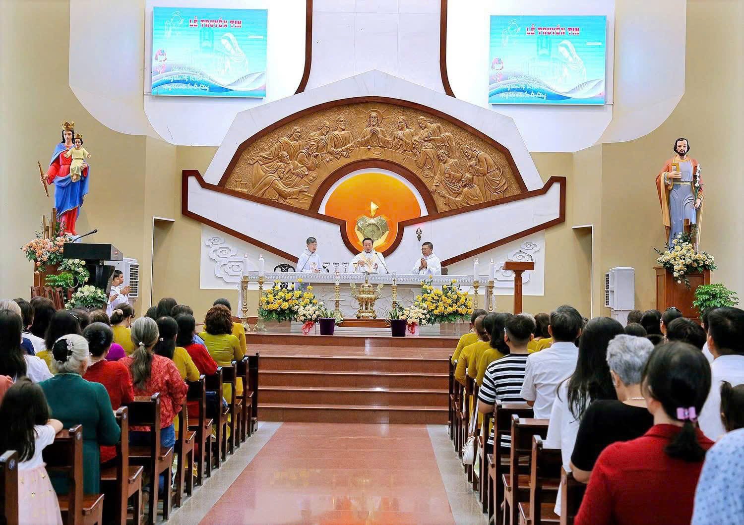 Thánh lễ diễn ra lúc 17h30, do Cha Phêrô Phạm Quốc Hùng, SDB , Ủy viên Trung tâm CTV Truyền Tin chủ tế. Đồng tế với ngài có quý Cha Salêdiêng thuộc các trung tâm Cộng tác viên và các cộng đoàn lân cận.