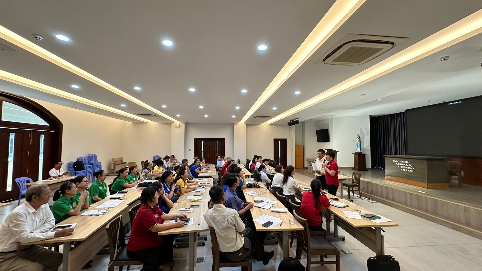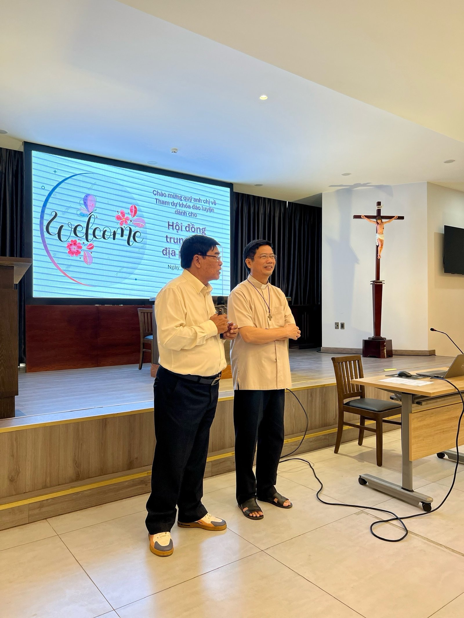 Tiếp theo là phần giới thiệu của các thành viên của các trung tâm tham dự. Sau những lời giới thiệu, Các tham dự viên cùng nhau xin ơn Chúa Thánh Thần soi sáng cho buổi đào luyện được diễn ra tốt đẹp.