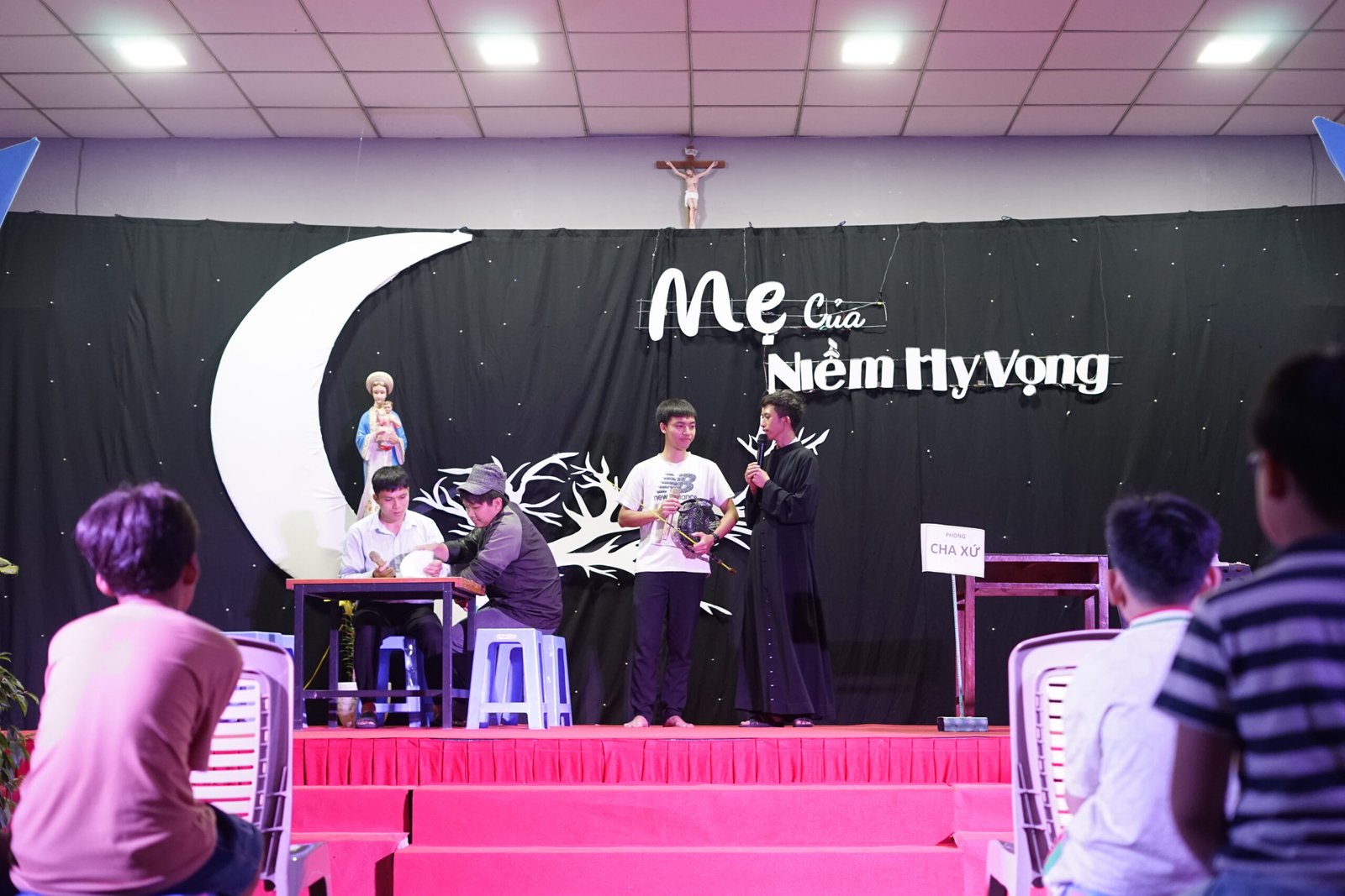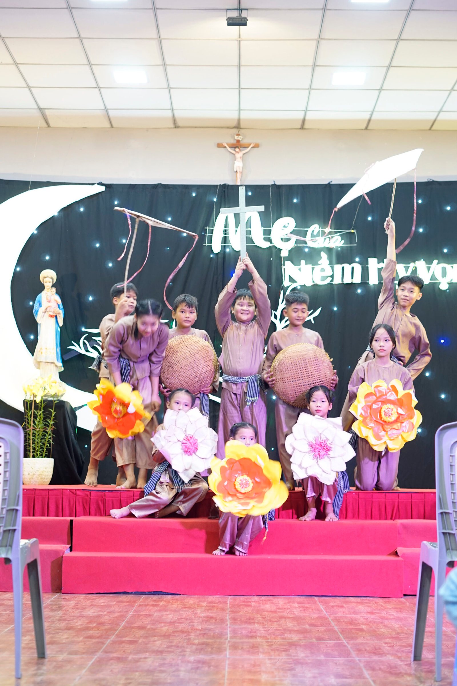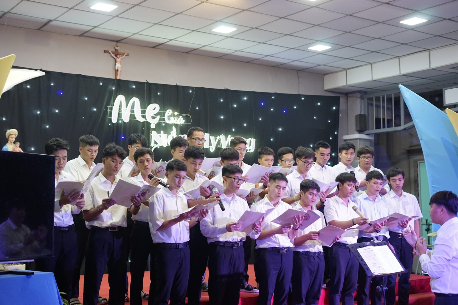 Tân Thịnh, Cầu Bông – Vào lúc 19h00 ngày 7 tháng 12 năm 2024, Cộng thể Đaminh Saviô Cầu Bông đã tổ chức đêm dạ hội mừng lễ kính Đức Mẹ Vô Nhiễm Nguyên Tội tại hội trường Giáo xứ Tân Thịnh với chủ đề “Mẹ của niềm hy vọng”.
