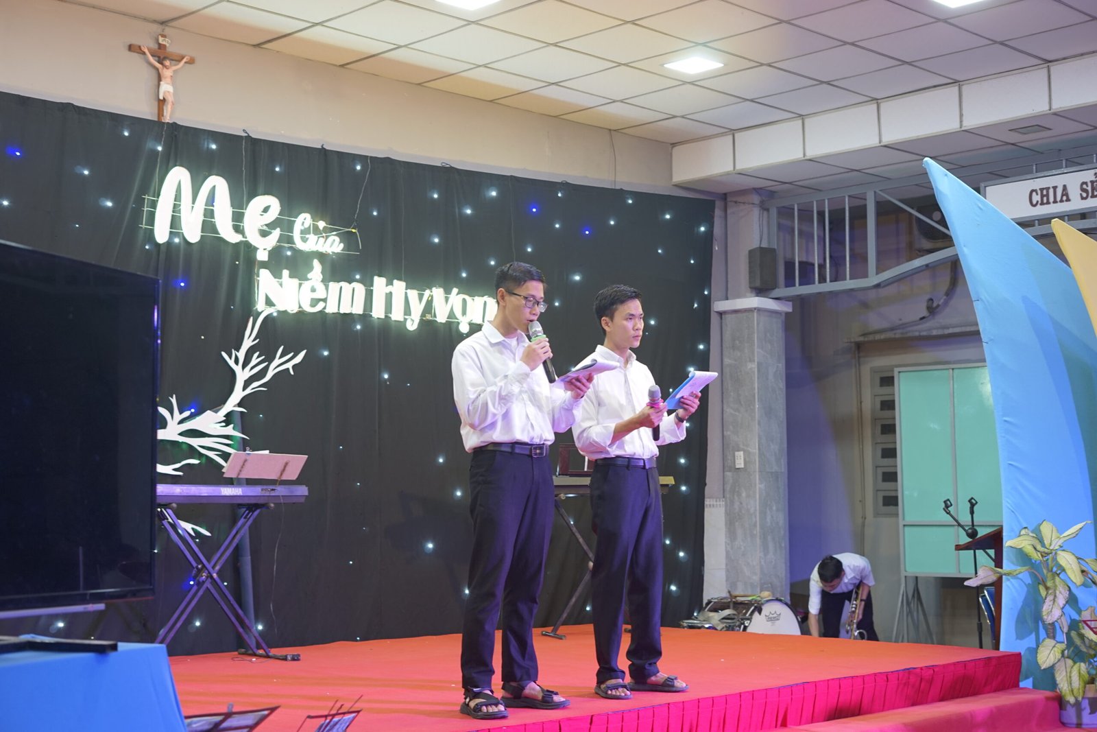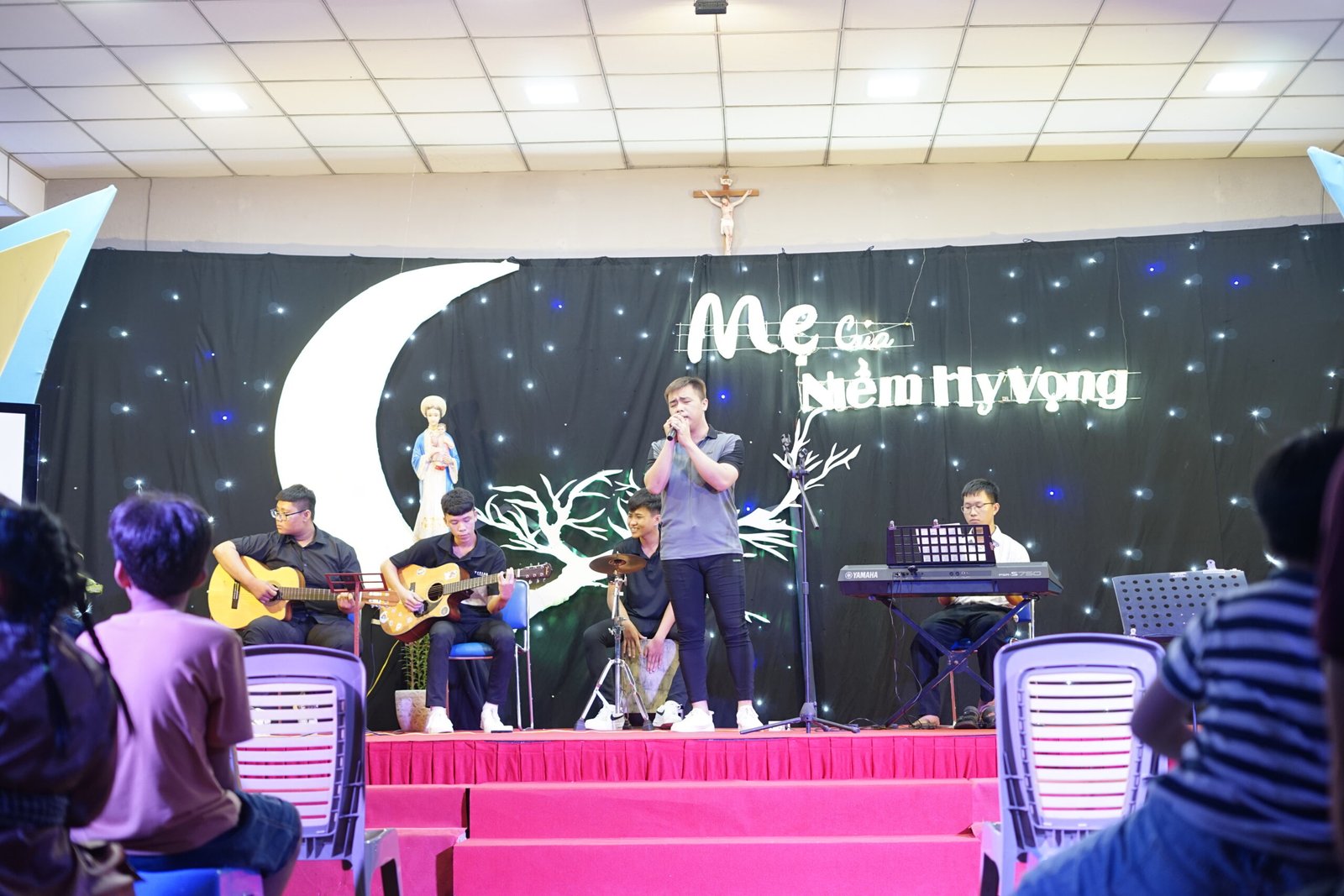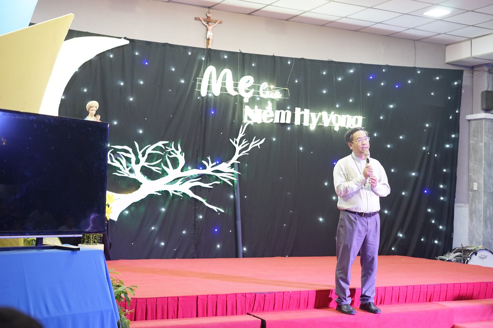 Tân Thịnh, Cầu Bông – Vào lúc 19h00 ngày 7 tháng 12 năm 2024, Cộng thể Đaminh Saviô Cầu Bông đã tổ chức đêm dạ hội mừng lễ kính Đức Mẹ Vô Nhiễm Nguyên Tội tại hội trường Giáo xứ Tân Thịnh với chủ đề “Mẹ của niềm hy vọng”.