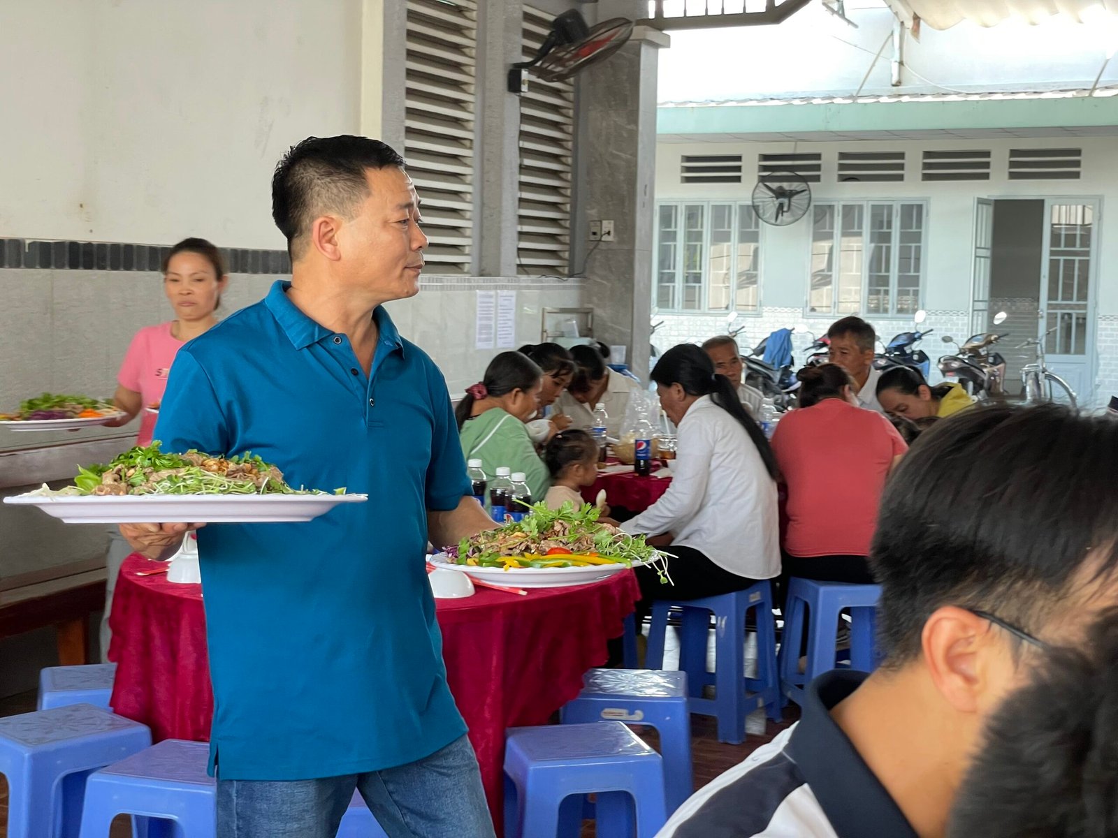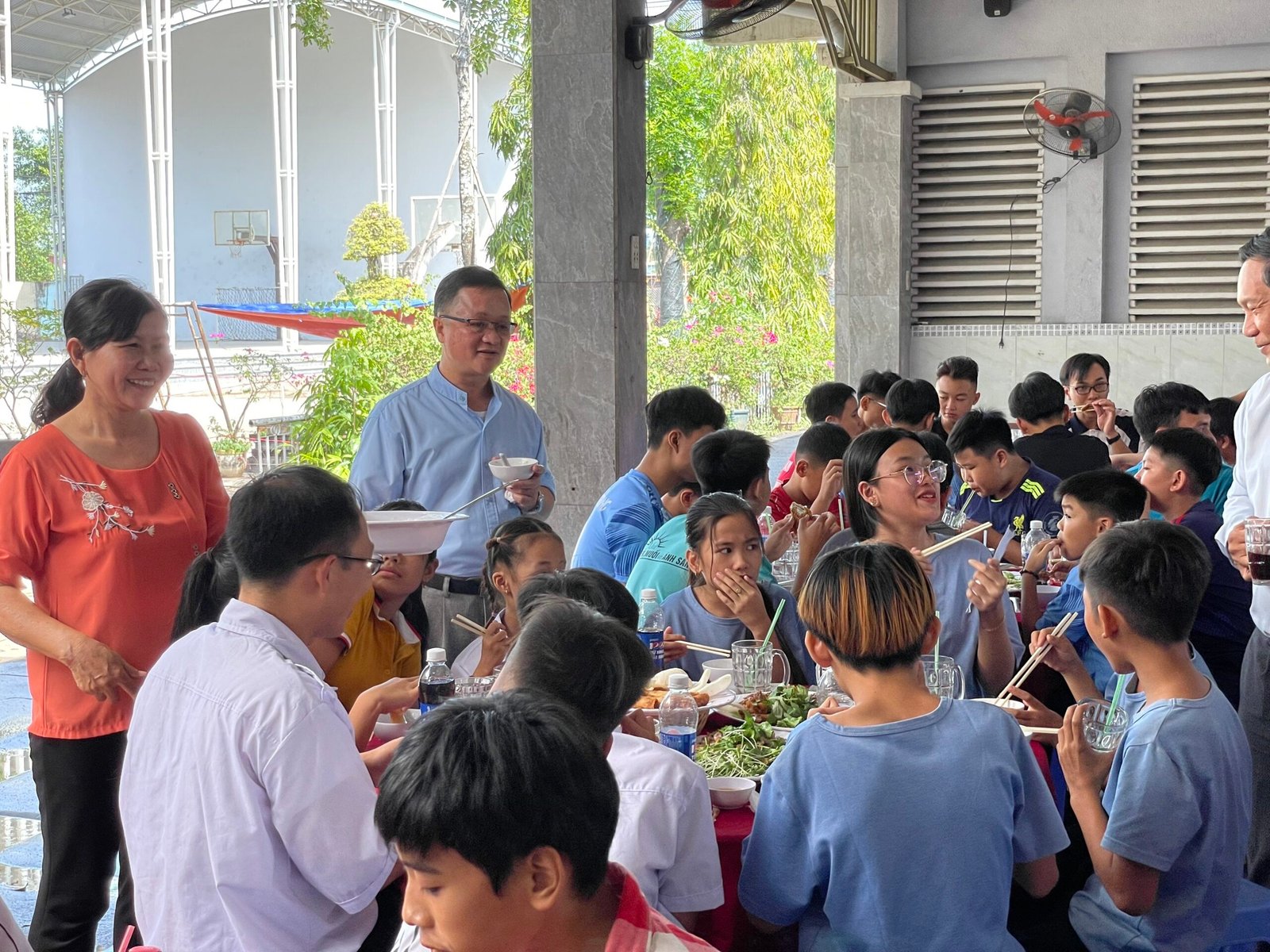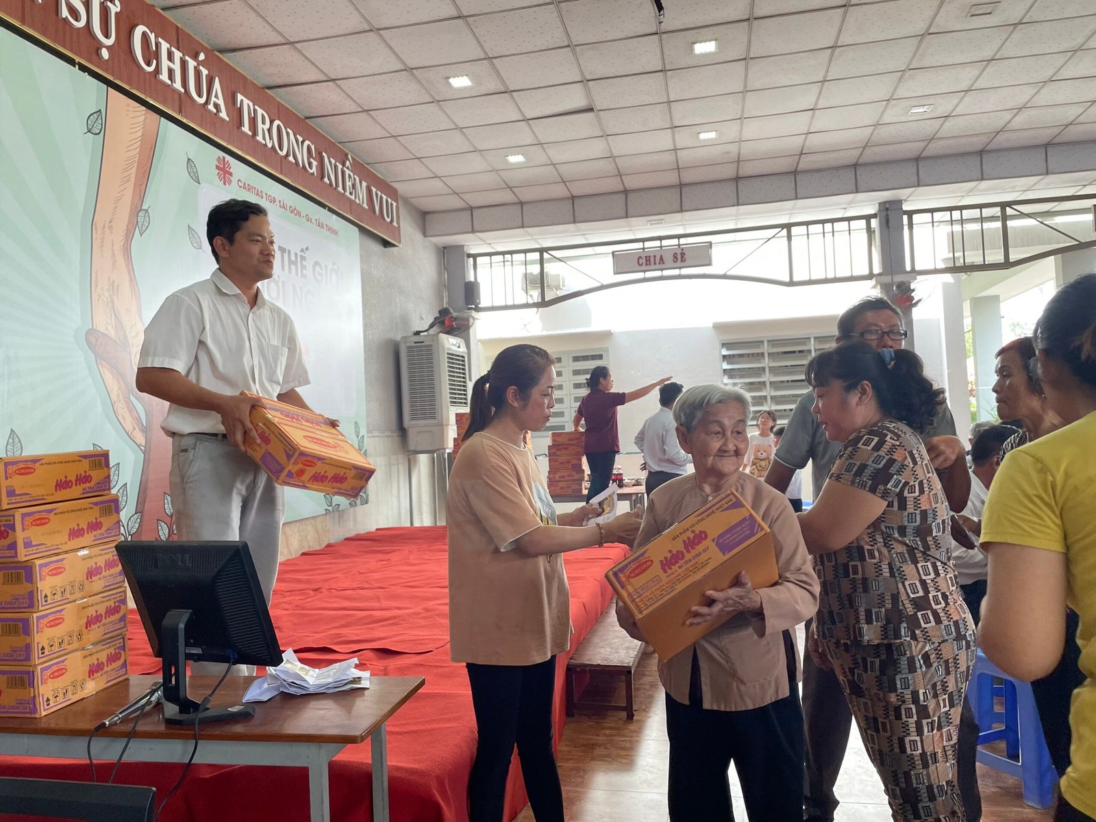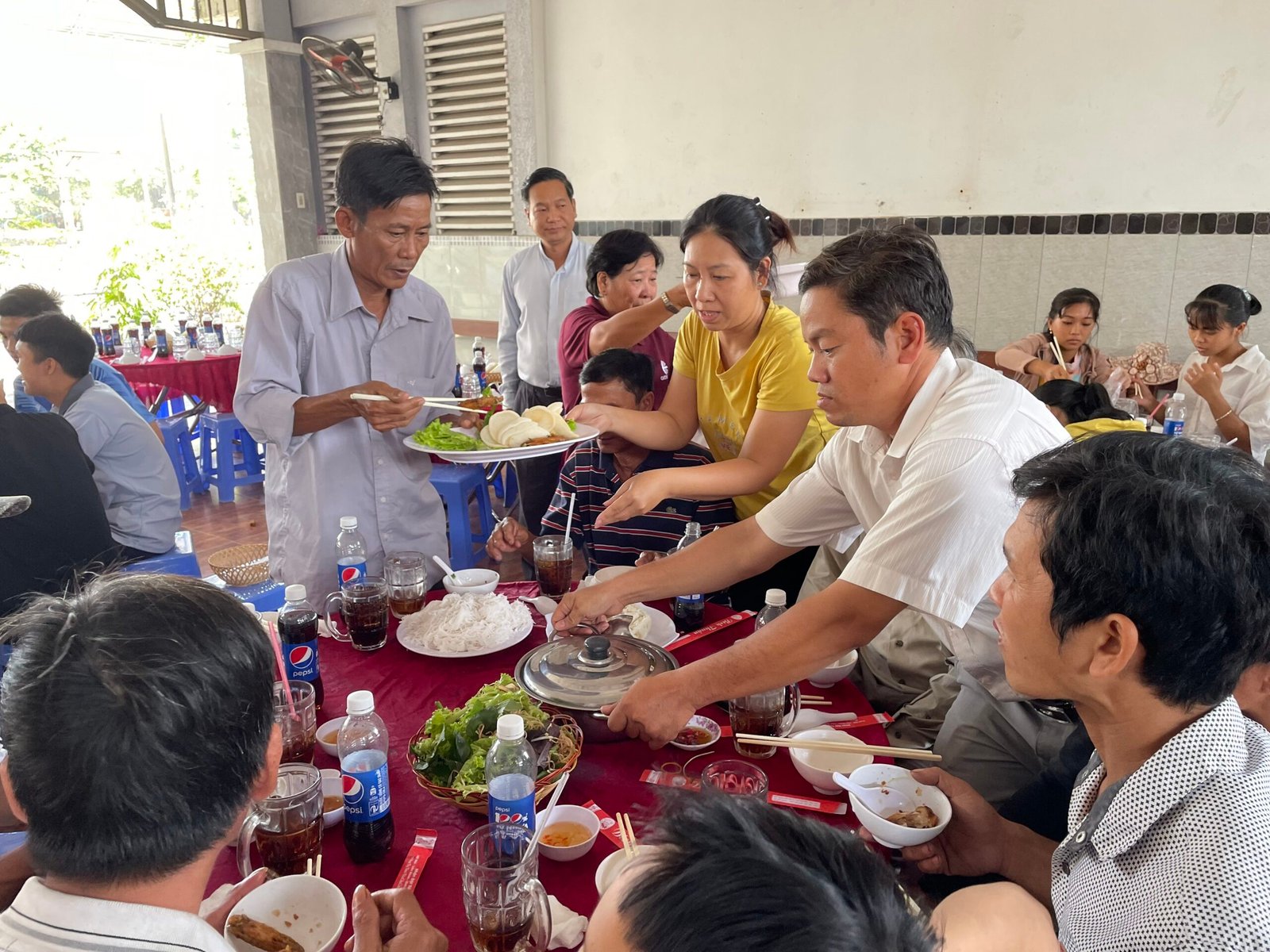 Đúng 11h30 trưa Chúa Nhật 33 Thường Niên, bữa cơm chính thức được quý cha, thầy, quý HĐMV cùng các anh chị em trong ban Caritas phục vụ. Bữa ăn được chính thức mang ý nghĩa với sự góp của các gia đình khó khăn, những cụ giàn neo đơn, các em học sinh lớp phổ cập….