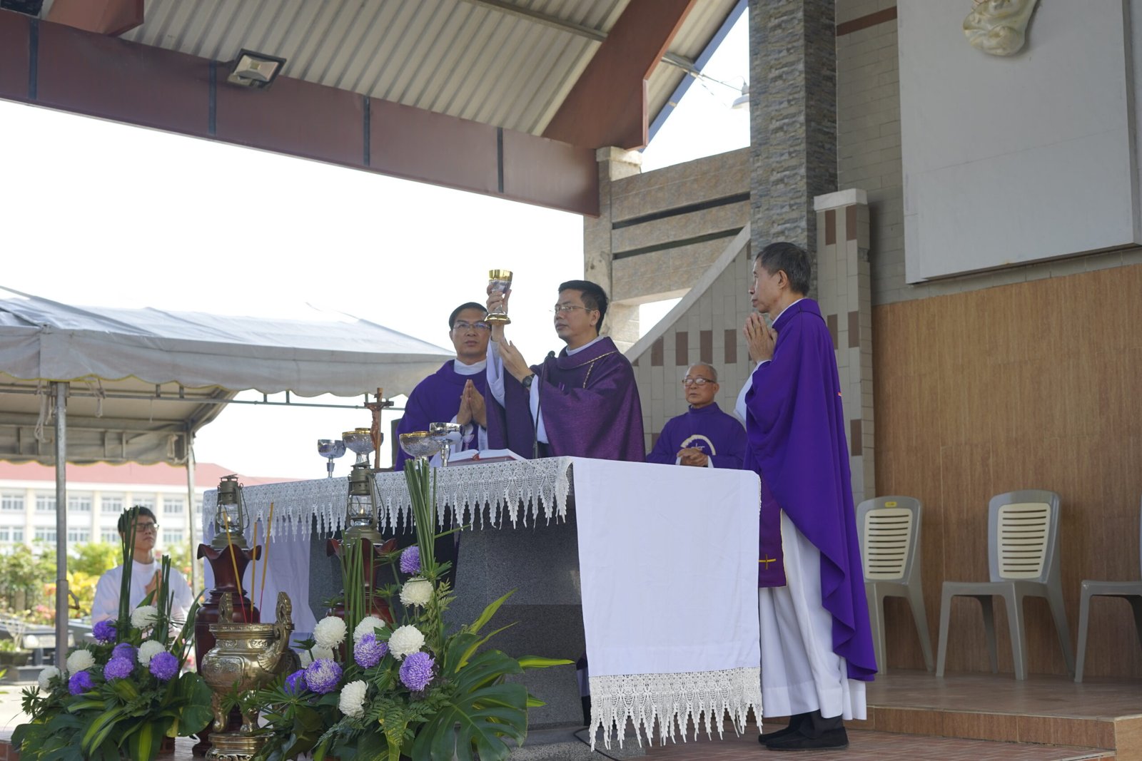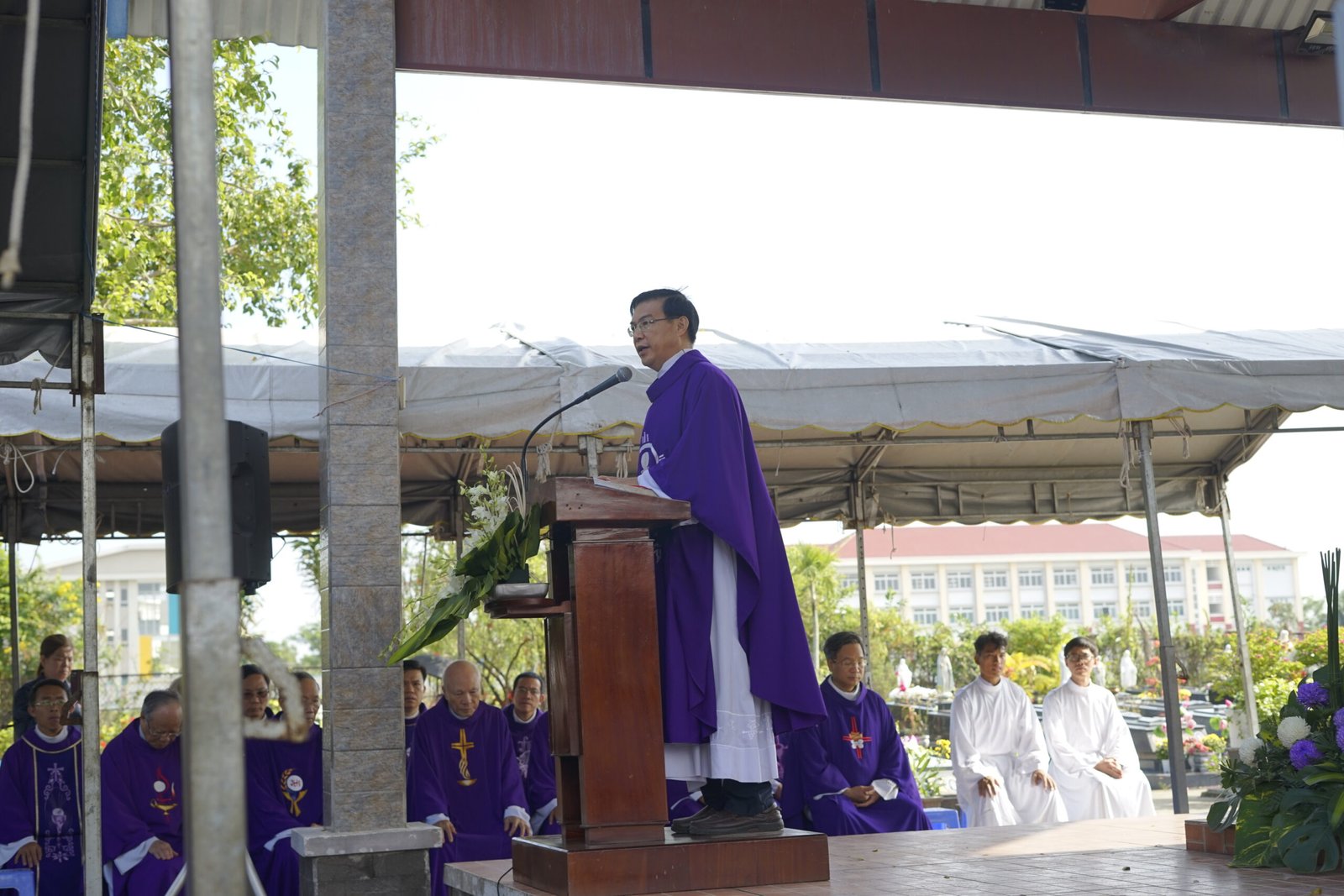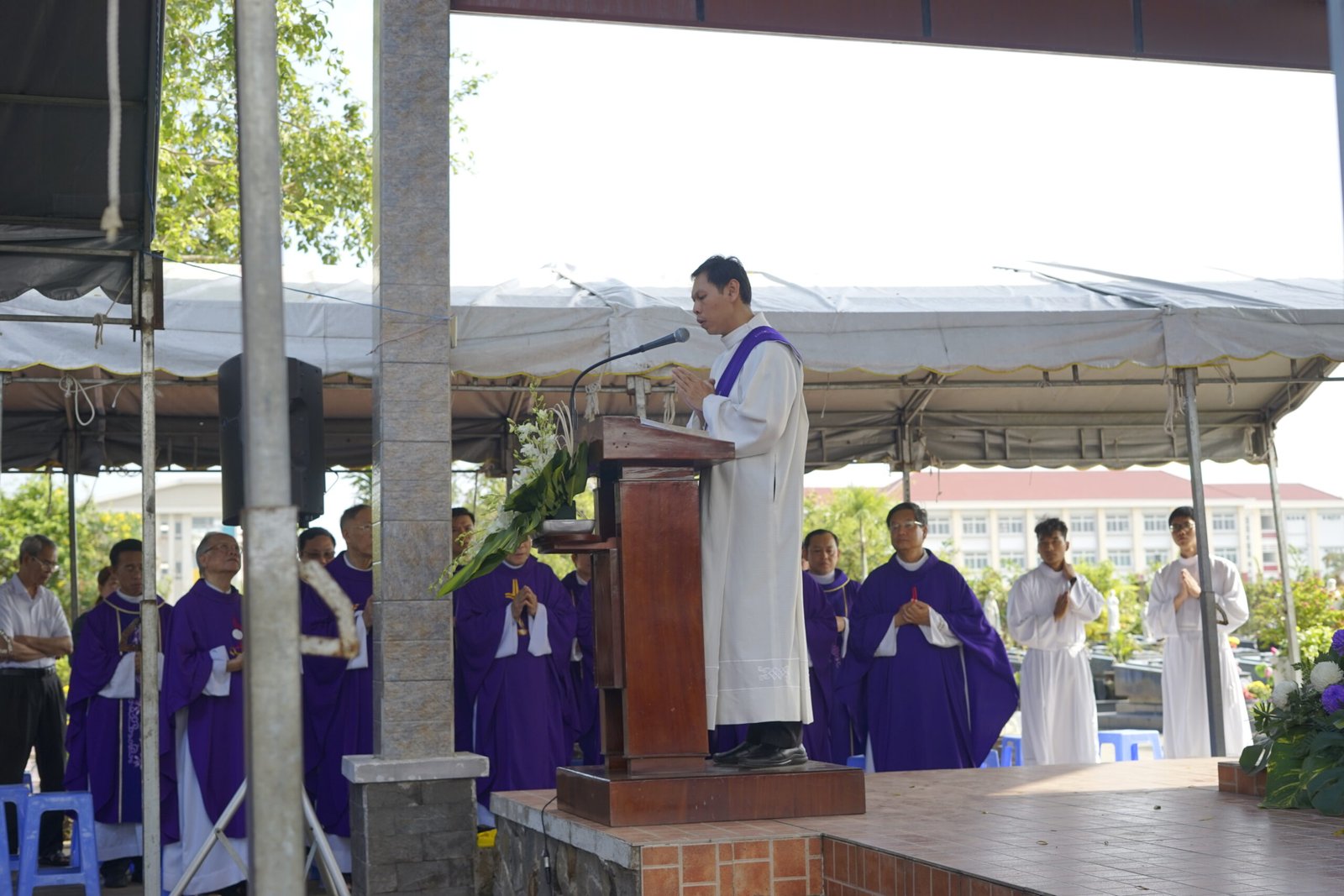 Thánh lễ bắt đầu lúc 08 giờ sáng, với sự chủ sự của Cha Giám Tỉnh Barnaba Lê An Phong. Trong bài giảng, Cha Phó Giám tỉnh Giuse Nguyễn Kim Khánh đã chia sẻ về ý nghĩa của thời gian và sự sống, nhấn mạnh rằng mỗi người đều phải đối mặt với ngày rời khỏi đời sống này. Cha cũng bày tỏ lòng biết ơn đối với những Salêdiêng đã qua đời, nhắc nhở về những dấu chân và hoa trái mà họ để lại.