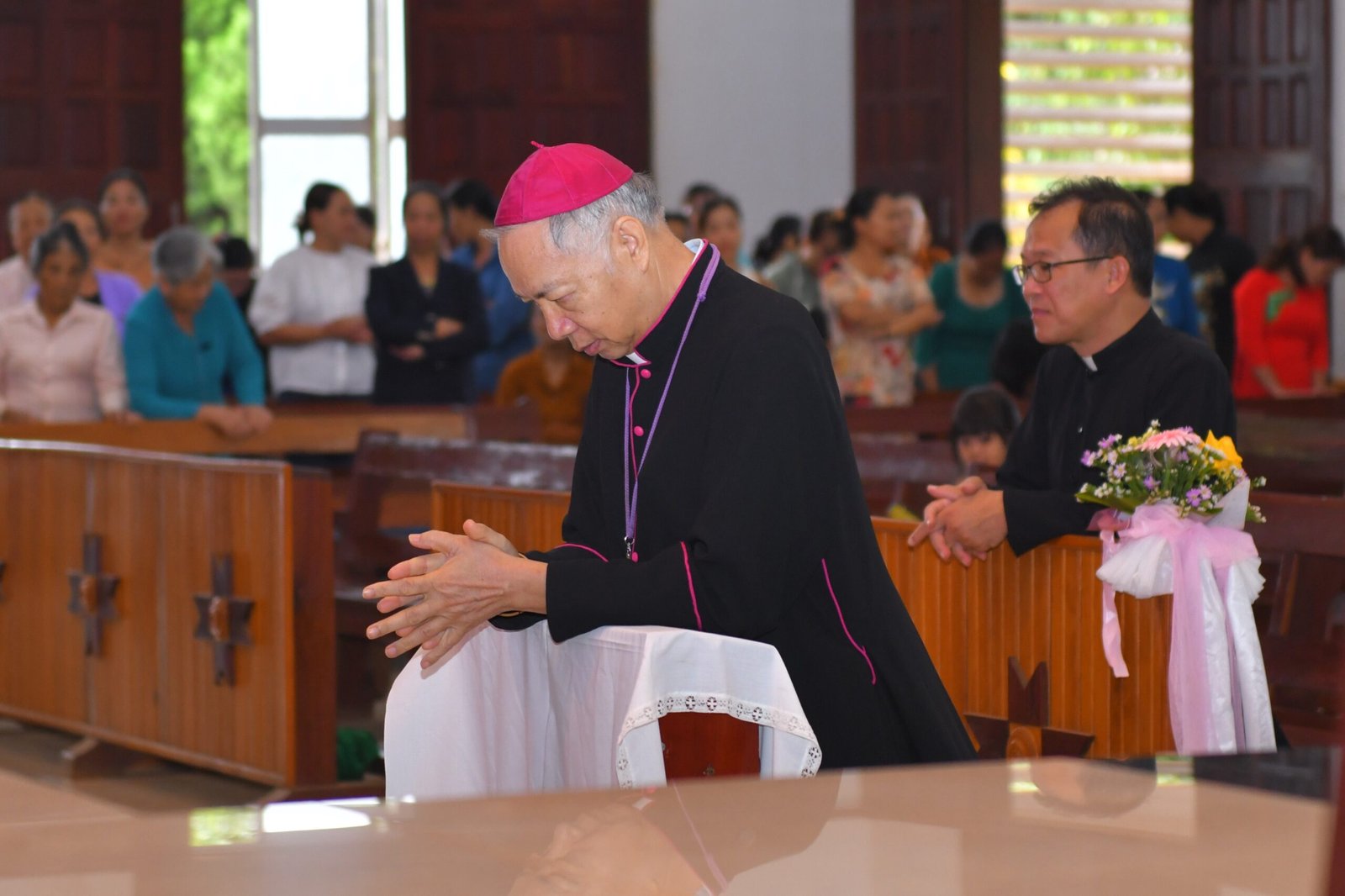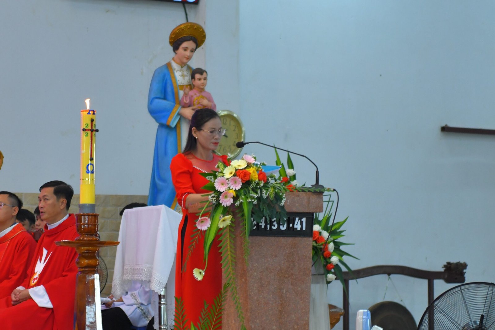 Cuối Thánh lễ, đại diện giáo xứ đã có đôi lời tri ân đến Đức Cha Alôisiô, Cha Quản hạt, Cha Chánh xứ, quý cha và quý cộng đoàn đang hiện diện. Sau đó, mọi người đã chia sẻ niềm vui với nhau tại hội trường giáo xứ.