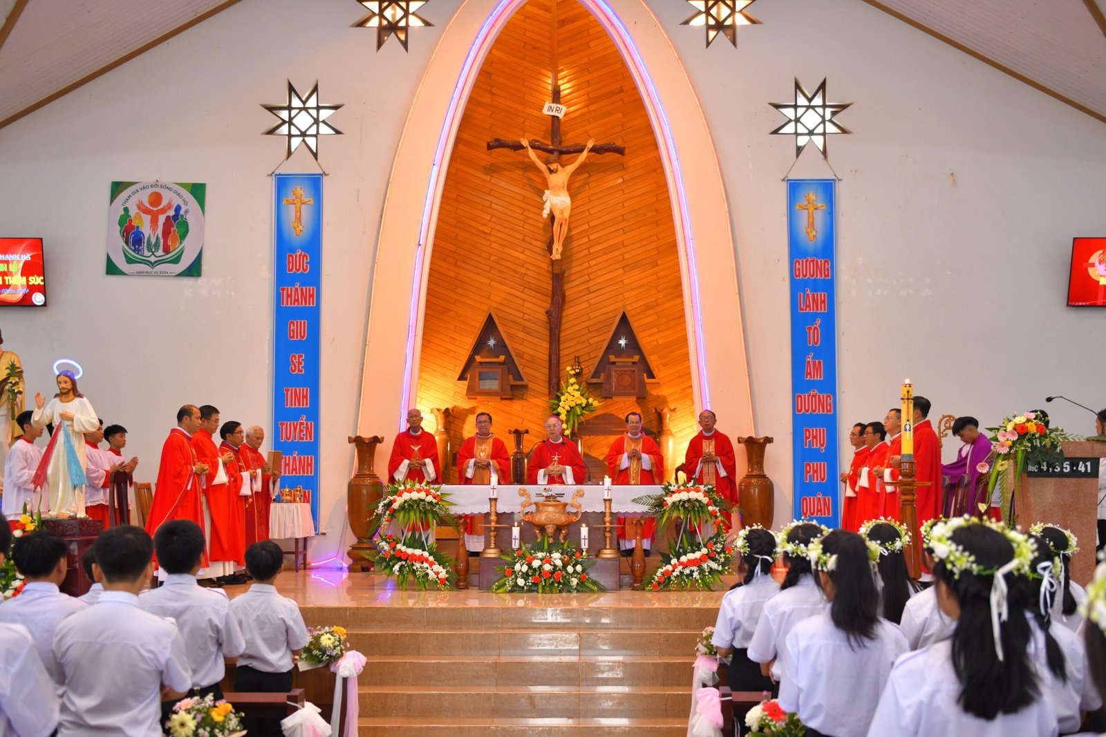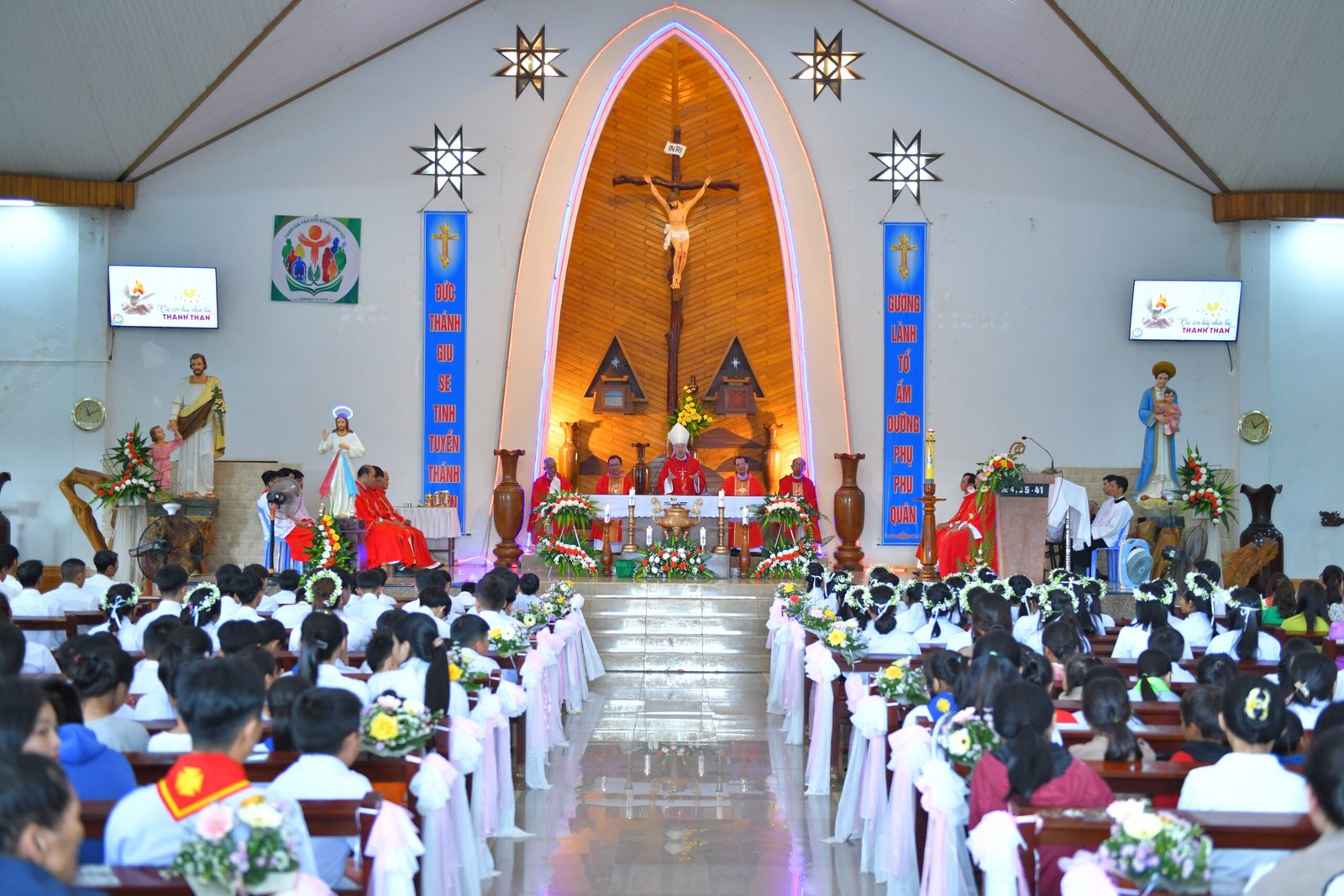 Chư Prông, Gia Lai – Vào lúc 9h00 sáng ngày 19.07.2024, tại Giáo xứ Thanh Hà (Giáo hạt Chư Prông, Giáo phận Kon Tum) đã diễn ra Thánh lễ Thêm Sức cho 53 em thiếu nhi do Đức Cha Alôisiô Nguyễn Hùng Vị, Giám mục Giáo phận Kon Tum chủ sự.