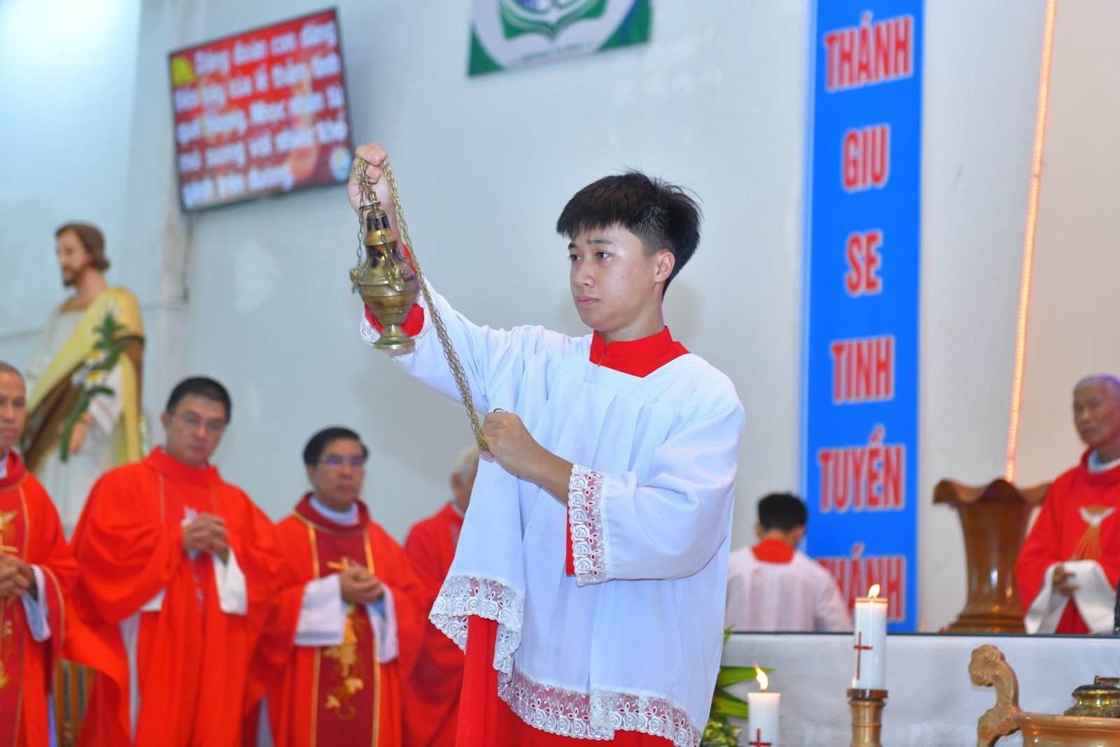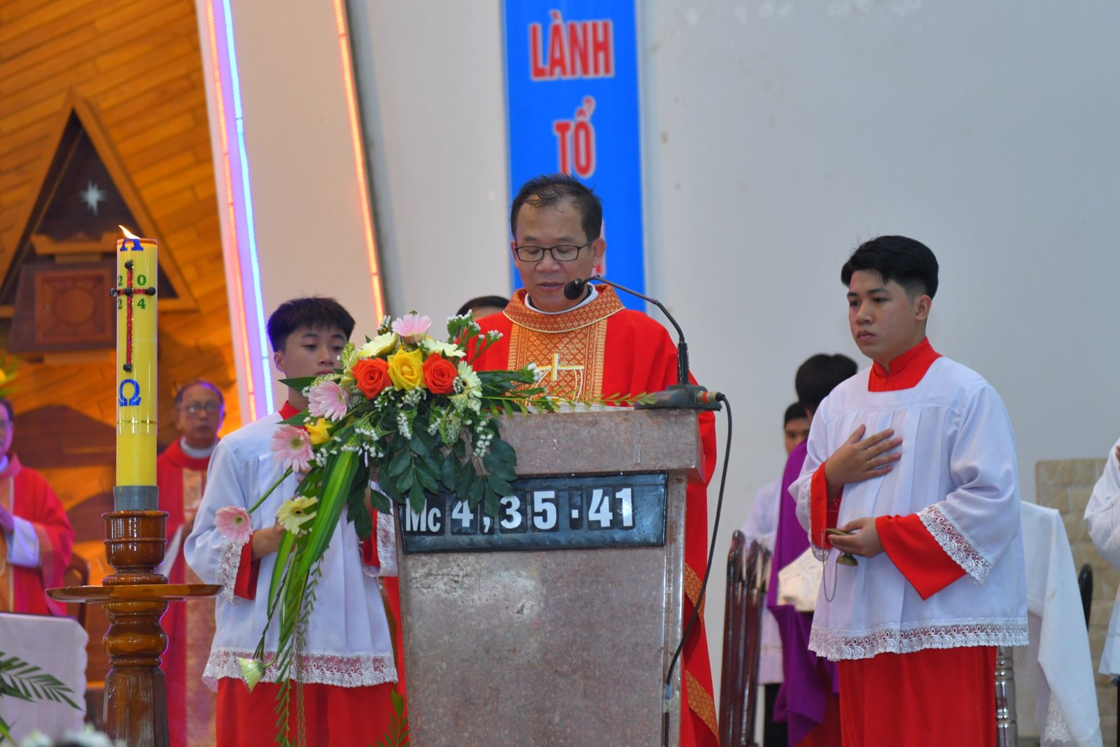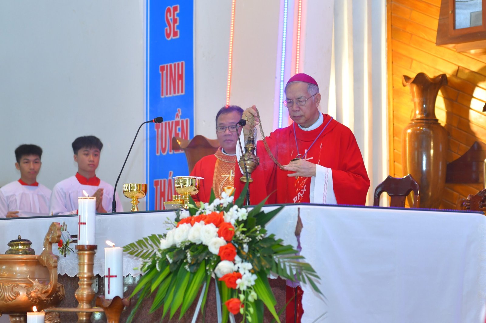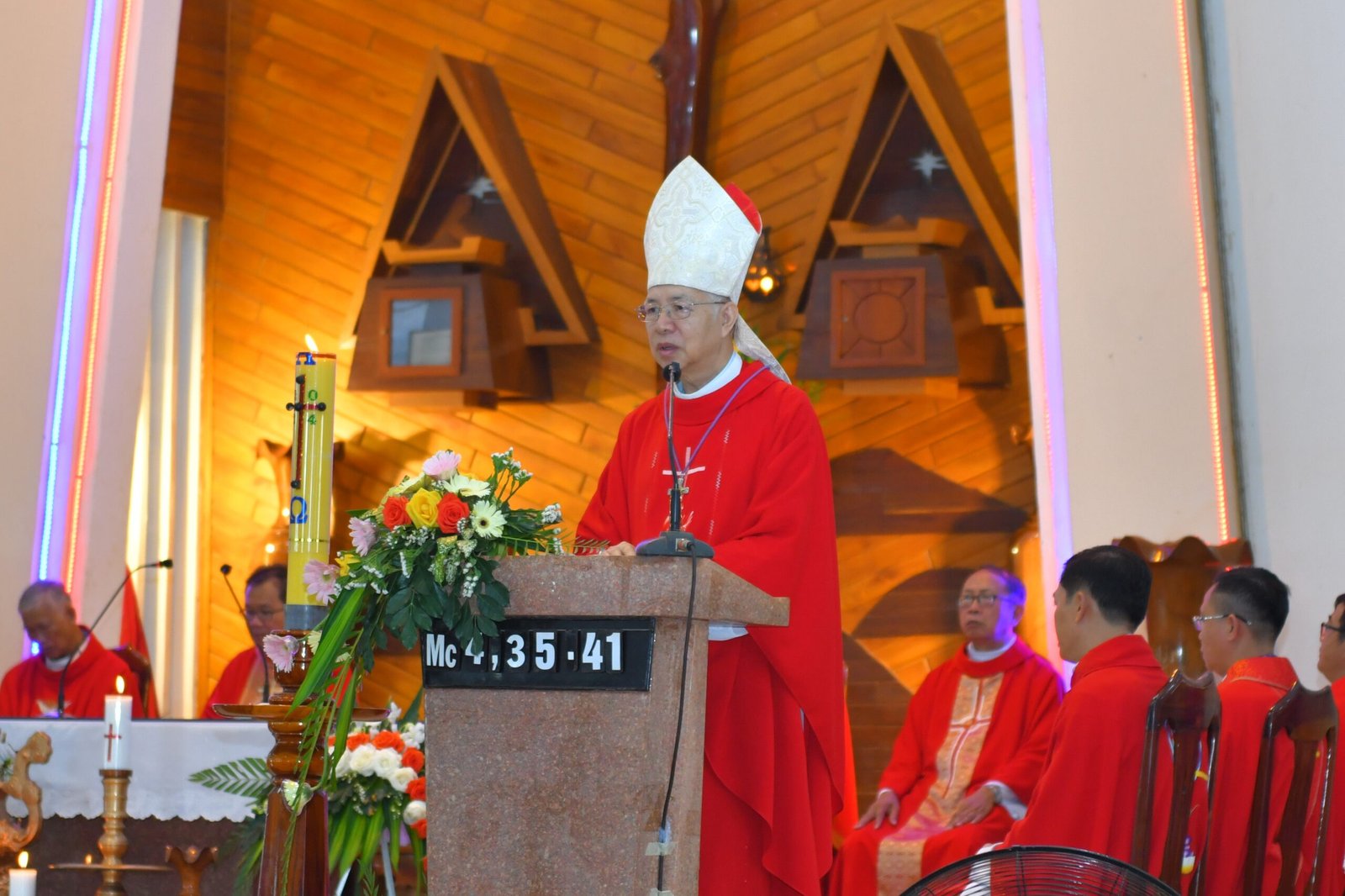 Trong bài giảng của mình, Đức cha Alôisiô đã mời gọi các em thiếu nhi sau khi lãnh nhận Bí tích Thêm Sức, hãy can đảm làm chứng cho Chúa nơi môi trường sống của mình. Đức cha cũng nói rằng Chúa Thánh Thần đang hiện diện giữa cộng đoàn giáo xứ, do đó mỗi người cần phải lắng nghe tiếng Chúa Thánh Thần và xin Chúa ban những ơn cần thiết để có thể sống tốt đời sống đức tin của mình. Sau bài giảng, Đức Cha đã ban Bí tích Thêm Sức cho 53 em thiếu nhi.