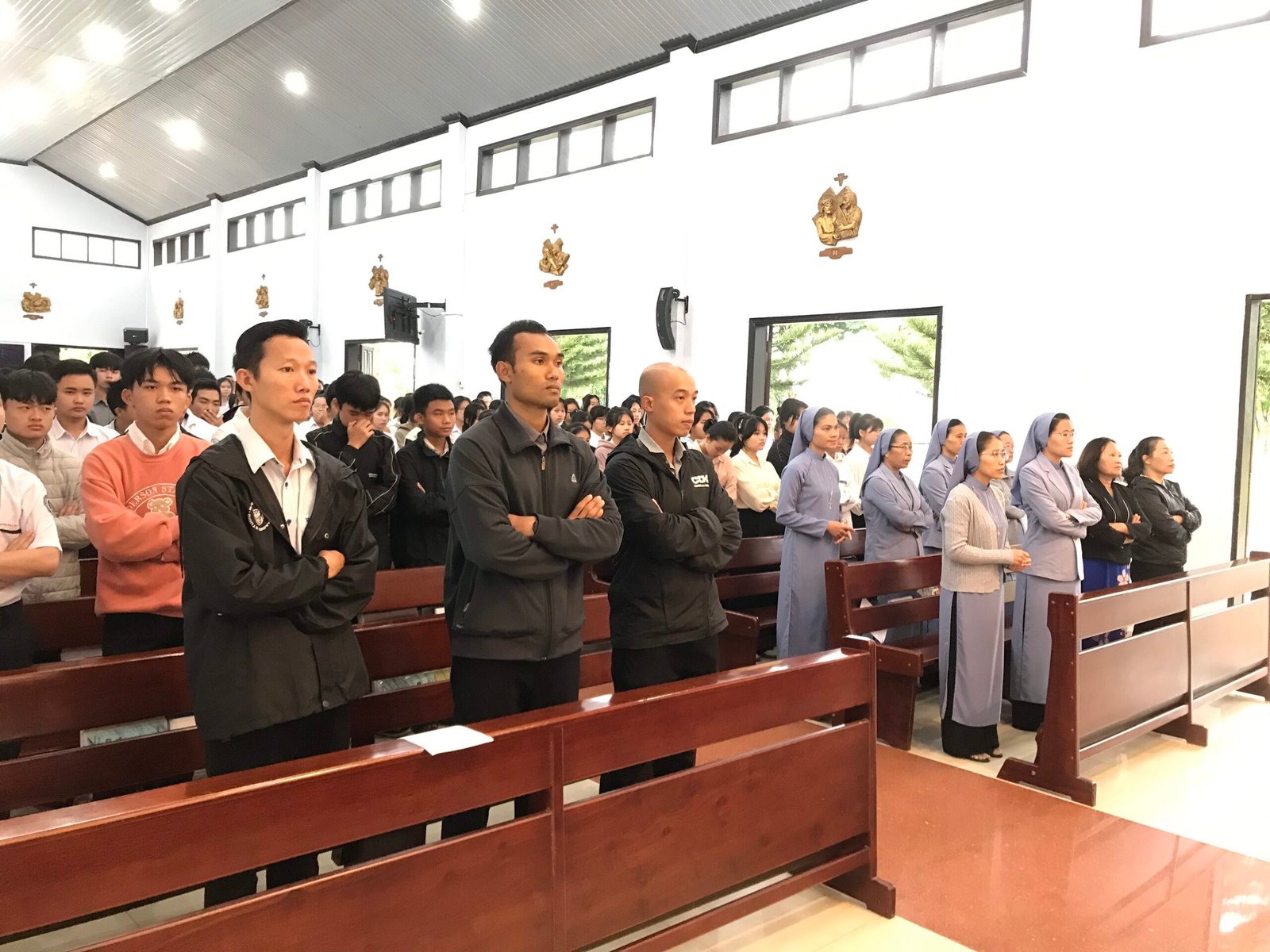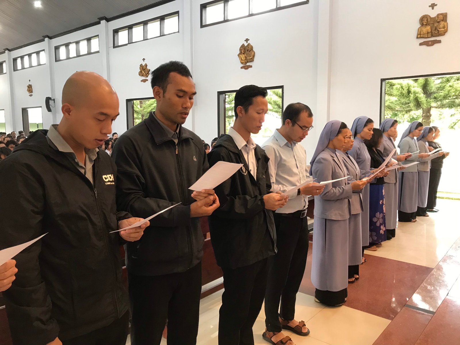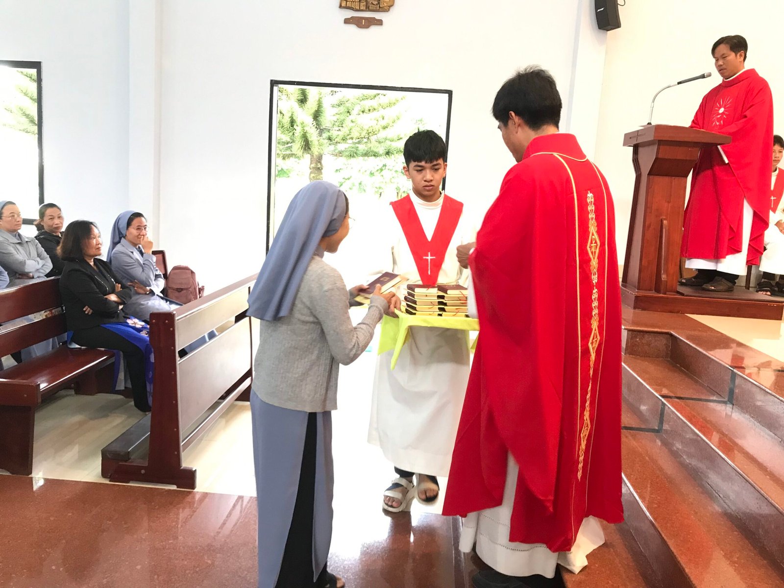 Trong Thánh lễ, quý Sơ, quý Thầy đã tuyên xưng Đức tin trong việc dạy Giáo lý. Nghi thức này nhắc nhở và khơi lên ngọn lửa thôi thúc các ngài trở nên những Giáo lý viên đích thực truyền tải đức tin và tin mừng của Chúa đến cho các em học sinh tại nơi đây.