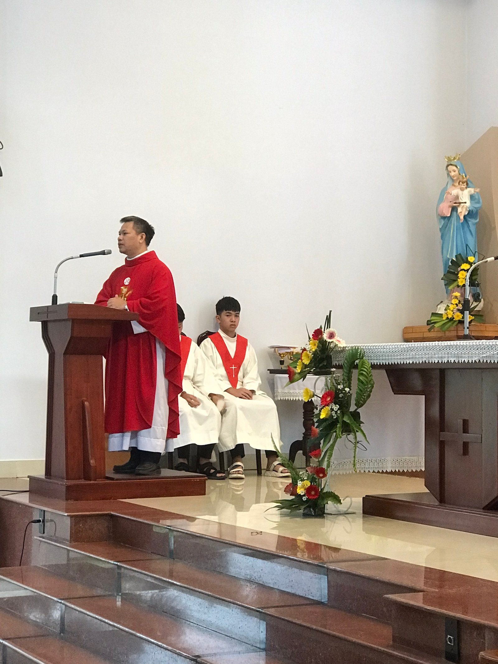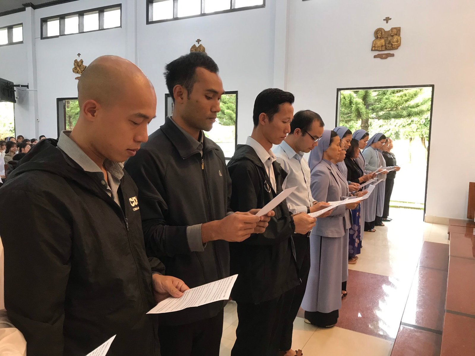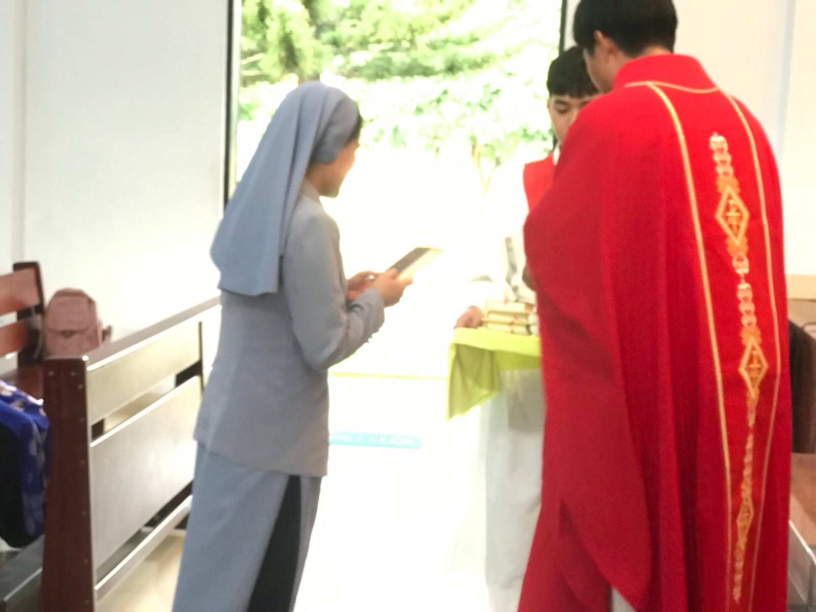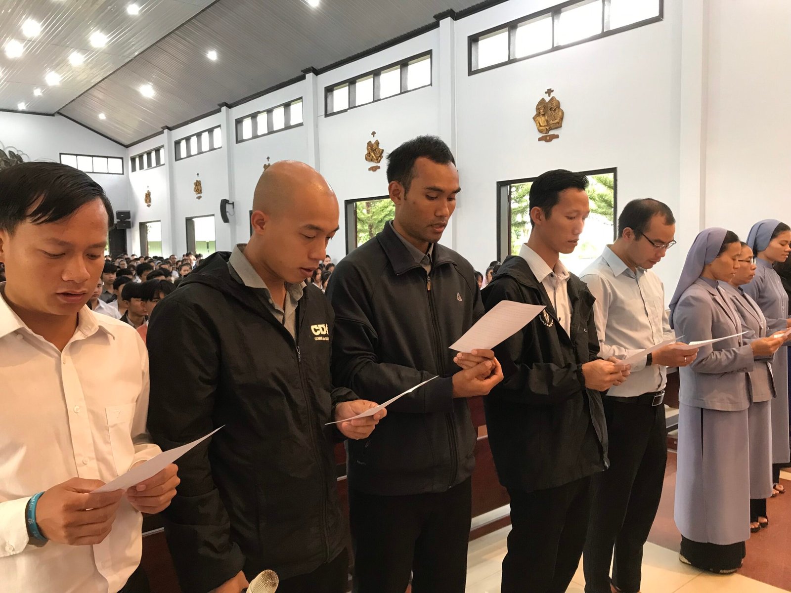 Trong Thánh lễ, quý Sơ, quý Thầy đã tuyên xưng Đức tin trong việc dạy Giáo lý. Nghi thức này nhắc nhở và khơi lên ngọn lửa thôi thúc các ngài trở nên những Giáo lý viên đích thực truyền tải đức tin và tin mừng của Chúa đến cho các em học sinh tại nơi đây.