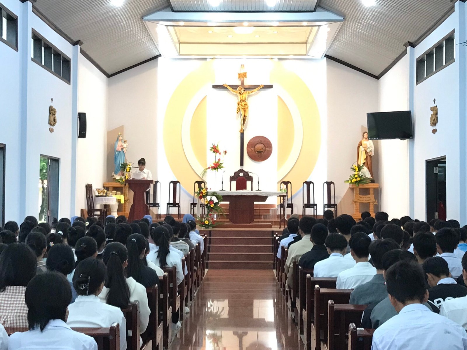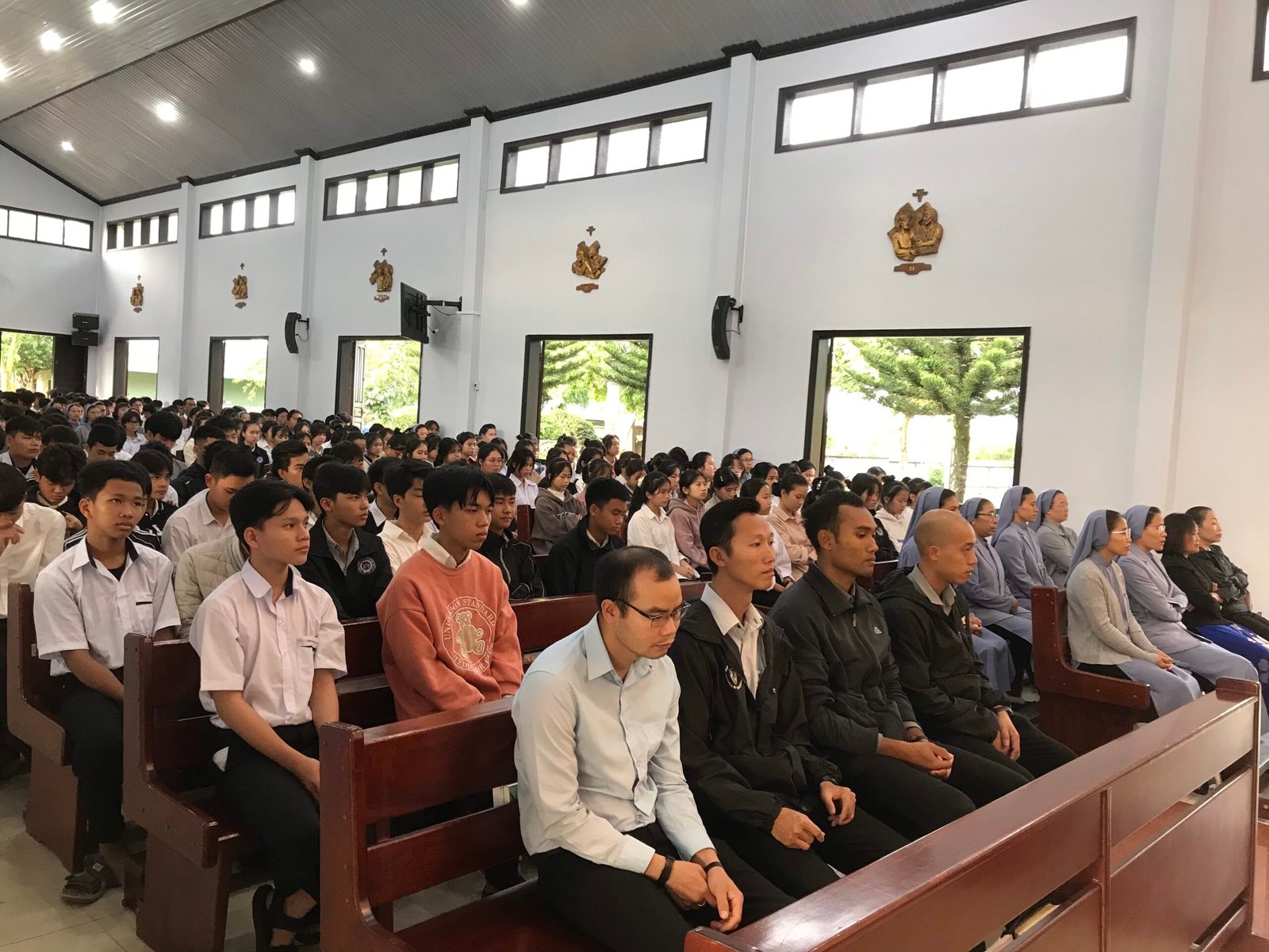 Thánh lễ đồng tế trong ngày khai giảng diễn ra hết sức long trọng và sốt sắng. Chủ tế trong Thánh lễ là cha Giám đốc Martinô Đinh Nghĩa Sỹ. Tham dự Thánh lễ có sự hiện diện của quý Sơ thuộc Hội dòng con Đức Mẹ Phù hộ các Giáo hữu (FMA), quý thầy SDB, quý Cộng tác viên và các bạn học sinh.