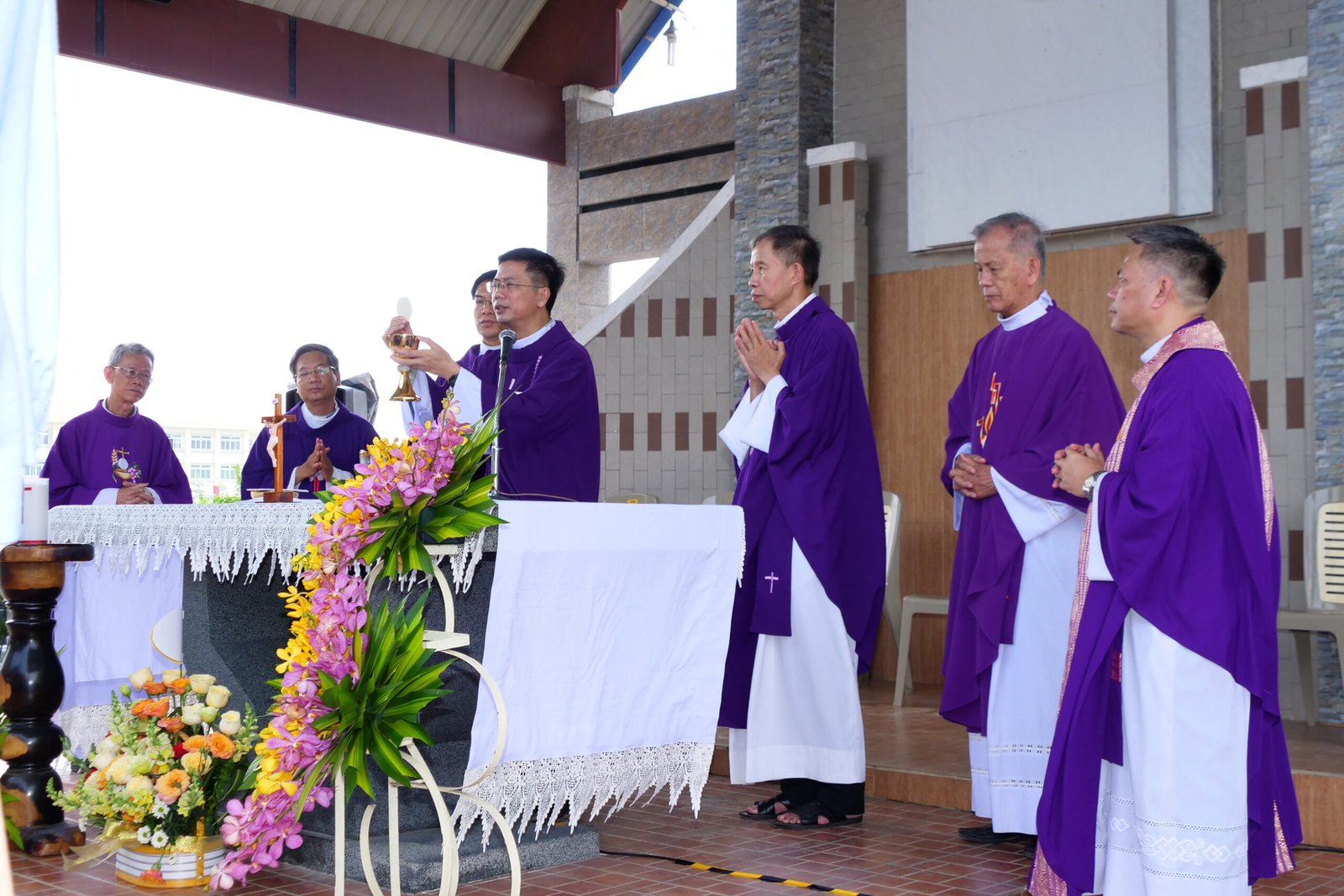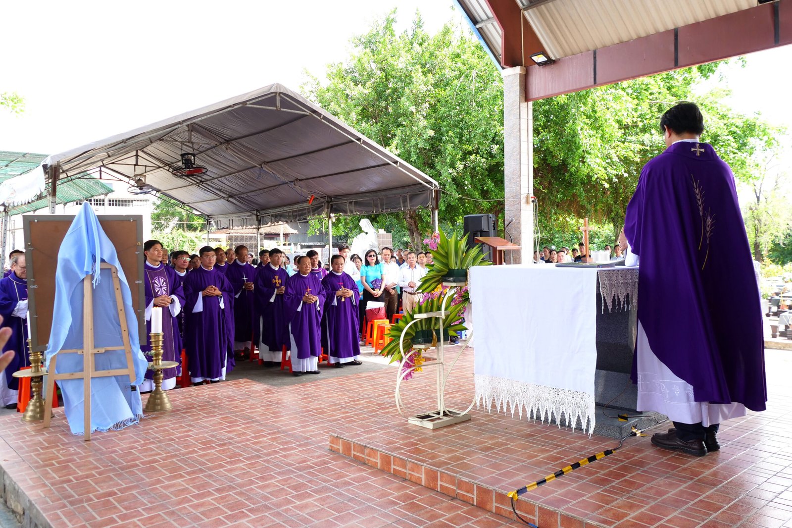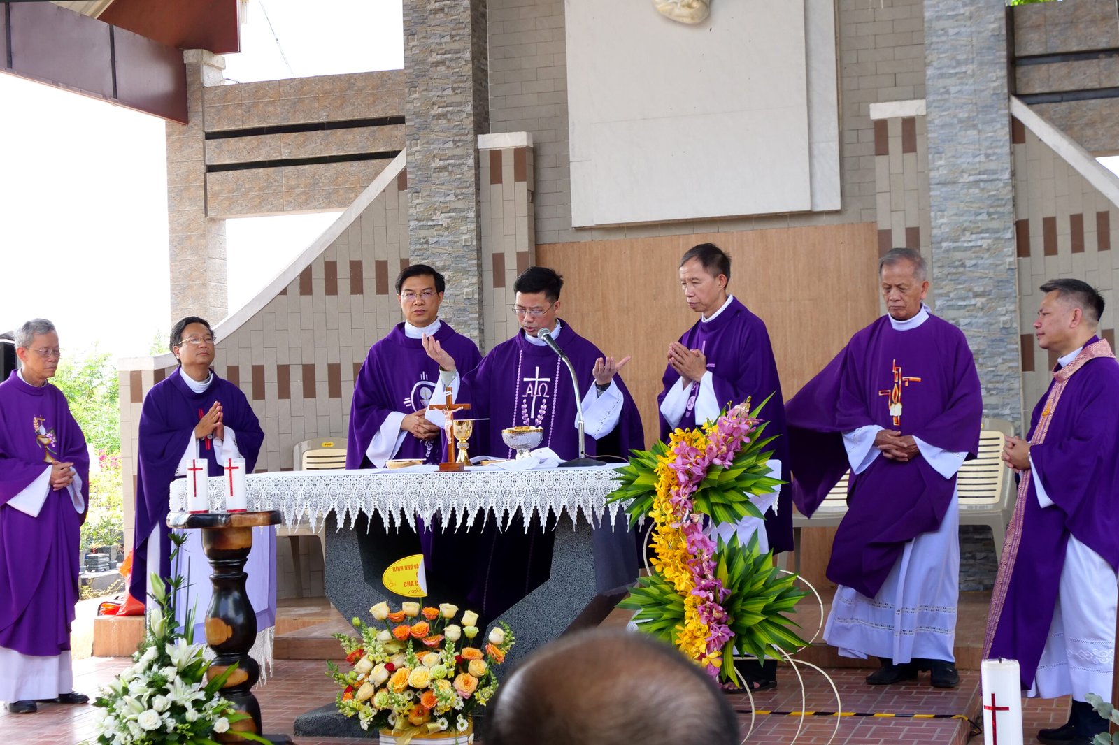 Thánh lễ diễn ra với sự hiện diện của Cha Barnaba Giám tỉnh Tỉnh Dòng Salêdiêng Don Bosco, của Ban Cố Vấn Tỉnh, quý Cha Giám đốc các cộng thể lân cận, quý Cha, quý Sư Huynh và quý Thầy Salêdiêng Don Bosco, quý Tu sỹ nam nữ, các thành phần Gia đình Salêdiêng, quý thân nhân, ân nhân và các bạn hữu của Cha Giuse. Trước giờ lễ Đồng tế, mọi người đã cùng lần chuỗi và cầu nguyện tại Nghĩa Trang Tân Thịnh.