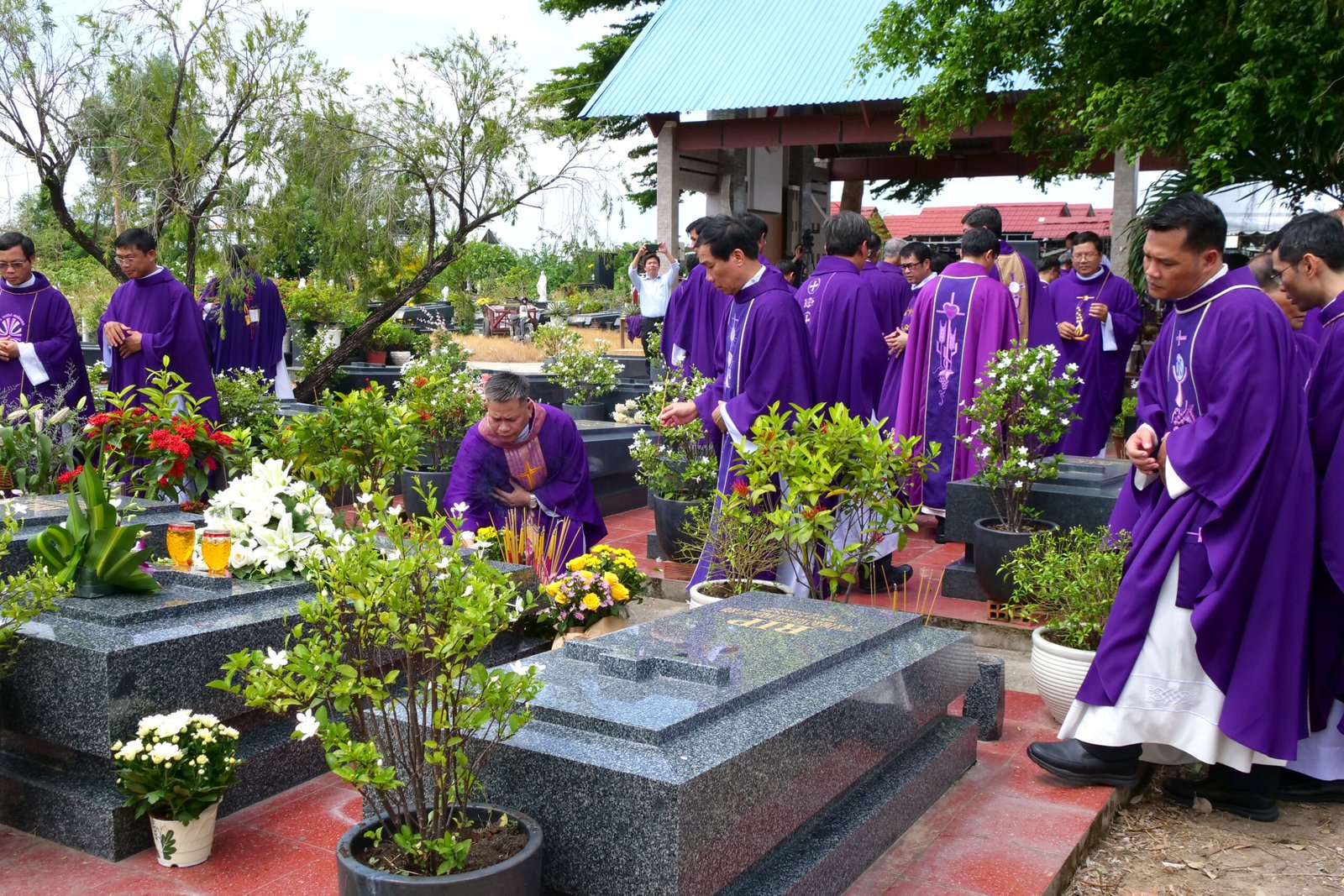 Kết thúc thánh lễ, Quý Cha đồng tế và toàn thể cộng đoàn dân chúa cùng hướng về phần mộ của Cha Phê-rô đọc 3 kính Kính mừng, kinh Tin kính và Kinh sáng Danh, cầu nguyện cho linh hồn cha Phê-rô. Nguyện cho linh hồn cha Phê-rô Phạm Văn Chính được hưởng hạnh phúc vĩnh cửu bên Chúa.