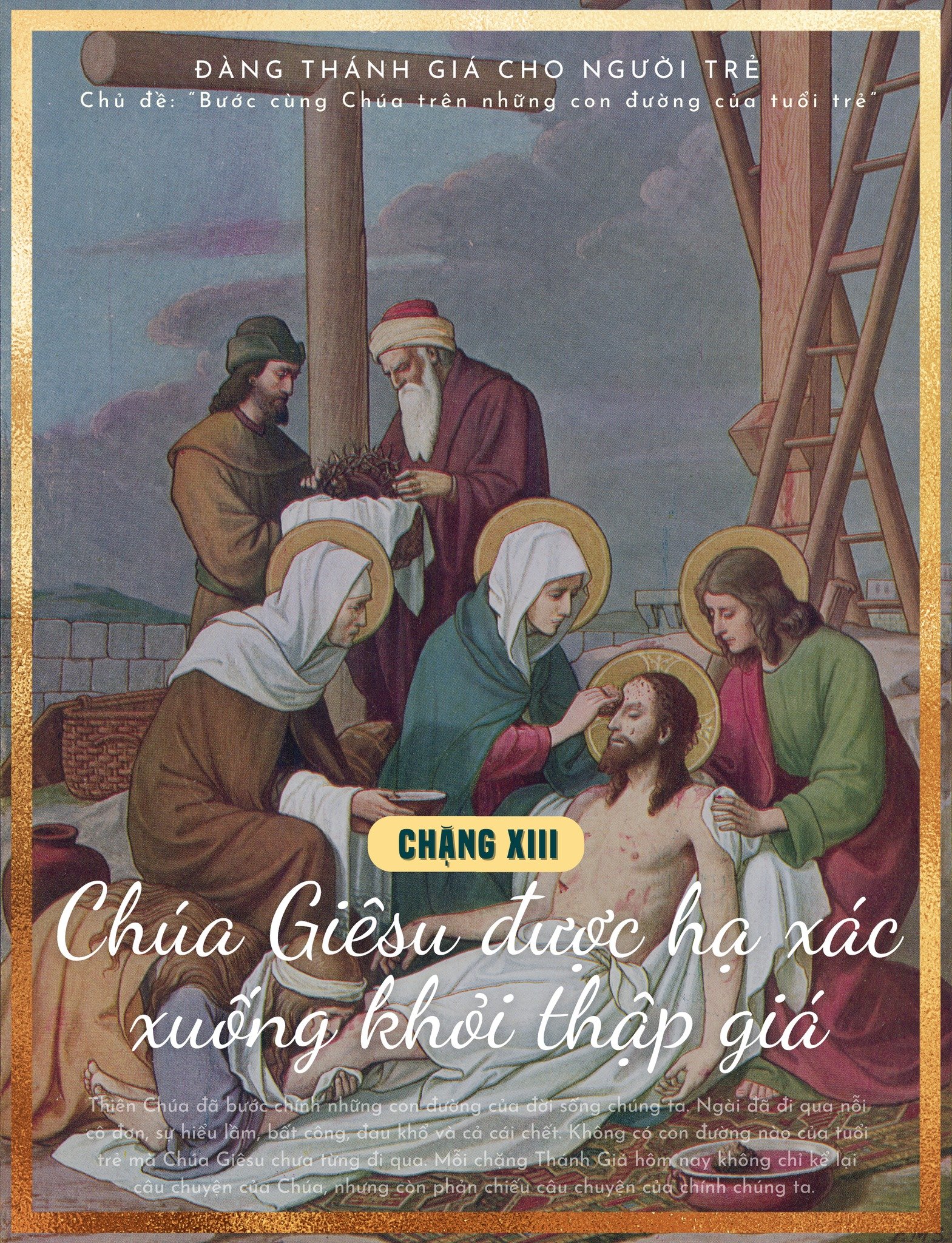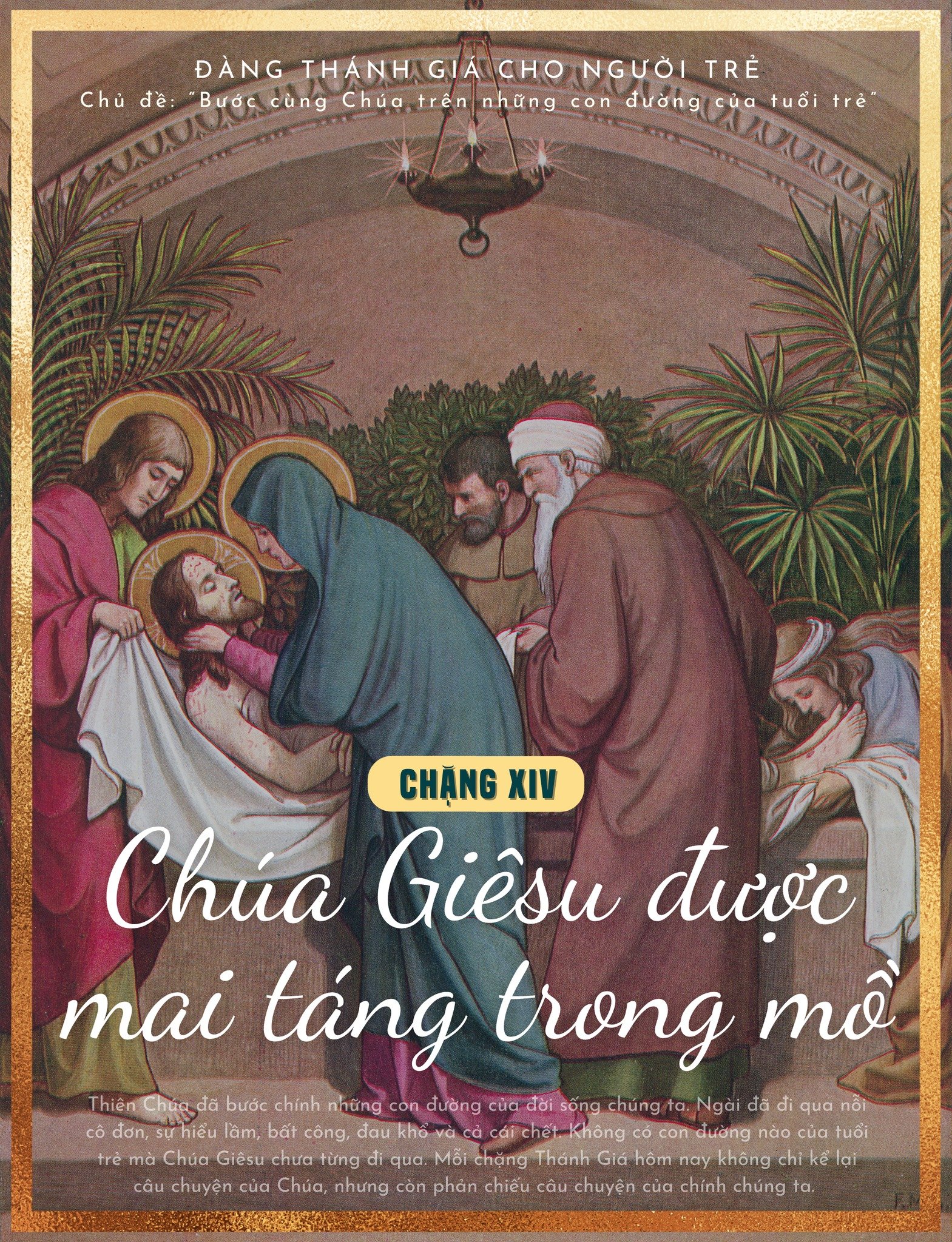 Các bạn trẻ thân mến, Con đường Thánh Giá đã kết thúc trong sự thinh lặng của ngôi mộ. Mọi sự dường như đã chấm hết. Các môn đệ thất vọng. Hy vọng dường như đã tắt. Nhưng chúng ta biết rằng câu chuyện của Thiên Chúa không kết thúc trong ngôi mộ. Bình minh Phục Sinh đang đến. Đó cũng là hy vọng dành cho mỗi người chúng ta. Cuộc đời người trẻ sẽ có những thập giá: những thất bại, những tổn thương, những giấc mơ chưa thành. Nhưng Thánh Giá không phải là dấu chấm hết. Thánh Giá là con đường dẫn tới sự sống mới. Chúa Giêsu không chỉ mời gọi chúng ta chiêm ngắm Thánh Giá của Người. Người mời gọi chúng ta bước theo Người. Bước theo Người trong sự thật, trong tình yêu, trong lòng can đảm, và trong niềm hy vọng. Ước gì khi rời nơi cầu nguyện này, mỗi người trẻ chúng ta mang theo một quyết tâm: Sống một cuộc đời có ý nghĩa. Sống một cuộc đời biết yêu thương. Sống một cuộc đời không sợ hy sinh. Và trên mọi con đường của tuổi trẻ, chúng ta luôn nhớ rằng: Chúa Giêsu đang bước đi cùng chúng ta. Amen.