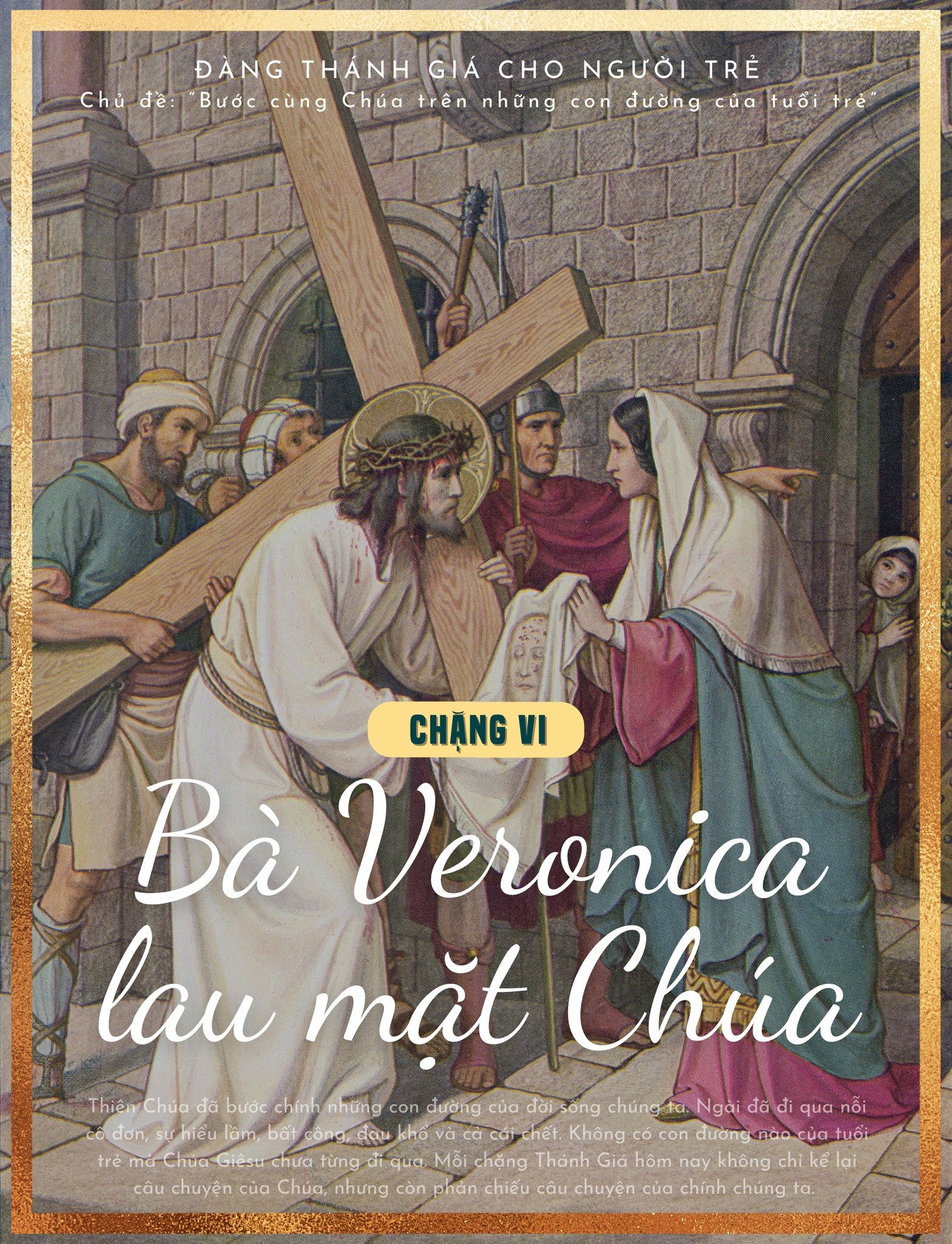 Suy niệm cho người trẻ: Giữa đám đông ồn ào và hỗn loạn, Veronica đã bước ra. Bà không có sức mạnh để thay đổi bản án, nhưng bà có một trái tim biết cảm thương. Bà lấy khăn lau mặt Chúa. Trong thế giới hôm nay, nhiều người đau khổ nhưng ít người dừng lại. Người trẻ dễ bị cuốn vào nhịp sống vội vã: học tập, công việc, mạng xã hội, những dự định riêng. Nhưng Tin Mừng nhắc chúng ta rằng: một cử chỉ nhỏ của lòng tốt có thể trở thành ánh sáng trong cuộc đời của ai đó. Đôi khi chỉ cần một lời hỏi thăm, một sự lắng nghe, một hành động tử tế… cũng đủ làm dịu đi nỗi đau của một người.