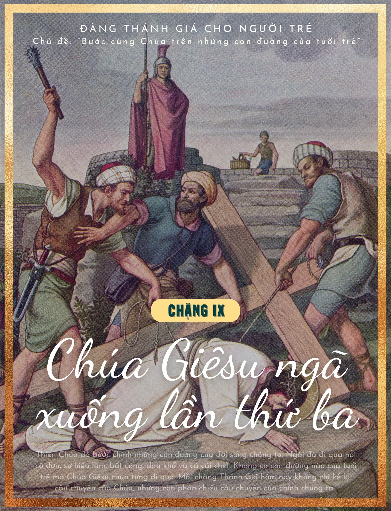 Suy niệm cho người trẻ: Chúa Giêsu ngã xuống lần thứ ba. Đó là lúc thân xác gần như không còn sức lực. Nhưng Người vẫn đứng dậy. Cuộc đời người trẻ cũng có những lúc như vậy: những thất bại liên tiếp, những giấc mơ chưa thành, những lúc cảm thấy mình lạc lối. Nhưng hy vọng Kitô giáo không dựa trên sức mạnh của con người. Hy vọng của chúng ta dựa trên tình yêu của Thiên Chúa. Dù ngã bao nhiêu lần, chúng ta vẫn có thể đứng dậy.