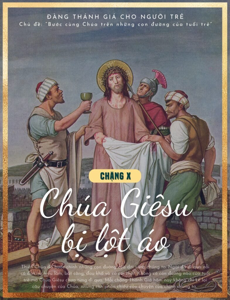 Suy niệm cho người trẻ: Chúa Giêsu bị tước bỏ mọi sự. Người đứng trước đám đông trong sự nghèo khó hoàn toàn. Trong thế giới hôm nay, nhiều người tìm giá trị của mình nơi hình ảnh, danh tiếng và thành công. Nhưng Tin Mừng nhắc chúng ta rằng: giá trị thật của con người không nằm ở những gì họ có, mà ở tình yêu họ trao ban. Chúa Giêsu mất tất cả, nhưng Người vẫn giữ một điều: một trái tim tràn đầy tình yêu.
