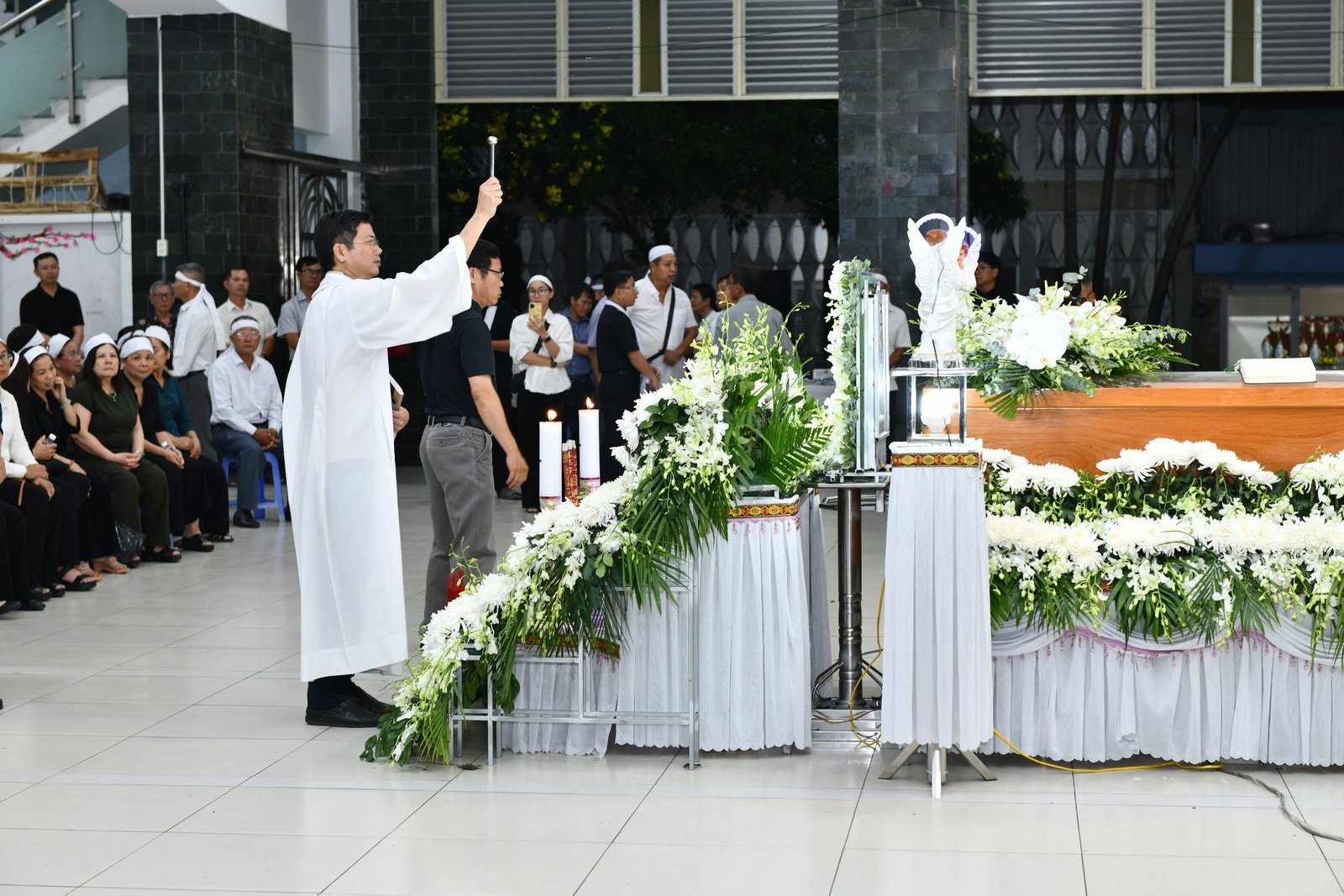 Cha Giám tỉnh Barnaba, quý Cha trong Ban cố vấn tỉnh, quý Cha cùng quý Thầy Thần học tại Cộng thể Thần học Philip Rinaldi và anh chị em giáo dân Giáo xứ Xuân Hiệp đã đón cha Giuse và cử hành nghi thức cầu nguyện cho cha ngài tại hội trường Giáo xứ.