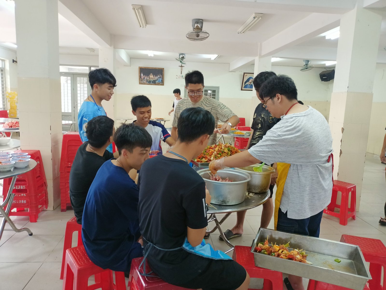 Sau đó, các em còn cộng tác với Quý Cha, Quý Thầy, để chuẩn bị bữa tiệc mừng lễ thật chu đáo và giàu tình gia đình. Xin Chúa Phục Sinh ban muôn ơn lành xuống các em qua bàn tay giáo dục của Quý Cha, Quý Thầy đang phục vụ nơi đây.