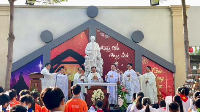 Ngày 01/01/2026, hòa chung niềm vui cùng toàn thể Giáo hội mừng kính lễ Đức Maria – Mẹ Thiên Chúa và mầu nhiệm Ngôi Hai Nhập Thể, Cộng thể Don Bosco Cần Giờ đã tổ chức Hội chợ Xuân dành cho thanh thiếu nhi. Ngày hội quy tụ khoảng 600 em đến từ các giáo xứ thuộc khu vực Nhà Bè và Cần Giờ. Đặc biệt, sự góp mặt của học sinh hai trường Tiểu học và THCS Tam Thôn Hiệp đã minh chứng cho tinh thần mở lòng của người Sa-lê-diêng: không phân biệt tôn giáo, đưa ngày hội trở thành nhịp cầu kết nối cộng đồng và giáo dục người trẻ tại vùng biển đảo xa xôi.