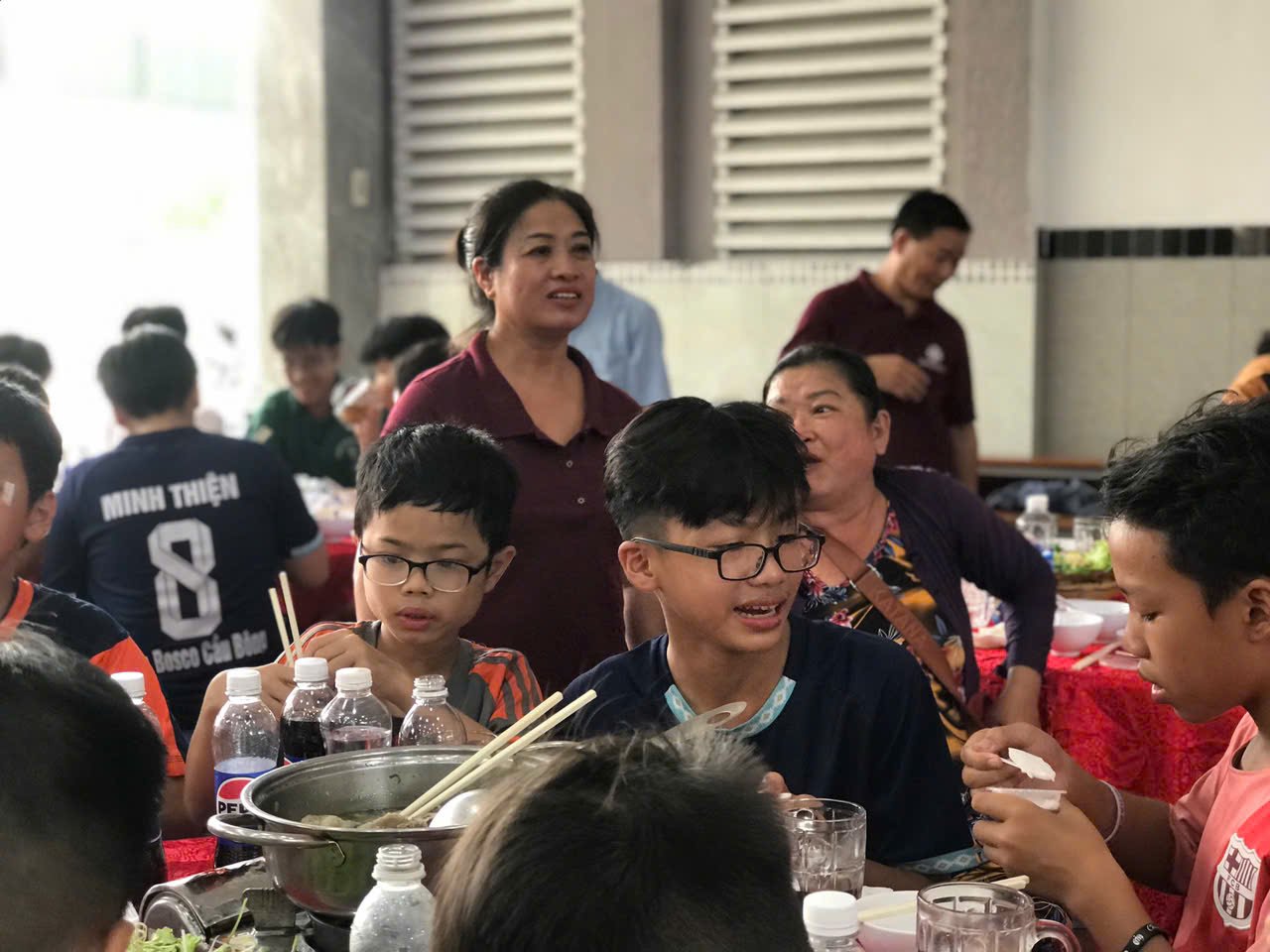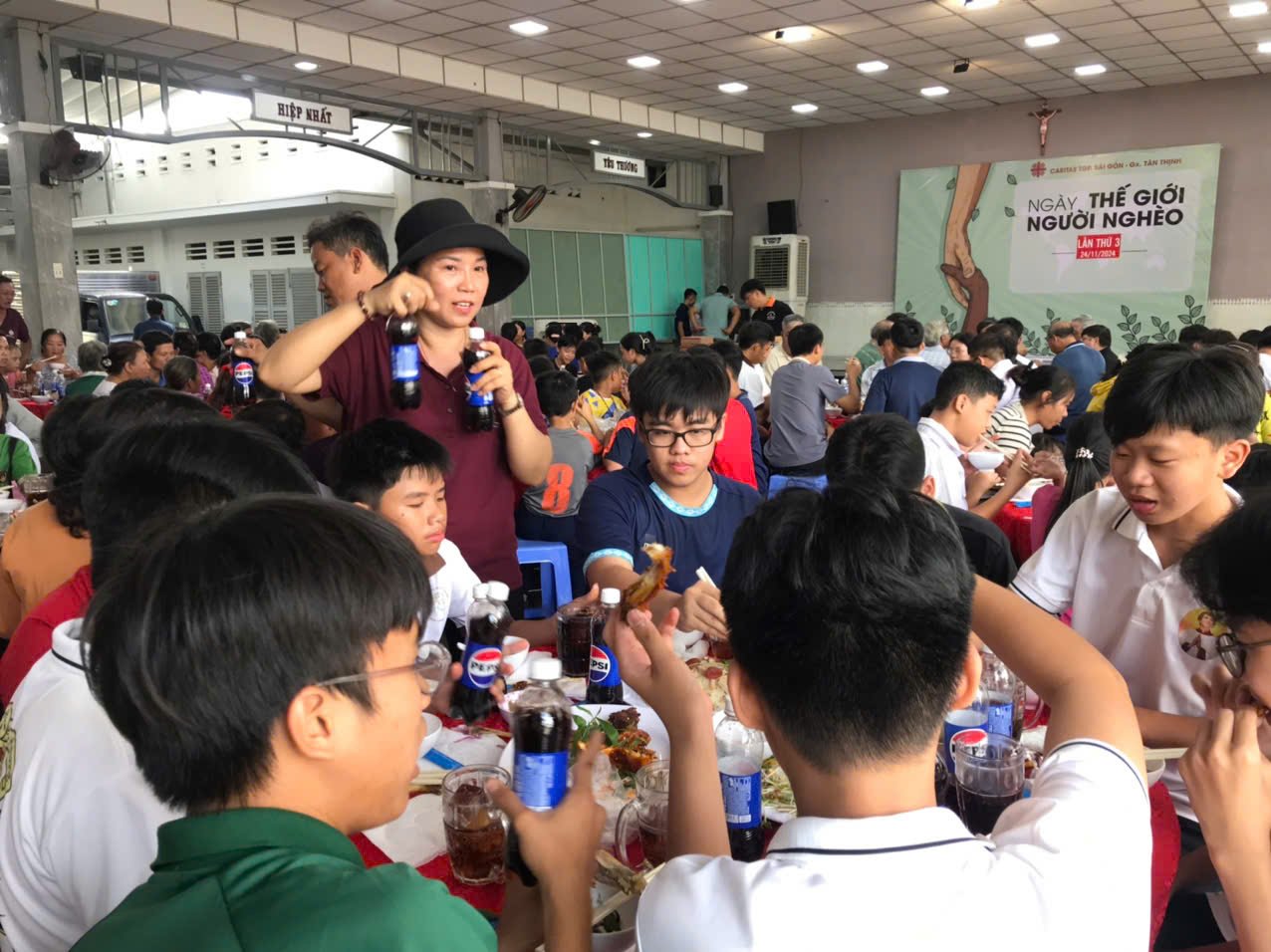 Bữa cơm được phục vụ tận tình bởi các cha, thầy, HĐMV, và các cộng tác viên. Sự kiện có sự hiện diện của nhiều gia đình khó khăn, người già neo đơn và các em học sinh lớp phổ cập. Cha Giám đốc Giuse Đoàn Hải Đăng đã gửi lời chào và chia sẻ về tình yêu thương, sự quan tâm lẫn nhau, nhấn mạnh rằng mỗi người đều có trách nhiệm giúp đỡ những người khó khăn hơn mình.