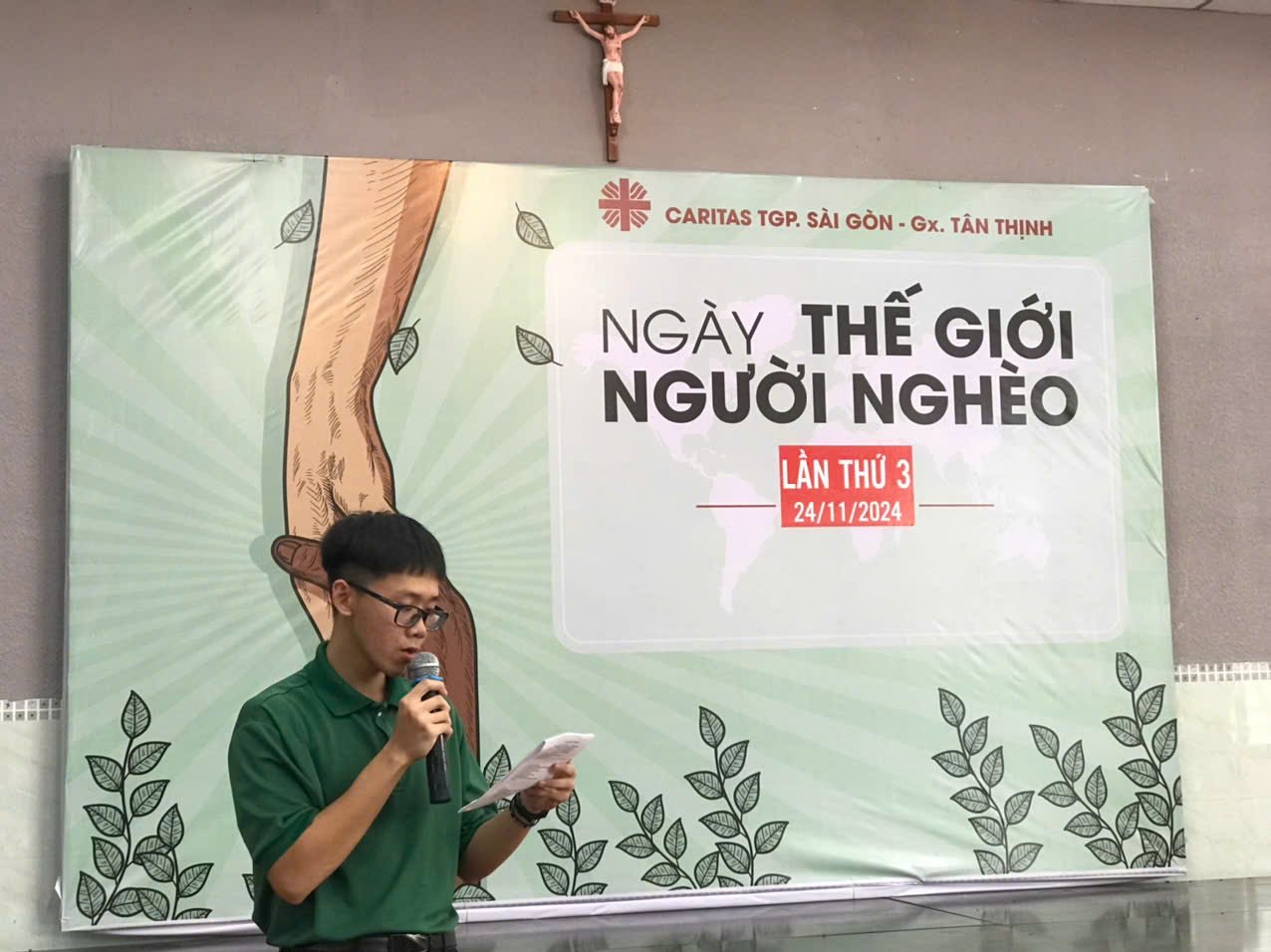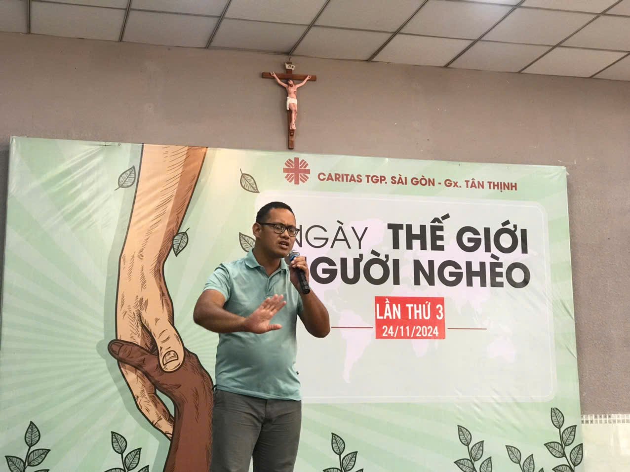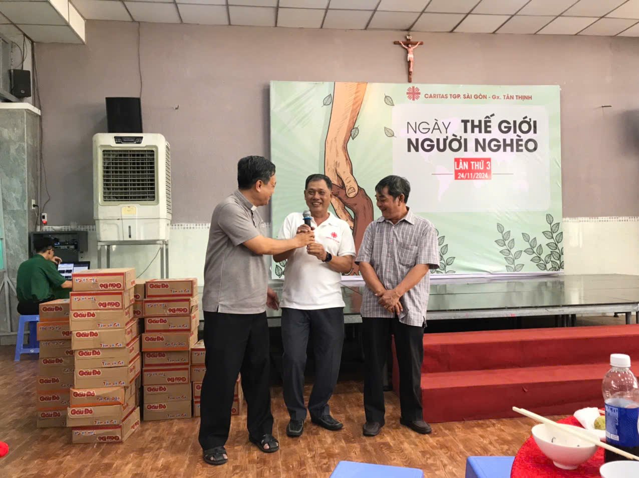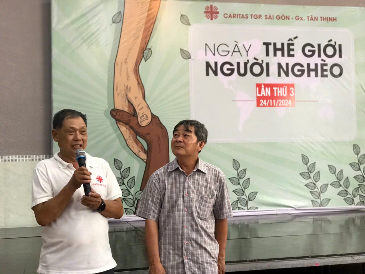 Ngày 24 tháng 11 năm 2024, Giáo xứ Tân Thịnh đã tổ chức bữa cơm cho người nghèo tại Hội trường Giáo xứ, hưởng ứng Sứ điệp của Đức Thánh Cha nhân Ngày Thế giới Người nghèo lần thứ VIII. Sự kiện diễn ra vào lúc 11h30, với sự tham gia của Ban Caritas và nhiều tình nguyện viên.