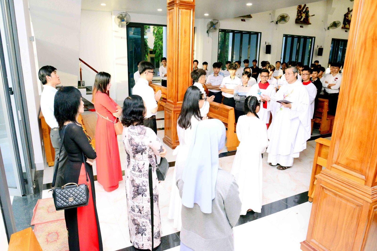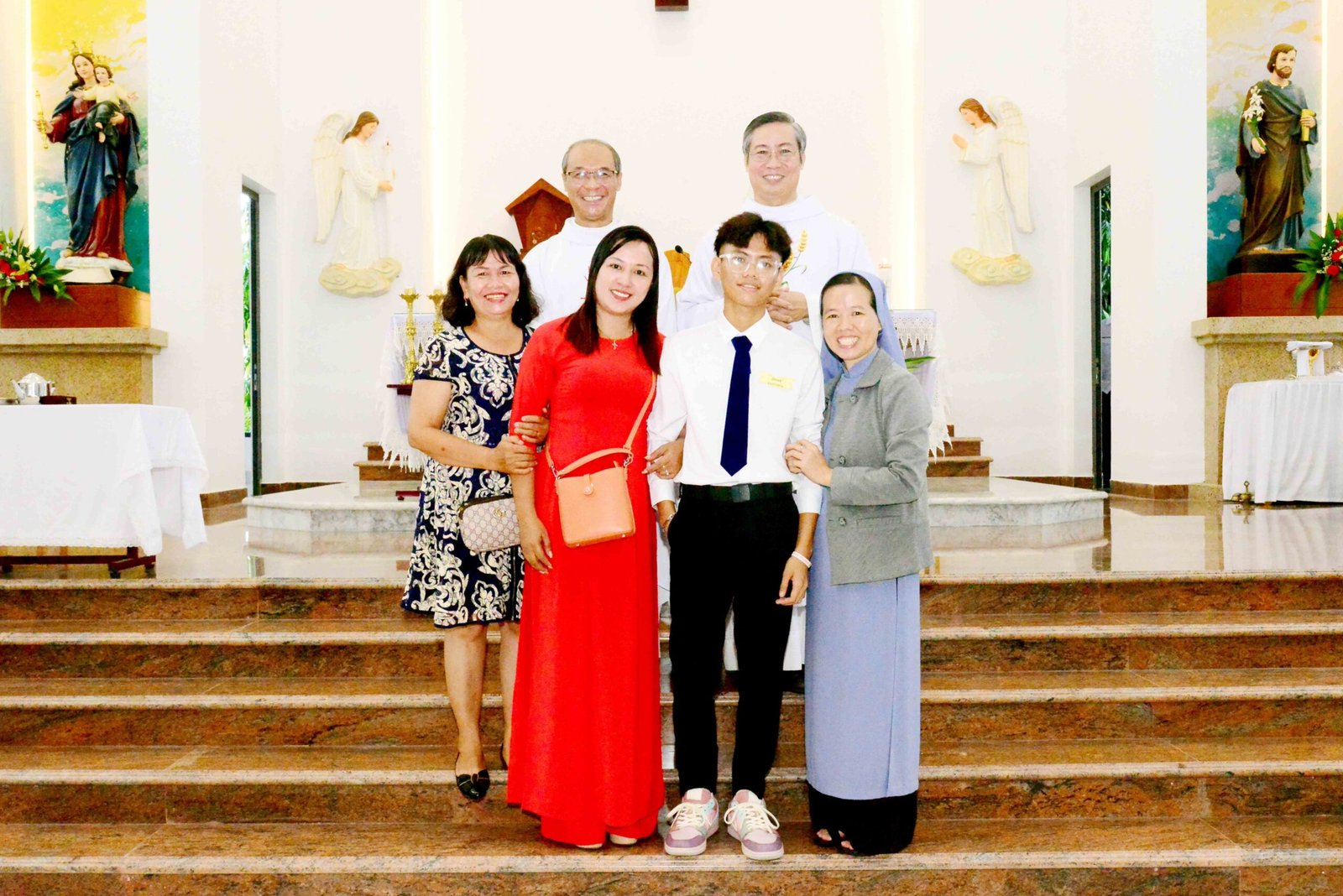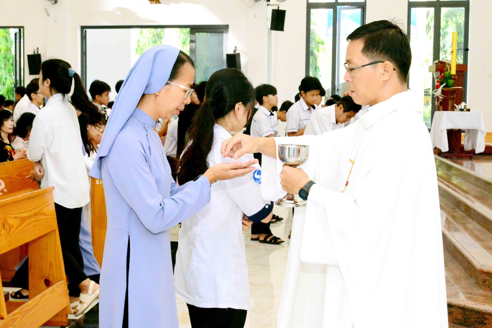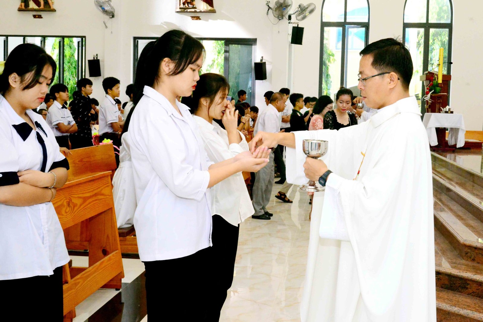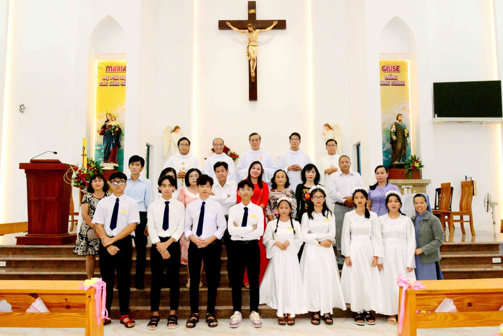 Thánh lễ kết thúc trong bầu khí trang nghiêm và sốt sắng, hòa cùng niềm xác tín và vui tươi của các bạn được đón Chúa lần đầu. Sau thánh lễ, mọi người cùng chia sẻ niềm vui và hân hoan trong việc ghi lại những bức hình lưu niệm và cùng nhau chia sẻ bữa sáng đầm ấm yêu thương.