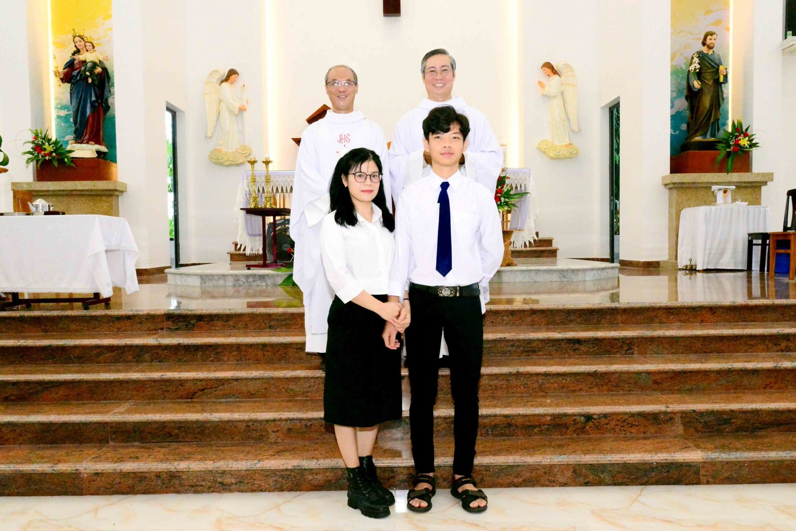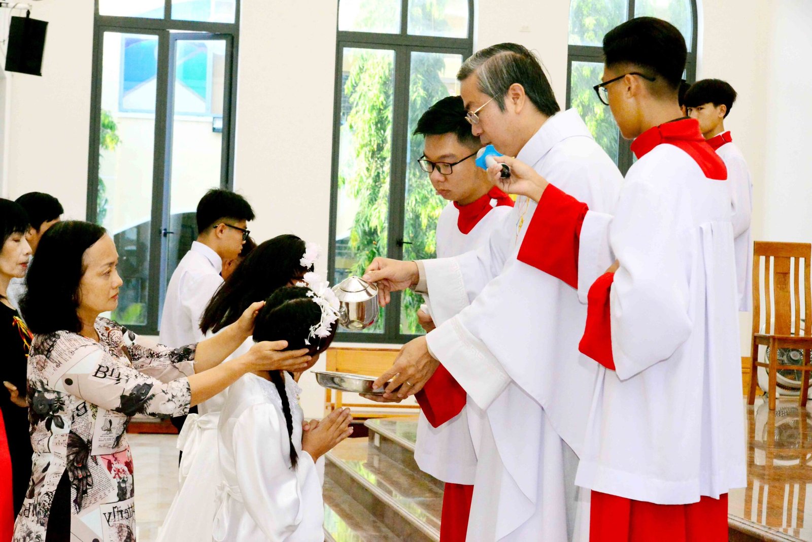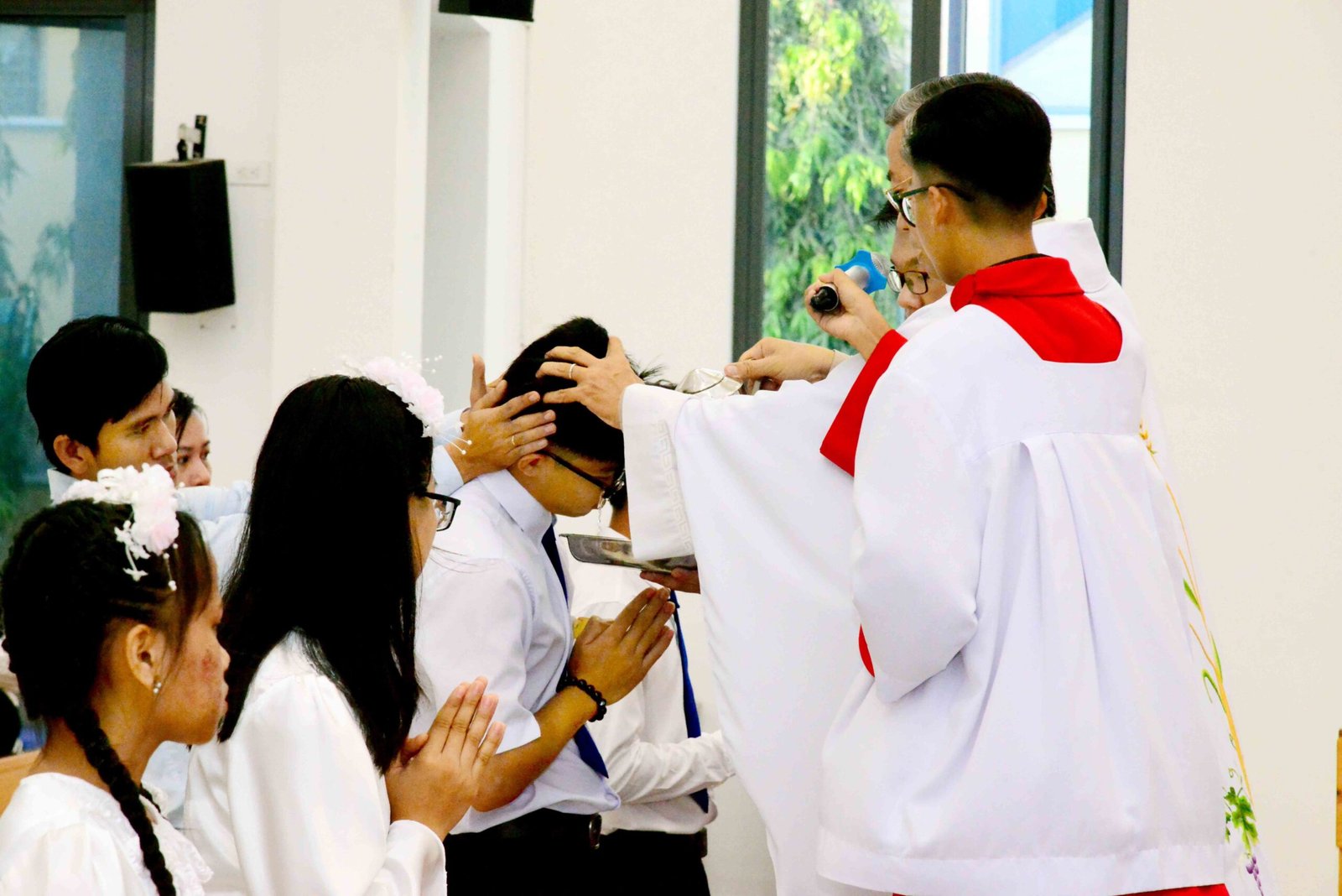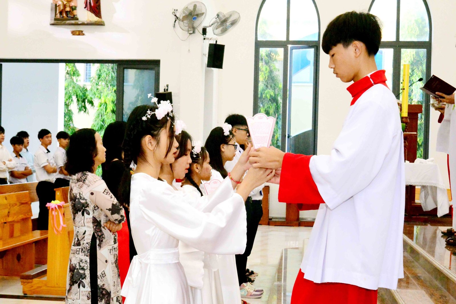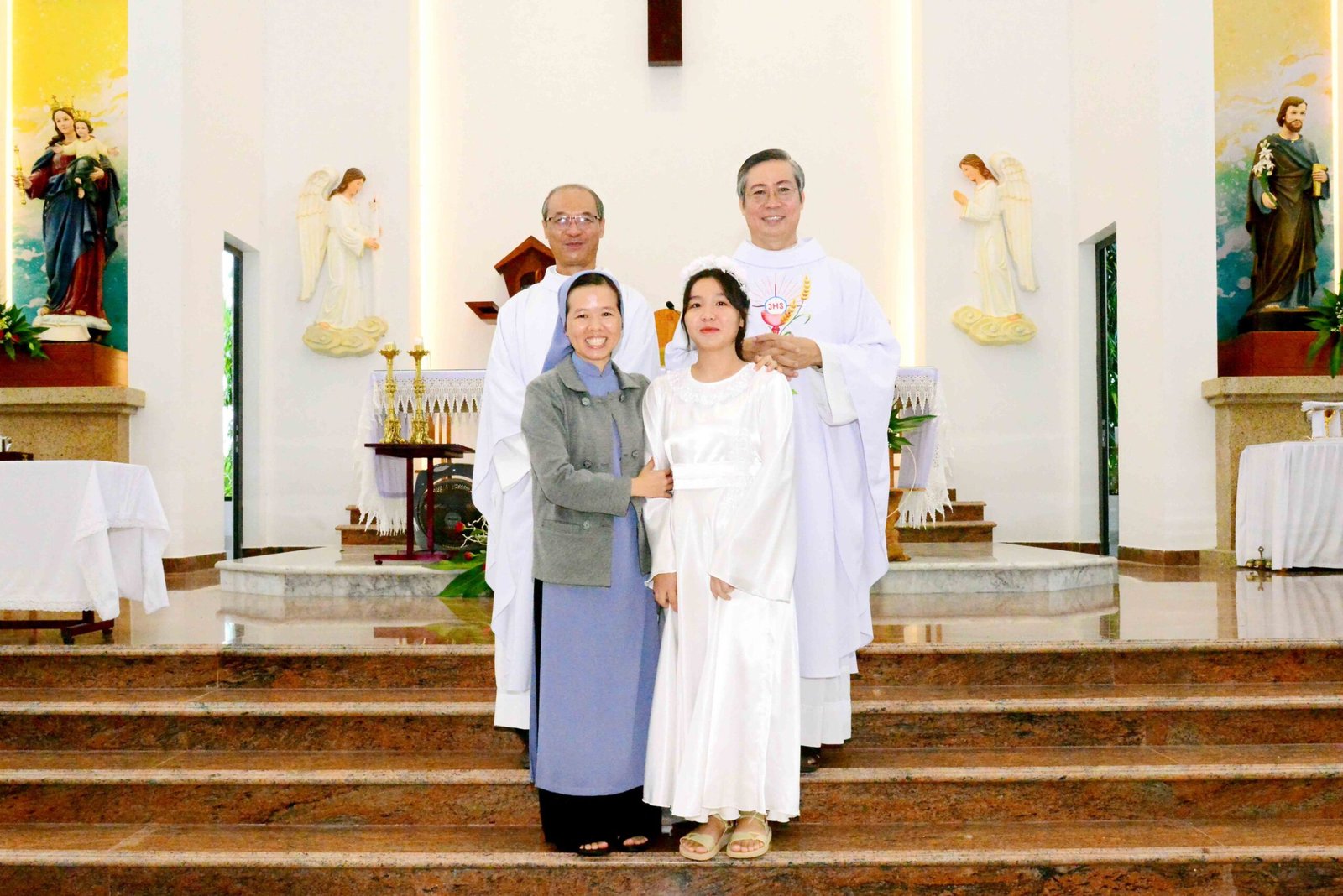 Thánh lễ kết thúc trong bầu khí trang nghiêm và sốt sắng, hòa cùng niềm xác tín và vui tươi của các bạn được đón Chúa lần đầu. Sau thánh lễ, mọi người cùng chia sẻ niềm vui và hân hoan trong việc ghi lại những bức hình lưu niệm và cùng nhau chia sẻ bữa sáng đầm ấm yêu thương.