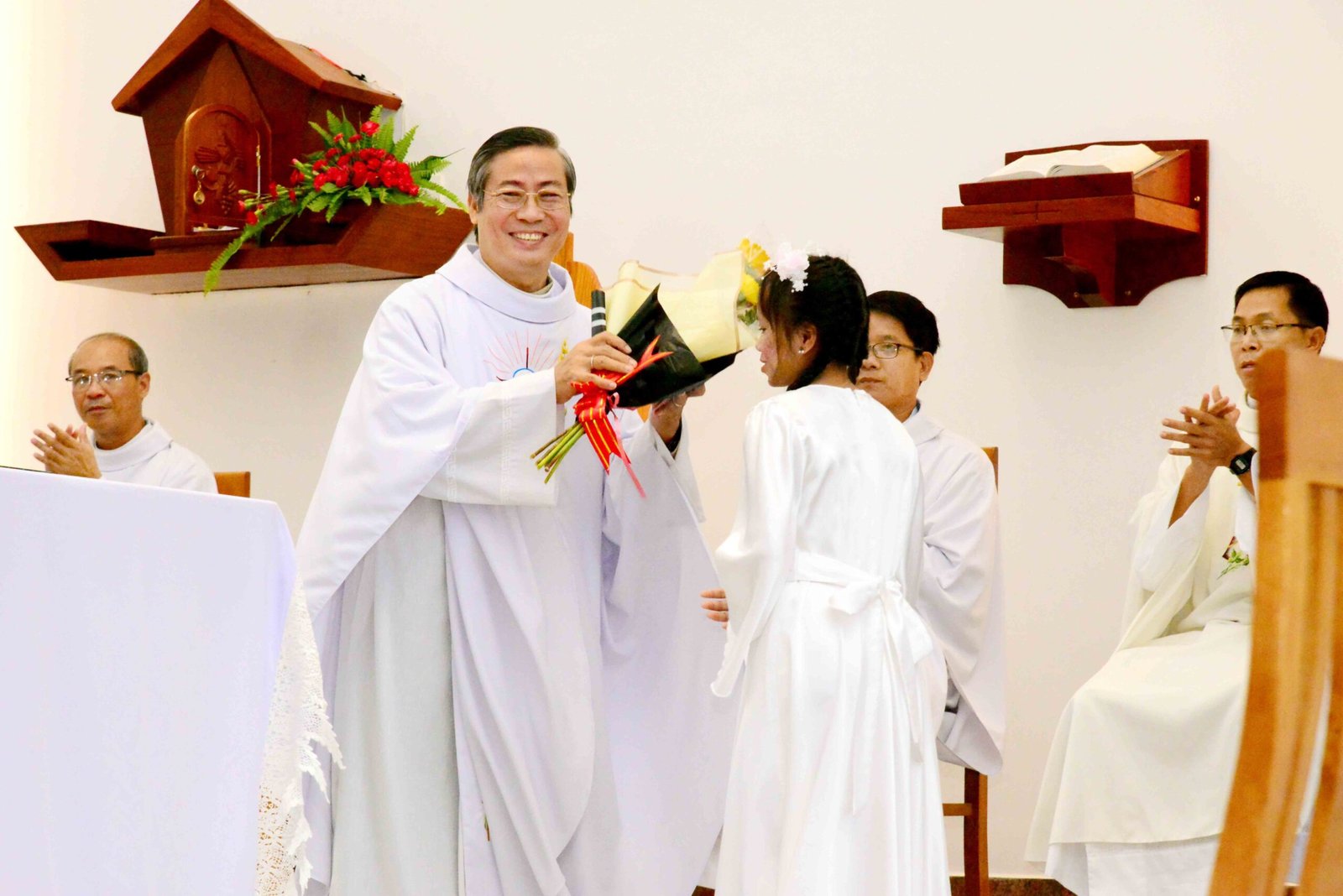 Thánh lễ có sự hiện diện của cha Giám đốc Phaolô Nguyễn Minh Tuấn cùng quý cha thuộc cộng thể. Phần nghi thức chính do cha Phaolô Danh, cha chánh xứ Giáo xứ Mỹ Thuận cử hành.