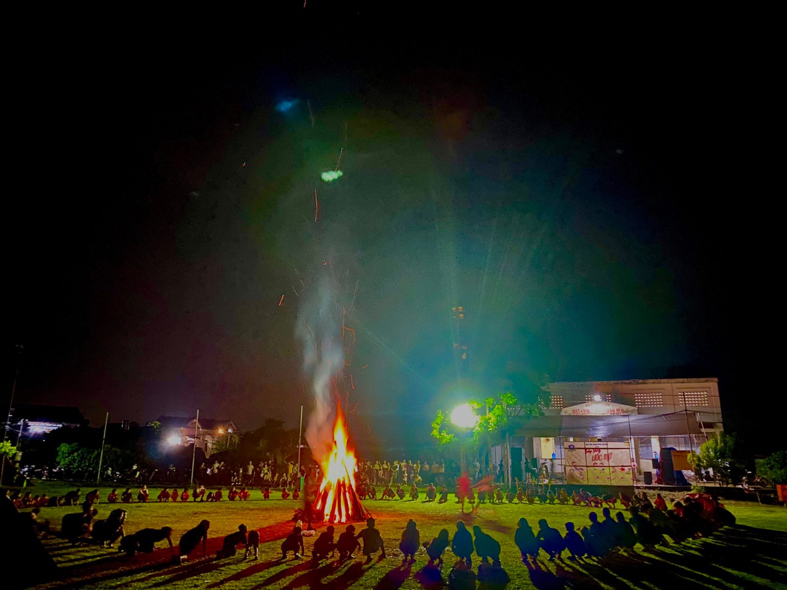 Sau phần khai mạc, các trại viên được tham gia vào các phần thi đua vận động và thi nấu cơm niêu. Buổi tối, dưới ánh lửa thiêng, các trại sinh đã cùng nhau tham gia vào vũ khúc và trò chơi vòng tròn, tạo nên không gian tràn đầy niềm vui và linh thiêng.