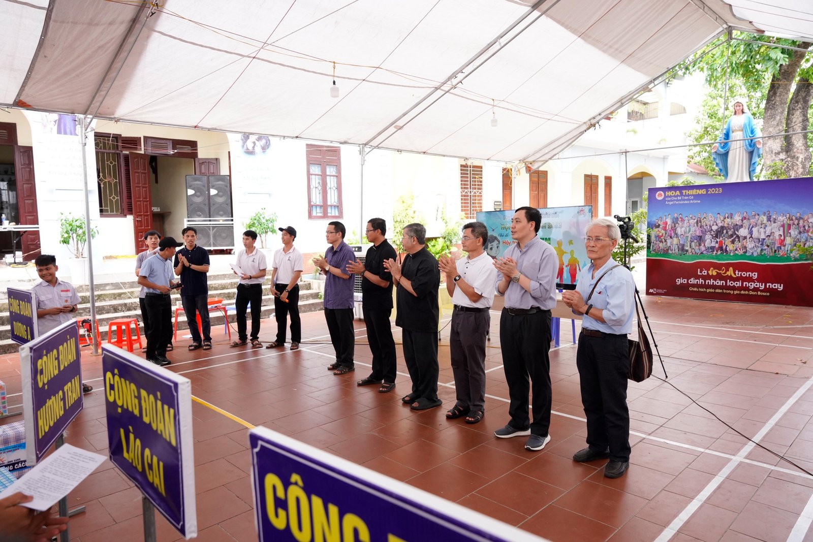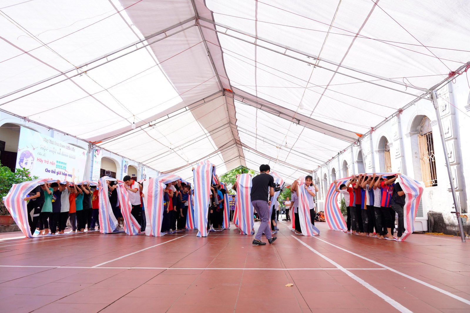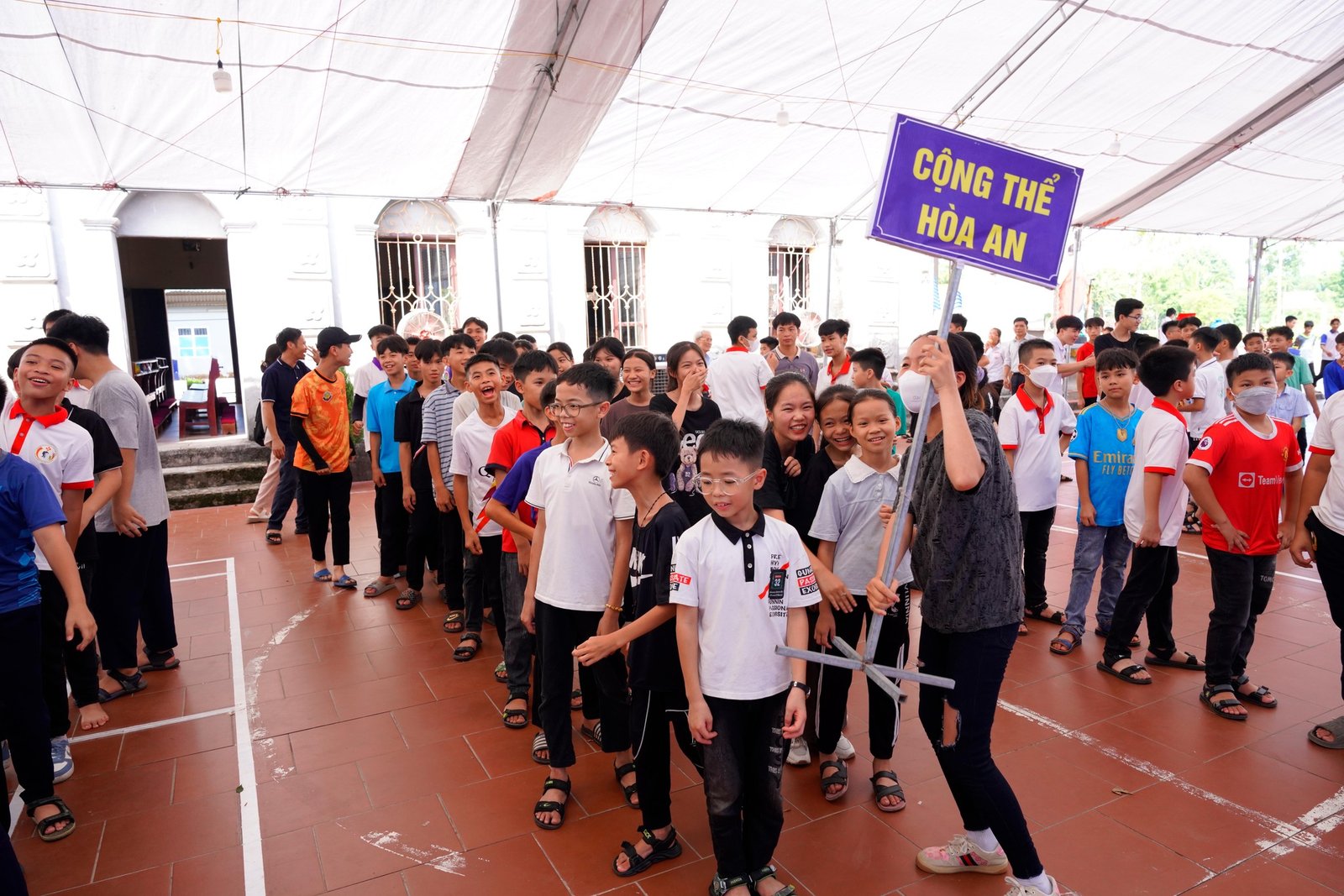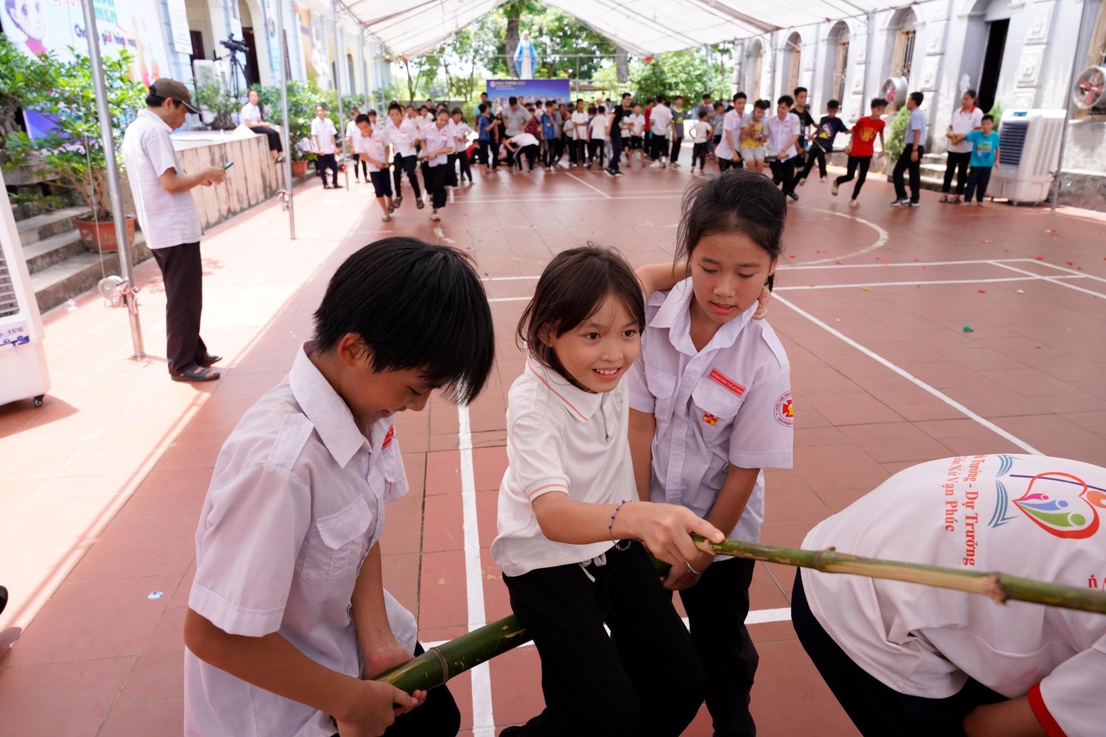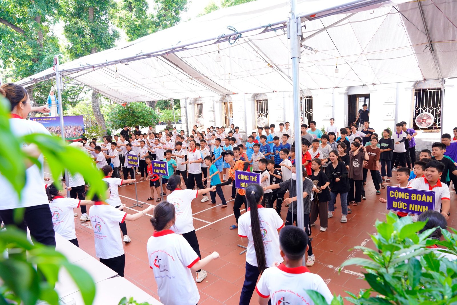 Đúng 9g15, phần thi đua vận động được diễn ra với nhiều trò chơi vui nhộn và hào hứng, mang nhiều bài học ý nghĩa về tinh thần dấn bước, đồng đội. Giữa các nội dung thi đua là các tiết mục sinh động của các bạn Huynh trưởng, Giáo lý viên và các em lễ sinh.