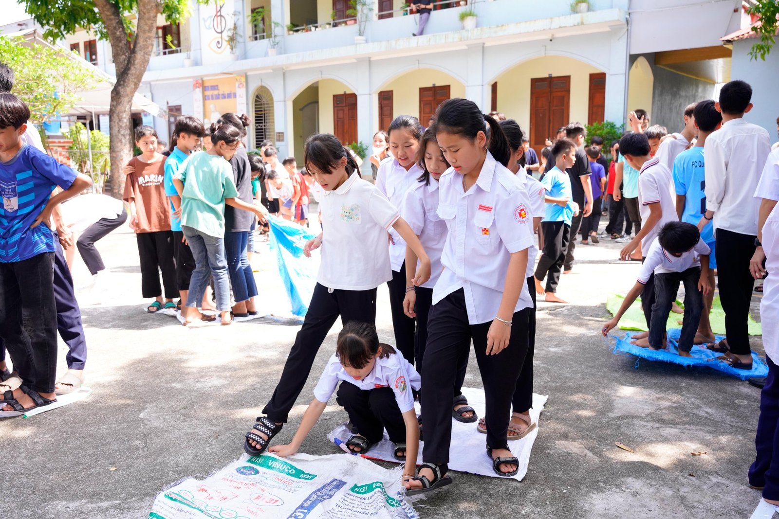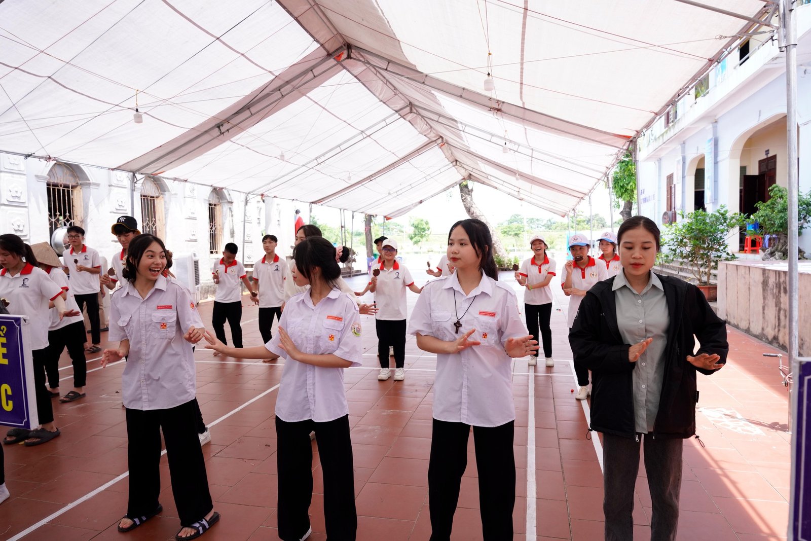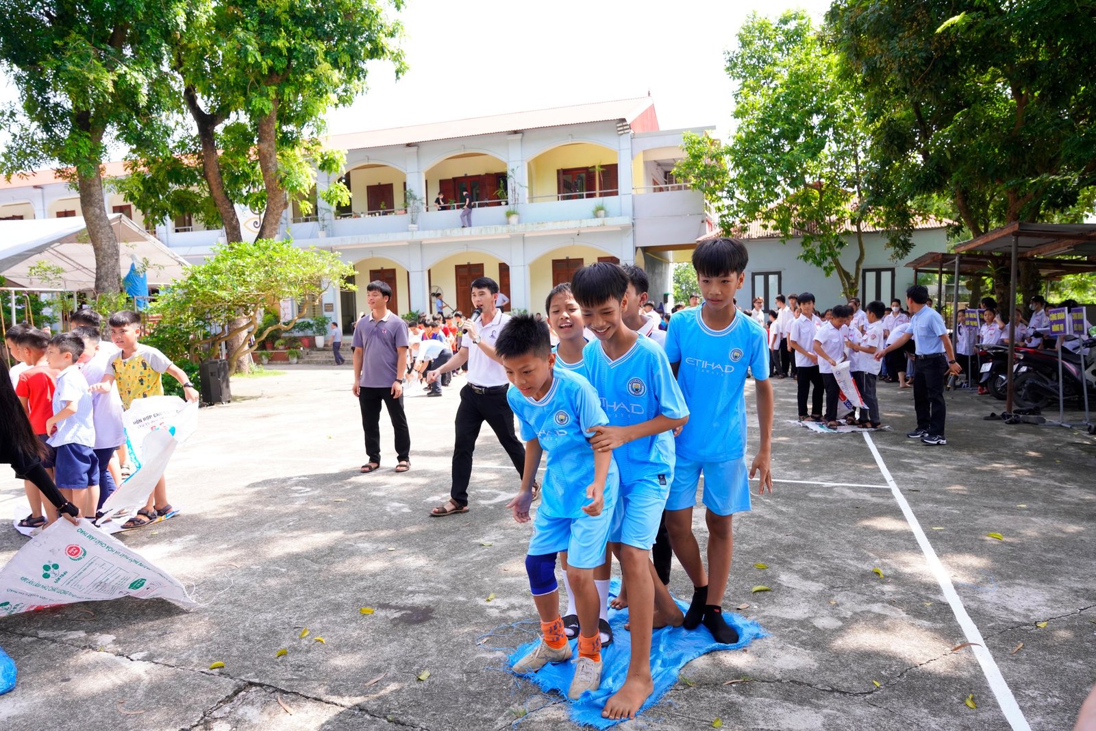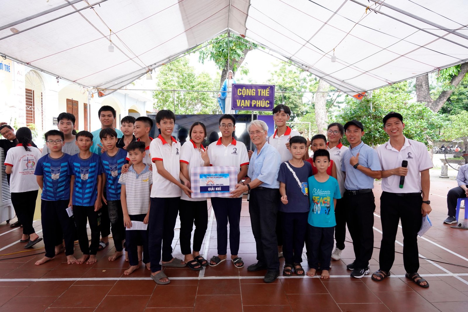 Đúng 9g15, phần thi đua vận động được diễn ra với nhiều trò chơi vui nhộn và hào hứng, mang nhiều bài học ý nghĩa về tinh thần dấn bước, đồng đội. Giữa các nội dung thi đua là các tiết mục sinh động của các bạn Huynh trưởng, Giáo lý viên và các em lễ sinh.