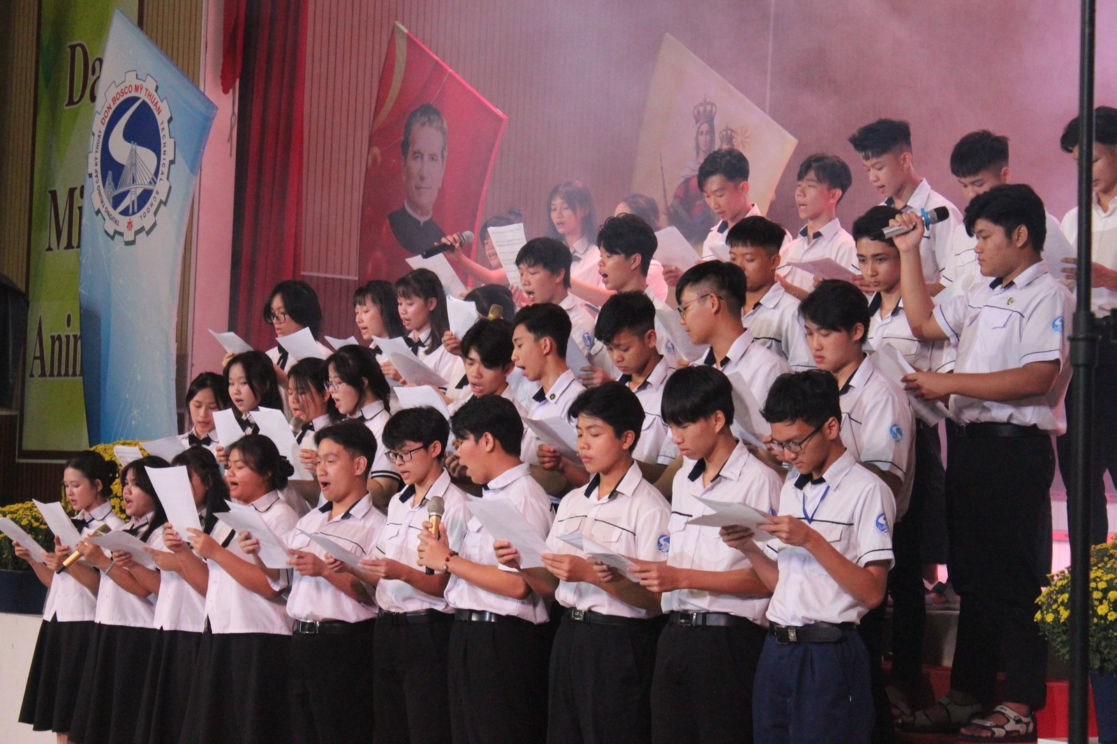 Ngày lễ khép lại bằng bữa tiệc gia đình ấm cúng. Hình ảnh Don Bosco hiện lên không phải là một vị thánh của quá khứ, mà là ngọn lửa đang cháy trong từng ánh mắt, nụ cười của các em học sinh Mỹ Thuận.