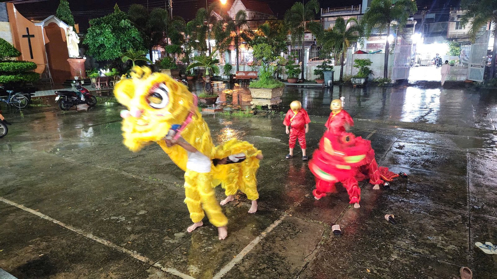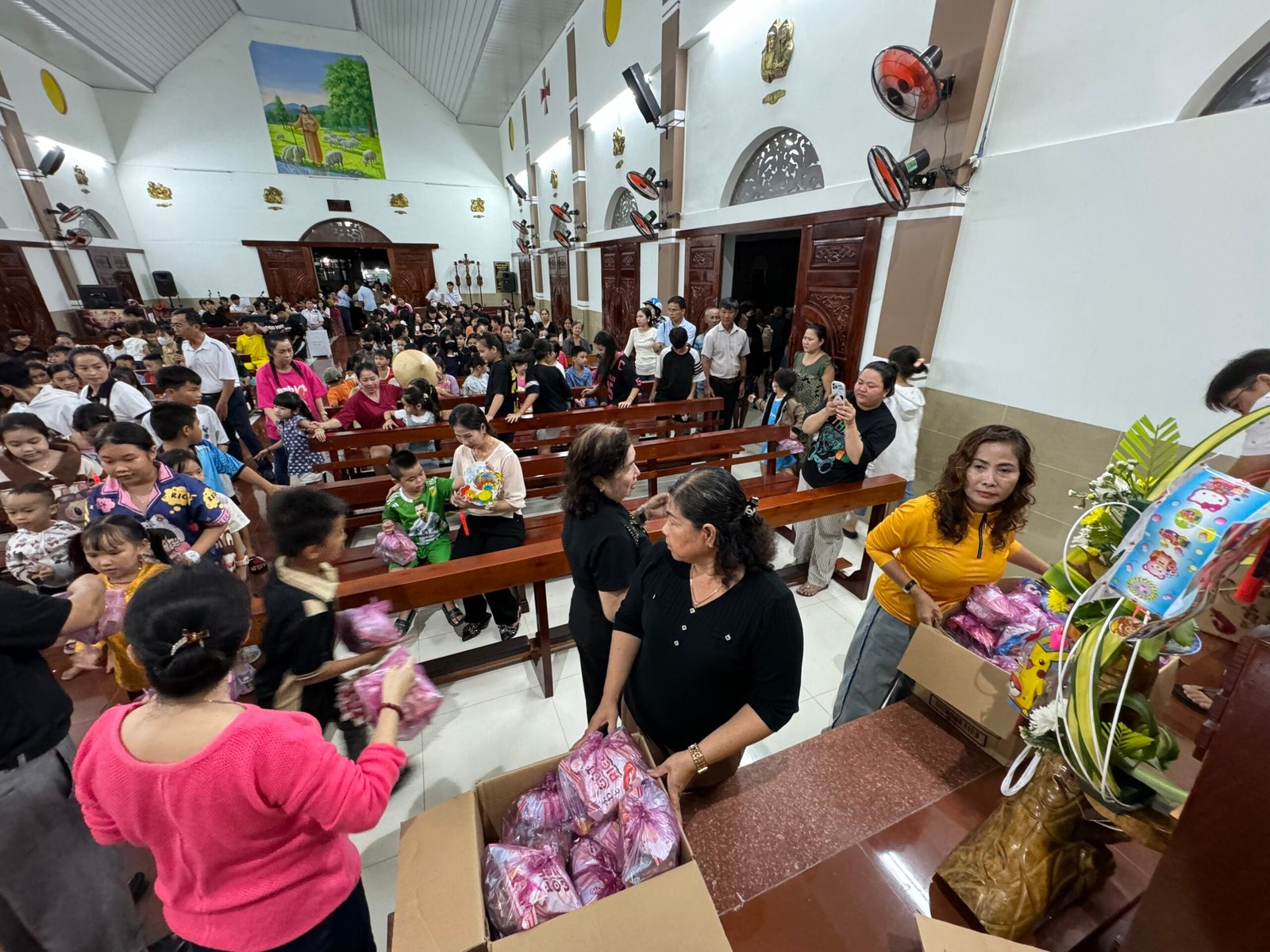 Sau Thánh Lễ, đội lân của Giáo xứ đã trình diễn một tiết mục đơn giản nhưng đầy sôi động và ấn tượng, dù ngoài trời đang mưa nhẹ. Ngay khi tiết mục múa lân kết thúc, các em được hướng dẫn vào trong nhà thờ để nhận quà Trung Thu. Với 700 phần quà đã được chuẩn bị sẵn, em nào cũng hớn hở nhận phần quà của mình.