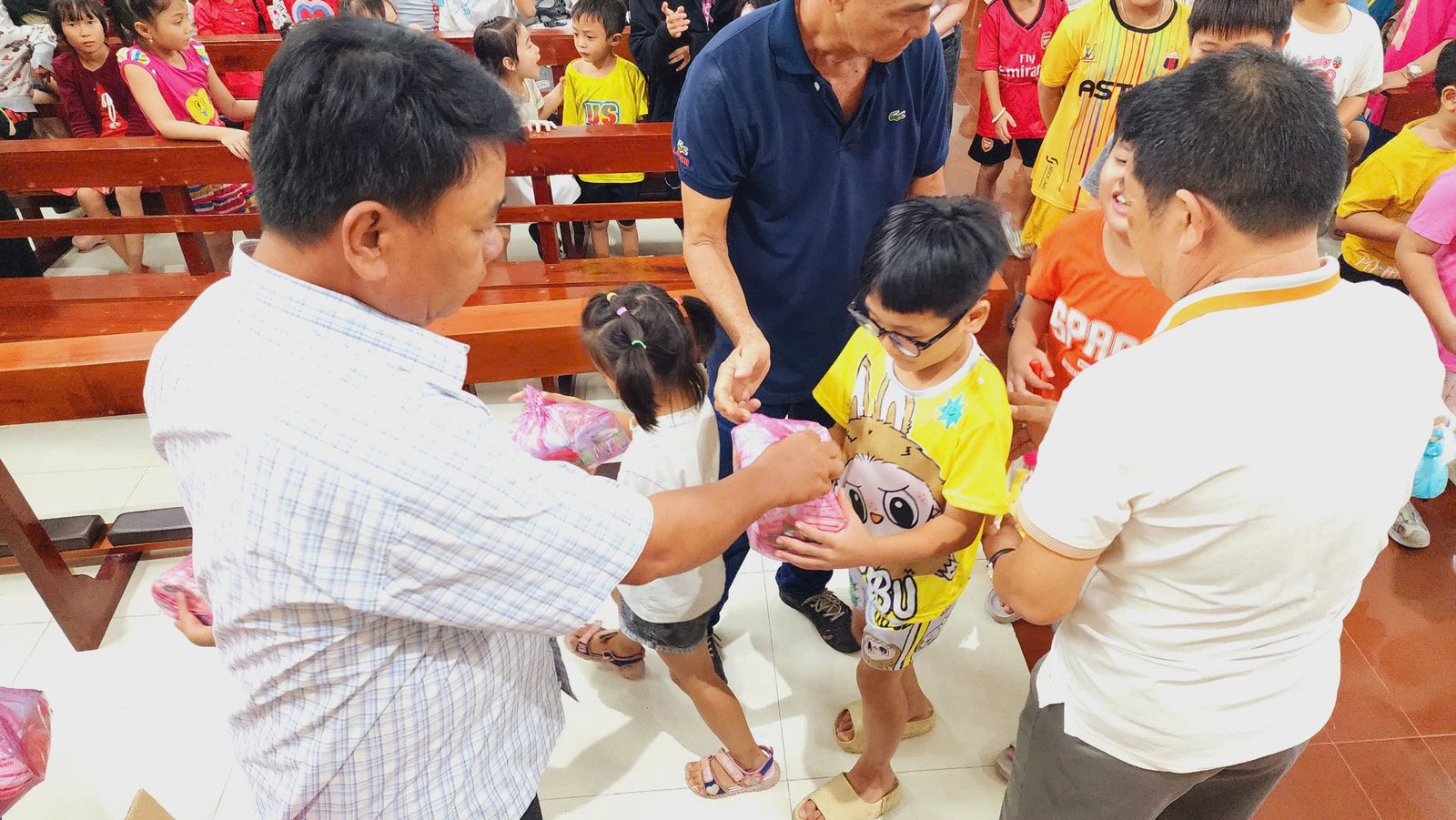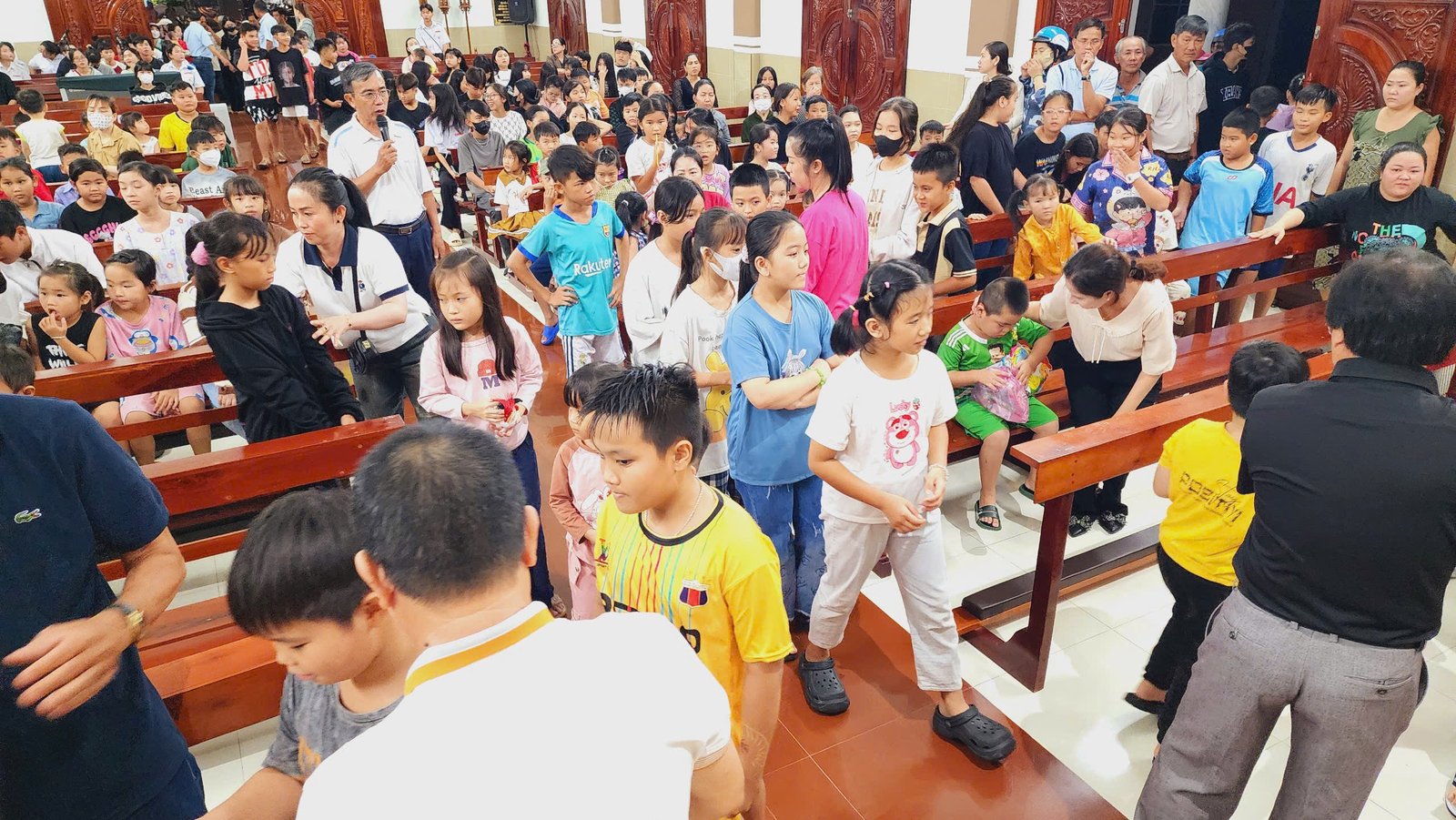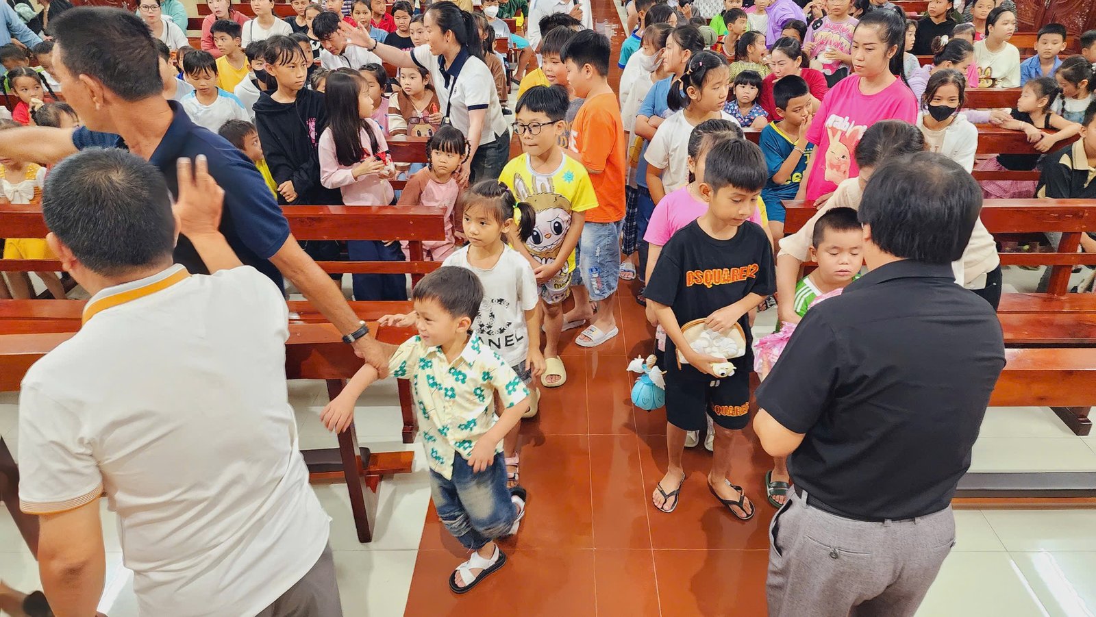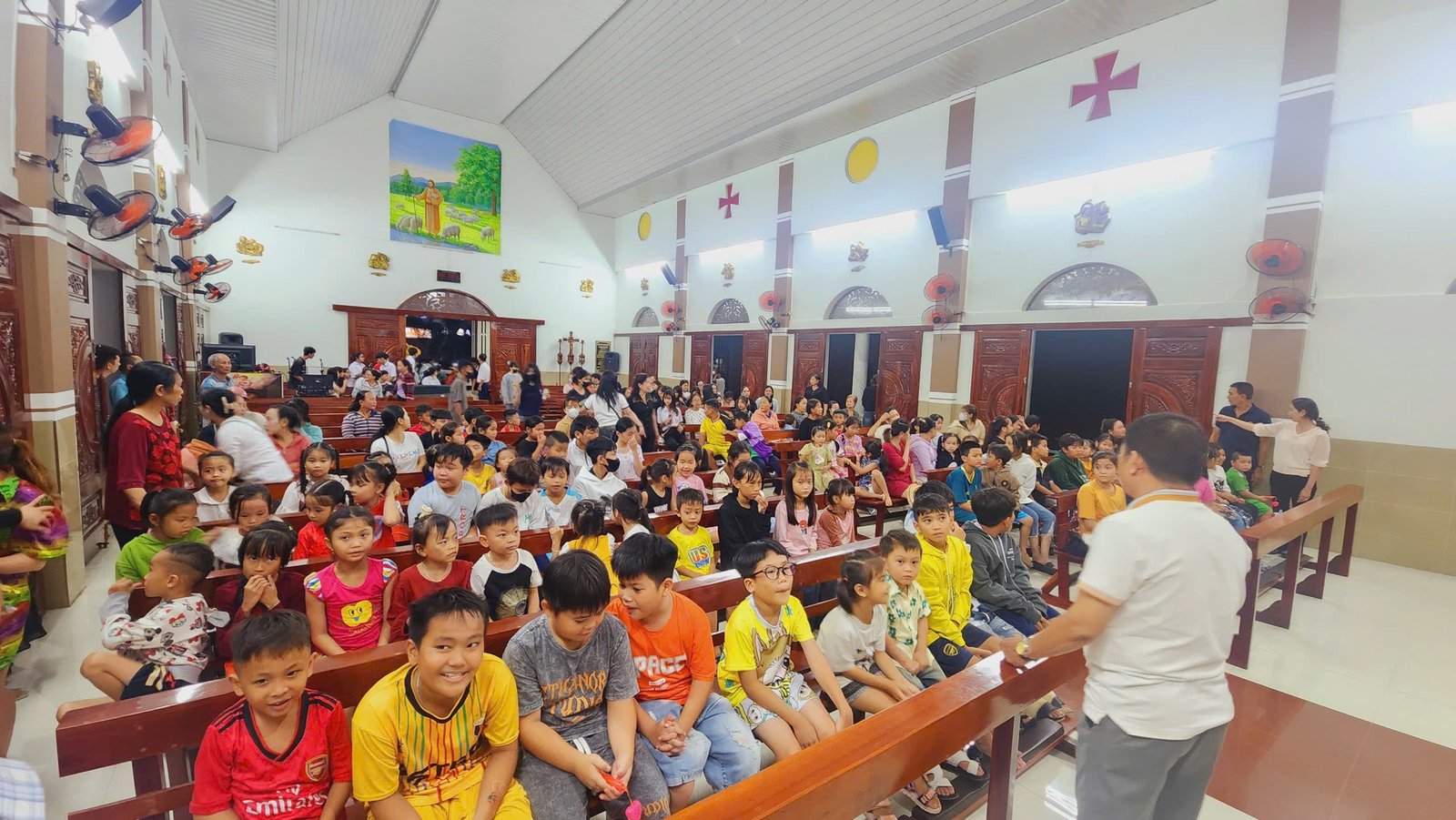 Chương trình mừng Tết Trung Thu bắt đầu bằng việc quý Cha và các em thiếu nhi cùng tham dự Thánh lễ tạ ơn và cầu nguyện cho những hoàn cảnh khó khăn, đặc biệt là người trẻ. Cha Giuse Nguyễn Văn Mạnh, qua bài chia sẻ Lời Chúa, đã nhắc đến tinh thần hiệp thông, cụ thể là việc chia sẻ với đồng bào bị thiên tai bởi cơn bão Yagi, theo lời kêu gọi của Đức Cha Stefano. Cha Giuse cũng giải thích cho các em hiểu về ý nghĩa của những hy sinh và những việc làm nhỏ bé, đặc biệt trong dịp Trung Thu năm nay: “ Giáo xứ sẽ không tổ chức văn nghệ rầm rộ như hằng năm, thay vào đó là việc dành cho các bạn kém may mắn hơn. Các con hãy làm những việc nhỏ bé, nhưng với tình yêu lớn thì giá trị sẽ lớn hơn.
